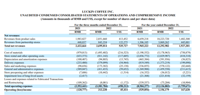 瑞幸咖啡原地复活! 3月2日,瑞幸发布2022年财报,数据体现,公司客岁业务利润为11.56亿元,业务利润率为8.7%。 而2021年,瑞荣幸营亏损5.39亿元,运营亏损率为6.8%。经调解后,运营利润为15.54亿元,2021年则录得运营亏损2.36亿元。 这意味着瑞幸初次实现了年度策划利润转正。 还记得2017年横空出世的瑞幸来势汹汹,漫天撒券,一起冲进纳斯达克,在2019年创下中国企业最快IPO的记载。没曾想上市仅一年,瑞幸便陷入财务造假风波,以停牌退市的了局惨淡收场。 当险些全部人都以为,瑞幸间隔停业不远了,以后“喝一杯少一杯”时,它却在三年后“死去活来”,不但在咖啡赛道更加如鱼得水,还开始赢利了。 还记得客岁初,有媒体报道,瑞幸咖啡正在研究在纳斯达克重新上市的筹划,最早大概将在年底举行。随后瑞幸出来告急否认。但这一消息,也从侧面显现了瑞幸“翻身”的渴望顺遂。 客岁4个亿净利 财报体现,瑞幸客岁四序度实现总收入36.95亿元,同比增长51.9%;经调解后净利润为1.67亿元,同比大增511.36%。 2022年整年,瑞幸实现收入132.93亿元,同比增长66.9%;净利润4.88亿元,同比淘汰15.62%;经调解后净利润为10.48亿元,而2021年为亏损1.1亿元。 泉源:瑞幸财报 这是瑞幸自2017年创建以后,初次实现团体利润转正。 纵向来看,2022年整年,瑞幸的红利本事徐徐提拔,前三个季度的业务利润分别为1610万元、2.4亿元和5.85亿元。 横向来看,2022年前三个季度,瑞幸营收规模分别为3.79亿、4.93亿和5.48亿美元;同期,老对手星巴克中国营收分别为7.44亿、5.45亿和7.76亿美元,两者营收规模差距不停缩小。 这也使得不少瑞粉打趣道:从前的瑞幸已经死了,如今它是“钮钴禄·瑞幸”。 停止2022年12月31日,瑞幸咖啡持有现金、现金等价物、受限定现金为35.78亿元。2021年底这一数据为65.55亿元。对于大幅淘汰的告急缘故原由,瑞幸体现是赎回离岸票据、诉讼息争费、购置装备等。 瑞幸怎样重新崛起? 瑞幸崛起,靠“卷”,卷门店,卷营销,卷产物。 在门店方面,2022年,瑞幸整年净新增门店2190家,同比增长36.4%。停止年末,瑞幸拥有8214家门店,包罗5652家自营门店与2562家联营门店,成为中国门店数目最多的连锁咖啡品牌。 而2022财年,星巴克净新增门店仅661家,停止2022年末,星巴克中国运营门店数目仅为6090家。 门店扩张的同时,瑞幸单店利润率也在进步。2022年四序度,瑞幸自营店的门店层面利润率为23.6%,而2020年和2021年同期分别为8.7%和20.9%。 在营销方面,汤唯、张震、刘昊然......每次瑞幸“对准”的代言人,都能引发一场刷屏风暴。早在冬奥前,瑞幸就签下了谷爱凌作为代言人。随着谷爱凌拿下冬奥冠军一炮而红后,瑞幸精准选择代言人的本事,也让市场赞叹。 两年来,瑞幸玩的一手IP联名,包罗JOJO的奥妙冒险、伤心蛙、椰树椰汁等,搞得了季候限定款,包罗瑞纳冰季、圣诞多喝拿铁季、新春限定等,把瑞粉们的心思拿捏得死死的。 泉源:小红书 在产物方面,如果说哪一款真正“接济”了瑞幸,那肯定是生椰拿铁。2021年4月,瑞幸推出生椰拿铁,让其时月均生意业务客户,从淘汰的趋势,逆转为暴涨40%。 不但云云,生椰拿铁上线一周年销量破亿,若按现实售卖的代价约16元盘算,仅它一款产物的年营收就到达16亿元,占2021年整年收入的24%。 2022年,瑞幸推出了近140个新品,此中咖啡产物百余杯。星巴克中国在2022财年仅推出了30余款新品,相称于瑞幸一个季度的上新速率。 与此同时,瑞幸在已往两年内徐徐提拔产物售价,以2022年卖出9亿杯饮品大略盘算,单杯产物均价在14.77元左右,较2019年四序度9.7元大幅提价。 走出财务造假丑闻? 不知道如今的瑞幸,还记不记得三年前的谁人迁移转变点。 2020年1月尾,风光无穷的瑞幸被浑水控告2019年财务造假——瑞幸宣称单店红利28.4%,现实上是亏损了28%。 同年4月,瑞幸在举行自查后,自曝财务造假22亿,造成股价最高暴跌幅度达85%,6月它被迫令退市,今后只能在粉单市场举行生意业务。 其时间,险些全部人都以为,停业整理就是瑞幸的了局。 没想到瑞幸真的死去活来了。两年后,当初做空瑞幸浑水再度丢出一份有关瑞幸的陈诉,却是做多。 雪湖资源首创人马自铭发出了一份长达81页的研报,公开点赞瑞幸,以为“瑞幸在中国逾越星巴克只是时间题目”,还高调公布已成为瑞幸股东。 2020年11月30日,粉单市场瑞幸收盘价为4.55美元,而在客岁11月份发布第三季度财报之后,收盘价是17.99美元,如今代价已到30美元以上。 不外,可以大概重新崛起,并不代表瑞幸以后的路就顺遂了。当初造假变乱后被踢出局的瑞幸首创人陆正耀和钱治亚,再次入局咖啡赛场,联手做出库迪咖啡。 在业内人士看来,主打“9.9元”便宜咖啡的库迪,不但在模式、营销上“模仿”瑞幸,还在扩张节奏上“赶超”瑞幸。库迪的扩张野心绝不掩蔽,这被外界以为陆正耀是要想要干掉瑞幸,取代它的位置。 除此之外,咖啡赛道的竞争者已越来越多。撤除Manner、Tims等新参加玩家,另有诸如邮政、中国石油等跨界竞争者,扩张之势迅猛,瑞幸身上的压力并不小。 泉源:壹览贸易 结语 如今看来,瑞幸变身“钮祜禄·瑞幸”,从谷底爬出来的履历,就像是一个古迹,但这并不能代表瑞幸就可以大概高枕无忧,今后它另有很长的路要走。 我们听了太多,屠龙者终成恶龙的故事。我们也见过太多翻身之后,很快迎来末端的公司。 无论怎样,对瑞幸来说,当初的财务造假丑闻无
