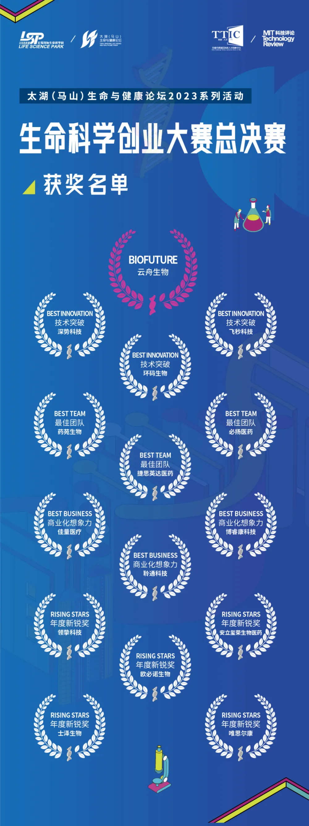 2023 年 3 月 4 日,《麻省理工科技批评》中国·第二届生命科学创业大赛总决赛在无锡滨湖区拈花湾波罗蜜多聚会会议中央乐成举行,现场在入围的 30 家初创企业中诞生了包罗年度新锐奖、技能突破奖、最佳团队奖、商业化想象力奖和 Bio Future 大奖在内的大赛奖项。中国科学院院士、美国艺术与科学院院士、清华大学教授饶子和,中国科学院院士、南方科技大学署理副校长、讲席教授顾东风,与上海交通大学特聘教授许平应邀出席,无锡滨湖区委书记孙海东及各级向导亲临大赛现场。 据悉,大赛由无锡市滨湖区人民当局、《麻省理工科技批评》中国主理,无锡太湖国家旅游度假区管理委员会、DeepTech、无锡市滨湖区科学技能局、无锡市滨湖区科技人才创新中央、无锡生物医药研发服务外包区管理处承办,汇聚了 100 多位学术大咖、创新企业代表、头部行业咨询机构、券商机构和头部企业代表,共同深入分析环球行业与生命科学范畴的发展趋势,发掘生命康健财产潜力项目,赋能太湖湾科创带引领区创建。 运动伊始,《麻省理工科技批评》中国连合出书人、DeepTech 连合首创人陈禺杉起首代表主理方致开场辞,对出席的向导、高朋和观众朋侪们表现了热烈的接待。 随后,滨湖区委书记孙海东作为东道主致接待辞。他表现,生命康健财产是无锡市重点发展的战略性新兴财产。滨湖区作为生命康健财产发展的告急承载地,汇聚了一批国际一流、业内领先的人才团队,形成了集技能、人才、资金、市场、政策于一体的完备生态链。孙海东还指出,本届大赛总决赛在无锡滨湖的落地,将以国际视野和前沿科技进一步加强财产、技能、人才在滨湖区的集聚效应,助力滨湖区生命康健财产创建。 接下来,二位院士分别发表致辞,为大赛奉上了风雅的祝福和期冀。 起首,中国科学院院士、美国艺术与科学院院士、清华大学教授饶子和发表致辞。饶子和院士长期专注于新发、再发流行症病原体三维布局和创新药物的研究,其团队在抗击非典和新冠肺炎疫情过程中负担告急使命。他在致辞中说,此次生命科学创业大赛是一个非常好的平台,提供了一个很好的交换的机遇,吸引了许多非常精良的青年人才和团队,投入到生命科学范畴的研究和效果转化中来,让这个行业充满了无穷大概。 随后,中国科学院院士、南方科技大学署理副校长、讲席教授顾东风在致辞中分享了自身在心血管疾病和康健管理方面的思索。他说,此次大赛将当局、财产、园区、资源以及学术界的气力联合起来,共同促进科技效果的转化与商业化,发现并力图满足未被满足的临床需求,同时向大众传播前沿的科学观念和先辈的康健管理产物,进步人们的康健意识,这正是本届生命科学创业大赛最大的代价之一。盼望本次大赛可以大概对临床早期诊断,退行性疾病、呼吸体系疾病、肿瘤等疾病的新药研发和康健管理等范畴做出推动。 致辞环节竣事后,滨湖区人民当局副区长蒋维维在发言中为我们先容了滨湖区当前的财产根本发展情况。 随后,《麻省理工科技批评》中国副出书人、DeepTech 连合首创人兼 COO 张岚做了“生物期间的创新之路 · 2023 生物技能趋势猜测”的主题分享,论述了具备技能颠覆性、具有财产化远景的先辈生物医药技能的发显近况,并指出底子技能的突破在不停引领生物医药的创新前沿,并大力大肆推动了创新药物实现财产化。 在短暂的茶歇之后,运动现场播放了本届大赛决赛入围项目标纪录片《追光十问》,参赛代表们面对十个告急的关键性标题,纷纷给出了自己的答案。 接下来,正式进入总决赛角逐环节,30 家决赛入围项目代表先后上台向在场的专家评委们举行先容,极具潜力的创新项目涵盖了 AI+康健、iPSC、单细胞测序、细胞治疗、疫苗开发、手术呆板人等多样的生命康健赛道。 当天下战书,全部项目展示完毕后,大赛进入“重聚——生命科学创业的如今与未来”的圆桌论坛环节。在张岚的主持下,星亢原首创人& CEO 陈航、霍德生物首创人& CEO 范靖、鸣石峻致首创人吴子岳三位首届生命科学创业大赛获奖团队代表围绕各安闲差异细分赛道上的实践,深入探究了比年来生命科学创业的厘革和趋势,并分享了团队的近况、最新希望以及未来的探索方向。 圆桌论坛之后,大赛进入高潮部分——《麻省理工科技批评》中国·第二届生命科学创业大赛颁奖仪式环节。与会的区向导、度假区向导与主理方《麻省理工科技批评》中国上台为获奖团队代表颁发了奖项。在综合奖项上,唯思尔康、士泽生物、安立玺荣生物医药、欧必诺生物、领挚科技被授予了年度新锐奖。 在单项奖中,飞秒科技、环码生物、深势科技得到了技能突破奖。 必扬医药、捷思英达医药、药苑生物得到了最佳团队奖。 博睿康科技、聆通科技、佳量医疗得到了商业化想象力奖。 云舟生物则斩获 Bio Future 大奖。 大赛末了,无锡太湖国家旅游度假区党工委委员,管委会副主任赵晔对本届生命科学创业大赛作效果发布,并表现了对大赛效果和各参赛团队的高度认可。 至此,《麻省理工科技批评》中国·第二届生命科学创业大赛圆满落幕。猜测未来,我们可以预见的是,生命科学范畴的创业运动将在当局、财产、园区、资源和学术界的共同加持下连续繁荣,多样化、细分的赛道将百花齐放,底子科学的不停突破与学科交错的局面所