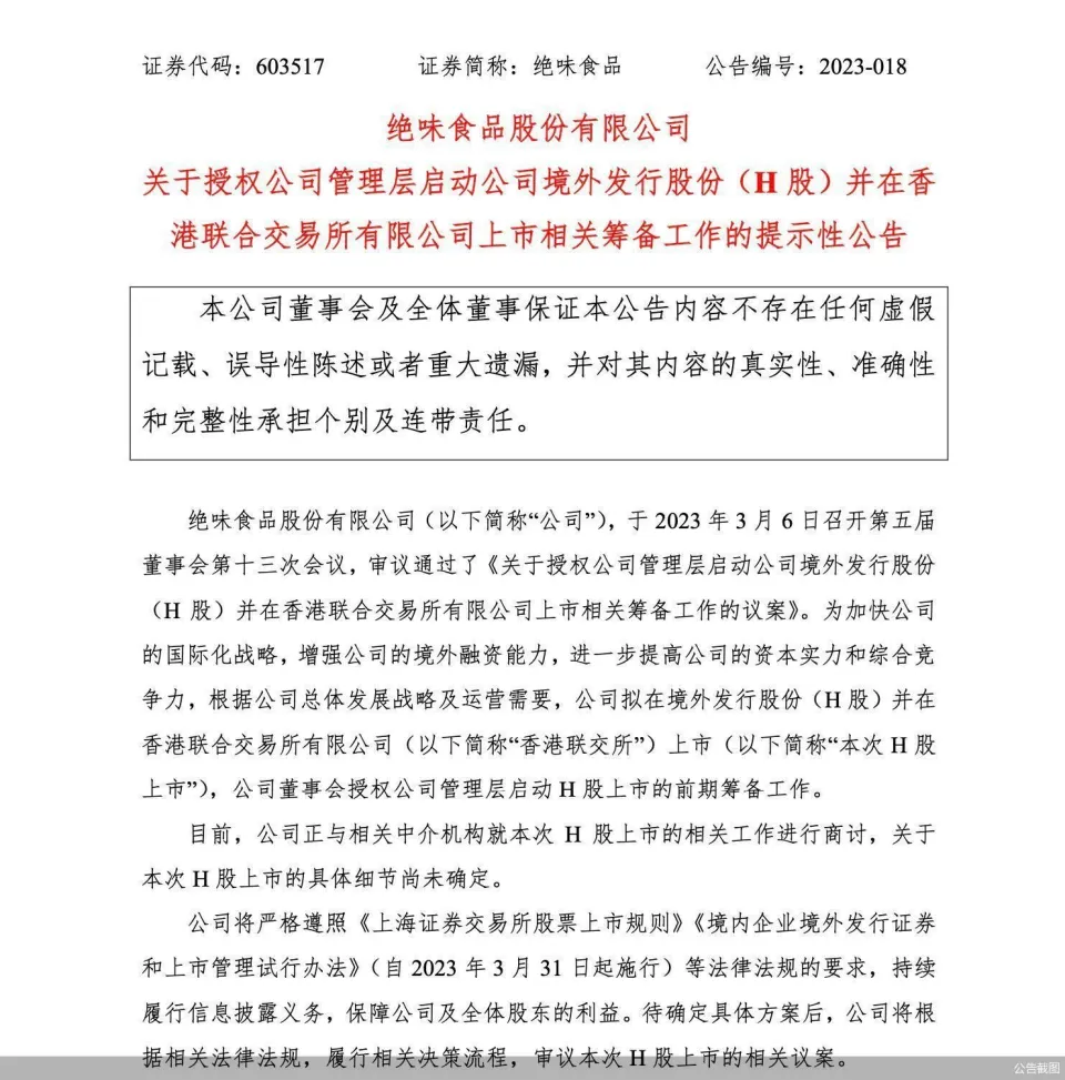 业绩连降的绝味食品正在操持赴港上市。3月6日,绝味食品公布拟在境外发行股份(H股)并在香港团结买卖业务全部限公司上市。绝味食品干系负责人告诉北京商报记者,这是为了“加速公司的国际化战略,增强境外融资源领”。 业界对于绝味食品赴港上市有着差别的声音。有观点以为,作为A股上市公司,绝味食品没有继承发行H股的须要,两地上市的办法应该是是为拓展国际市场,增强品牌形象。尚有观点以为,赴港上市背后是绝味食品正在面临业绩接连大跳水、以及卤味行业团体增长迫近天花板的局面。履历了接连数次财报净利跳水后,在卤味赛道徐徐失去先发上风的绝味食品不得不为本身重新规划下一步的方向。但赴港上市会是绝味食品新的出路吗? 扩大融资渠道 3月6日晚间,绝味食品发布公告称,公司拟在境外发行股份(H 股)并在香港团结买卖业务全部限公司上市,公司董事会授权公司管理层启动H股上市前期准备工作。 作为2017年就在上交所主板A股上市的卤味企业,绝味食品为何开始操持发行H股、到港股上市? 对此,绝味食品证券部干系负责人在继承北京商报记者采访时体现,“启动境外发行股份(H股)将加速公司的国际化战略,增强公司的境外融资源领,进一步进步公司的资源力气和综合竞争力,符合公司总体发展战路及运营必要。” 绝味食品在公告中进一步体现,现在公司正与干系中介机构就本次H股上市的干系工作举行商讨,关于本次H股上市的具体细节尚未确定。待确定具体方案后,公司将根据干系法律法规推行干系决议流程。根据发行境外上市股份并在香港联交所上市的干系规定,本次H股上市需提交公司董事会和股东大会审议,并经中国证券监督管理委员会存案,香港联交所考核,本次H股上市可否通过审议、存案和考核步伐并终极实行具有庞大不确定性,公司将后续盼望环境举行披露。 在广科咨询首席咨询师沈萌看来,H股相比A股来看,无论是估值照旧买卖业务活动性都相差显着,因此从财务角度上分析,绝味食品作为A股上市公司实在没有继承发行H股的须要。但是,企业不清除为了体现品牌国际化大概故意拓展国际市场,会选择两地上市,以增强品牌形象。 业绩瓶颈待解 只管现在绝味食品可否乐成H股上市还存在不确定性,但在业内看来,绝味食品赴港上市是增强企业融资源领、寻求扩充资源之举。这是由于在此之前,绝味食品的净利润出现一连跳水、业绩体现一起下滑。 作为“卤味三巨头”榜首,绝味食品在2013-2019年的净利润增长比例不停不低于20%,最高达31.93%。自2017年上市之后,绝味食品2017-2021年的归属净利润分别为5.017亿元、6.406亿元、8.012亿元、7.014亿元、9.809亿元。但进入2022年后,绝味食品净利润便开始一起走低。 财报表现,2022年起,绝味食品在一季报、半年报、三季报的当期归属净利润分别为8907万元、9859万元、2.194亿元,分别同比下滑62.24%、80.36%、77.24%,此中半年报里下滑八成的净利是其自上市以来最大降幅。而根据绝味食品最新发布的业绩预报,2022年实现净利润为2.2亿-2.6亿元,同比降落73.49%-77.57%,是自上市以来交出的最差一份年度结果单。 绝味食品业绩逆境背后是团体卤味市场正面临增长天花板。克日,“卤味三巨头利润全暴跌”“鸭脖为什么卖不动”等话题接连登上热搜。陪伴着卤味范畴更加多元,品牌、品类徐徐增长,对头部企业造成显着影响。除了绝味食品,周黑鸭2022年净利润同比下滑凌驾94%,煌上煌2022年净利润同比降落78.69%,卤味行业越来越难得到增长正在成为毕竟。 业内体现,卤味行业门槛低,随着市场规模徐徐扩大,新兴品牌不停增多,竞争变得尤为猛烈。企业在产物创新、渠道拓展等方面的发展也将决定其将来的发展方向和竞争力。按照现在的竞争态势,鸭产物等卤味已到达天花板。绝味食品从前的先发上风并不敷以使企业保持恒久发展,产物又缺乏差别化掩护,绝味食品的收益率在猛烈竞争和倒霉环境中肯定大幅走低。 在业绩接连跳水、行业增长放缓的局面下,赴港上市大概就成了绝味食品钻营新出路的途径。 中国食品产业分析师朱丹蓬体现,在卤味品类和自身品牌都发展到天花板的当下,绝味食品业绩的增长存在着很大的不确定因素。现在绝味食品的规模效应比力显着,新的行业形势下,曾经的市园职位、门店上风难以作为绝味食品的恒久助推力,绝味食品急需更新产物矩阵,优化供应链,强化市园职位。 对于上述标题,绝味食品证券部干系负责人向北京商报记者体现,将来公司将继承致力于妥当策划,将以提拔门店运营本领作为重点工作,以斲丧者为导向,以市场为焦点,因地制宜的订定市场策划战略,通过加盟商委员会各层级构造的自驱力驱动,品牌营销和门店强基运营双管齐下,为门店终端赋能,提拔门店营收,以告竣相应业绩指标。 北京商报记者 郭秀娟 张函 |