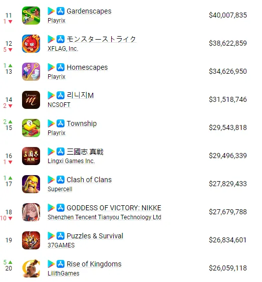 2023年的2月已往了,根据数据网站Appmagic的资料,外媒整理了一份2月环球手游营收前20的榜单。从这份统计中会发现,2月份环球顶尖手游产物的营收都出现了差别水平的下滑。 1.《王者光彩》- 1.13亿(单位是美元,下同) 第一依然是王者光彩。这险些毫无牵挂。从2016年开始它险些不停在榜首。固然《王者光彩》的营收不停很乐成,但是本年的2月营收比起客岁2022年的营收降落了4100万美元。客岁的数据是1.54亿美元,而本年的数据是1.13亿美元。本年2月的数据对比上一个月1.26亿美元的营收一样降落了不少,有1300万美元之多。 2.《原神》- 1.12亿 第二名是《原神》。固然它在一月的营收相对较弱,只有9600万美元,但是到了二月它又再次升上来破亿了。它在客岁二月的营收也是约莫1.12亿美元,跟本年非常地持平。如今游戏的收入状态正在从“刺激”趋向于平缓。 3.《糖果传奇》- 7680万 第三名是经典三消《糖果传奇》。作为已经面世凌驾10年的老游戏,《糖果传奇》的收入情况不停很稳固。但是根据Appmagic的数据我们可以看到该游戏在2月的营收有较大的缩水,从1月的8900万美元到2月的7680万美元,降落了13%。这也是该游戏从2022年的3月开始初次月收入低于8000万美元的月份。固然2月的收入降落了不少,但是作为运营超十年的游戏,根据Appmagic的数据表格,这点风雨《糖果传奇》也遇见过不少。信托颓势不会不停连续下去。 4.《绝地求生》移动版 – 7230万 第四名照旧腾讯的游戏。如许腾讯在前五独占两席。但是差别于《王者光彩》的稳固榜一职位,《绝地求生》的收入实在是连续降落的。固然之前12月和1月有“节日月份”的加持让该游戏营收又回升到9000多万美元将近1亿美元,但是到了2月份该游戏的营收照旧回落到它之前7000多万美元的常态而且另有继续降落的趋势。 5.《Roblox》- 6110万 吃到疫情红利的多人在线创作游戏《Roblox》随着疫情的离开也越发后力不敷了。固然该游戏是2月环球下载数目榜的榜首,但是在变现方面该游戏进入了困局。对比该游戏1月7300万美元的营收,它在2月只有6100万美元,降落了1200万美元,16.4%。与第四名的《绝地求生》一样,过了节沐日的季候,它回到了它之前的样子。 6.《宝可梦GO》- 5790万 第六名的《宝可梦GO》在2月的营收比上个月上涨了1450万美元,是榜单上为数不多的营收上涨游戏。这应该得益于该游戏在2月举行的连续串运动。这让该游戏在2月25日这天单日就得到了600万美元的营收 7.《Coin Master》- 5370万 第七名的《金币各人》也到场了2月颓势组。对比客岁2月6300万美元的营收,本年2月的数据降落了约莫1000万美元。而且本年2月是该游戏自2020年2月以来收入最低的一个月了 8.《运气-冠位指定》- 4470万 从Appmagic数据给出的表格可以看到,该游戏的营收之前险些每个月都像在坐过山车,但是迩来的4个月该游戏的营收趋向于稳固的状态。 9.《Royal Match》- 4240万 第九名是《Royal Match》,作为前十榜单上第2个三消休闲游戏,它的收入也跟《糖果传奇》一样比力稳固,固然2月的营收比起1月也是降落了500万美元,但是对比榜上别的游戏的情况,该游戏还算稳固。 10.《龙珠Z-爆裂大战》- 4090万 挤进前十末班车的是《龙珠Z-爆裂大战》。该游戏的月收入状态跟主角的发型一样地“凹凸不平”。它的营收从1月的3000万在2月一下子跳到了4090万美元,但是下个月是往上跳照旧往下跳?这就是一个迷了。而且前十名有4个二次元的游戏,它们无一例外地每月营收都偏“刺激”。 在11-20名里,有三个游戏在2月的收入对比1月的都降落了不少。第12名的《怪物弹珠》从5100万美元降落到了3900万美元,第14名的《天国M》从4300万美元降落到了3200万美元,另有在第18名腾讯的《妮姬:胜利女神》,从1月的4700万美元到2月的2800万美元,降落了约莫2000万美元,超40%。 别的,榜单上来自Playrix的三款游戏,11名的《梦幻花圃》,13名的《梦幻故里》和15名的《空想城镇》的营收对比1月也都略有超百万美元的降落。看来手游市场的头部玩家在本年2月的总体营收趋势都是下滑为主。 |