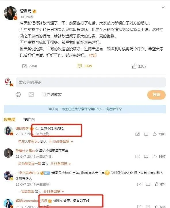 随着记得的去职,LPL讲授圈和主持圈的关系好像变得玄妙了起来。众所周知,记得辞职的缘故起因是由于缺乏了驱动力,是个人题目。随后,诸多圈内大佬也是纷纷发文感慨记得的脱离,此中骆歆的发文最为吸引各人的关注。 骆歆在文中与记得“好朋侪”相当,这意味着两人的关系已经从情侣转型成为了朋侪。随之而来的则是水友纷纷让管泽元和余霜致歉。 终于,管泽元发文向骆歆致歉,体现五年前本身幼年浮滑,只想着为兄弟(记得)出头,把两个人的感情抬到公众场所上说,这种冲动之下做出的举动,给骆歆造成了很大的伤害,真的歉仄。 老玩家应该知道管泽元、余霜、记得以及骆歆之前的事变。当时管泽元把记得和骆歆的事变公开,而且对两人都说了难听刺耳的话,以致还一度传出管泽元和记得真人Solo。余霜则是站在管泽元的角度,支持管泽元。如许就导致,骆歆遭遇各种网暴,而当时间正是骆歆的奇迹上升期,随之而来的就是骆歆奇迹停滞。 对于管泽元的致歉,骆歆拒绝继续,以为其避重就轻,全然不提该说的。现在管泽元已经删除了致歉的微博,此事终极了局怎样,让我们拭目以待吧。 |