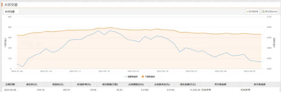 3月9日,宁德期间出现1.12亿元折价大宗生意业务,成交价每股318.19元,生意业务方均为机构,折价率19.85%。 |