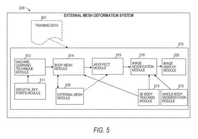检察引用/信息源请点击:映维网Nweon 天生人体网格,并根据人体网格变形外部网格 (映维网Nweon2023年03月10日)可爱狗耳朵,怕羞的红晕,炫丽的烟花,你大概不会对诸如Snapchat等应用的AR滤镜感到陌生。为了改进AR图形的放置和定位,体系检测图像或视频所刻画的职员,并天生表现骨骼的rig。然后,可以根据rig的移动变革调解AR图形。 在AR滤镜方面富有履历的Snap以为,由于上述方法必要及时天生一个人的rig来调解AR图形放置,这增长了处置惩罚复杂性、功耗和内存需求。别的,rig仅表现图像或视频中人的骨骼或骨骼布局运动,不思量职员的任何外部物理属性,比方重量和皮肤属性等。 针对这个题目,团队在名为“Deforming custom mesh based on body mesh”的专利申请中提出一种通过天生人体网格,根据人体网格变形外部网格的方法,从而进步诸如智能手机如许装备的利用服从。 Snap表现,通过基于对所刻画对象的身材网格的改变来变形外部网格,可以更有用地将一个或多个视觉效果应用于人像,无需天生rig或骨骼布局。特殊地,发明可以将一个或多个加强实际元素应用于图像或视频中刻画的人或对象,然后基于由对象身材网格的改变所来修改一个或更多个加强实际元素。 这简化了将AR图形添加到图像或视频的过程,并明显镌汰了天生这种AR图形的计划束缚和本钱,并镌汰了处置惩罚复杂性、功率和存储器需求量。这使得可以或许在小型移动装备及时无缝高效地将AR图形添加到根本图像或视频中。 图1是通过网络互换数据的示例消息体系100框图。消息收发体系100包罗客户端装备102的多个实例,每个实例托管多个应用,包罗消息收发客户端104和其他外部应用109。每个消息收发客户端104颠末网络112通讯地耦合到消息收发客户端102的其他实例、消息收发服务器体系108和外部应用服务器110。消息收发客户端104同时可以利用API与当地托管的第三方应用举行通讯。 消息收发客户端104可以向用户出现一个或多个AR体验。作为示例,消息收发客户端104可以检测由客户端装备102捕获的图像或视频中的职员。消息收发客户端104可以为图像或视频中刻画的职员天生身材网格。 身材网格可以是3D网格或多边形网格,包罗界说图像或视频中刻画的多面体对象形状的点、边和面的聚集。网格可以是多个闭合曲面的聚集。 消息收发客户端104可以吸收用户对要添加到图像或视频的AR图形的选择。消息收发客户端104可以得到与AR图形相干联的外部网格。 消息收发客户端104可以基于主动创建身材网格和外部网格之间的对应关系来变形外部网格。在致使外部网格变形之后,消息通报客户端104可以将外部网格定位在图像或视频内的3D身材网格之上或相对于3D身材网格定位。 消息收发客户端104然后可以在图像或视频内表现AR图形。在一个示例中,AR图形可以是时尚项目,比方衬衫、裤子、裙子、连衣裙、珠宝、钱包、帽子、眼镜、徽标或任何其他符合的项目或对象。 图5示出了外部网格变形体系224的框图。外部网格变形体系224包罗一组对输入数据举行操纵的组件510。输入数据在练习阶段期间从一个或多个数据库得到,而且在利用AR/VR应用时,输入数据可以由消息客户端104从客户端装备102的RGB摄像头得到。 外部网格变形体系224包罗呆板学习技能模块512、骨骼关键点模块511、身材网格模块514、图像修改模块518、AR效果选择模块519、外部网格模块530、3D身材主子哦谁人模块513、满因素割模块515和图像表现模块520。 在练习期间,外部网格变形体系224从练习数据501吸收给定的练习图像或视频。外部网格变形体系224利用呆板学习技能模块512在给定的练习图像或视频应用一种或多种呆板学习技能。呆板学习技能模块512从给定的练习图像或视频中提取一个或多个特性,以估计图像或视频所刻画的用户的3D身材网格。 呆板学习技能模块512检索与给定练习图像或视频相干联的3D身材网格信息。呆板学习技能模块512将估计的3D身材网格与作为练习数据502的一部门提供的ground truth服装3D身材网格举行比力。 基于比力的差异阈值或毛病,呆板学习技能模块512更新一个或多个系数或参数,并得到一个或更多个附加的练习图像或视频。在已经处置惩罚了指定命量的时期或练习图像批之后和/或当差异阈值或毛病到达指定值时,呆板学习技能模块512完成练习,而且呆板学习技能单元512的参数和系数存储在练习的呆板学习技能307中。 在练习期间,呆板学习技能模块512从骨骼关键点模块511吸收2D骨骼关节信息。骨骼关键点模块511追踪给定练习图像中刻画的用户的骨骼关键点,并提供骨骼关键点的2D或3D坐标。呆板学习技能模块512利用所述信息来辨认练习图像中刻画的用户的区分属性并天生3D身材网格。 由呆板学习技能模块512天生的3D身材网格提供给身材网格模块514。身材网格模块514可以追踪图像或视频中刻画的对象,并更新与对象相干联的3D身材网格。在一个示例中,身材网格模块514可以基于由3D身材追踪模块513提供的3D身材追踪信息来追踪对象。身材网格模块514可以在3D中更新3D身材网格,而且可以调解3D身材网格的位置、身材范例、旋转或任何其他参数。 图6是外部网格变形体系224的输出的图解表现。具体地,图6示出了由身材网格模块514天生和追踪的3D身材网格600。在一个示例中,身材网格模块514可以跨视频帧追踪3D身材网格的变革