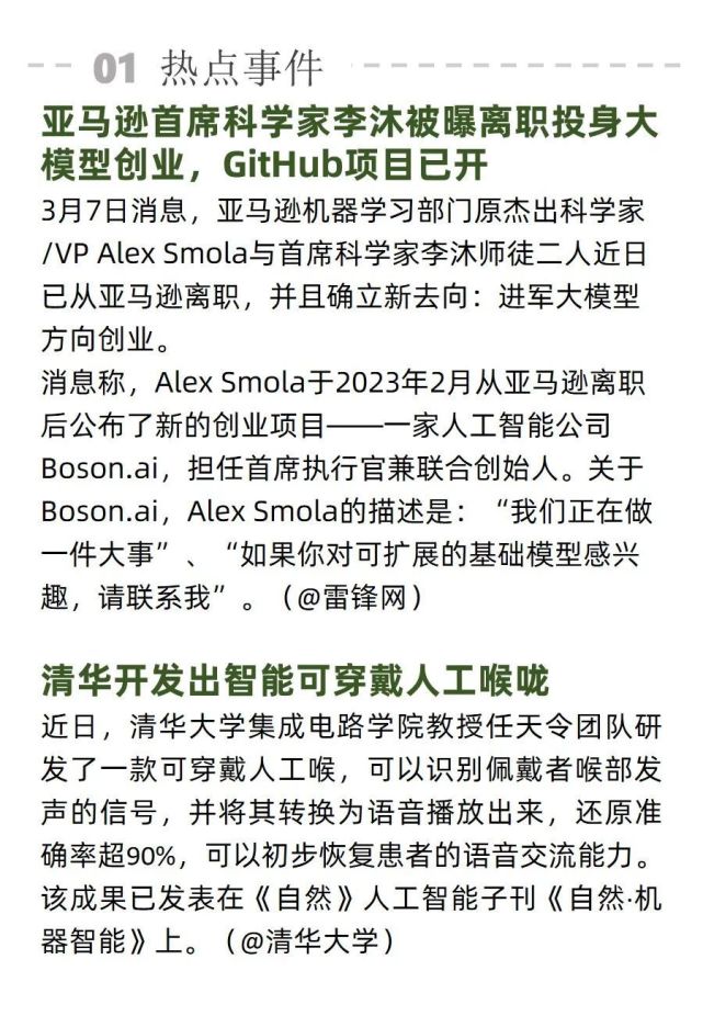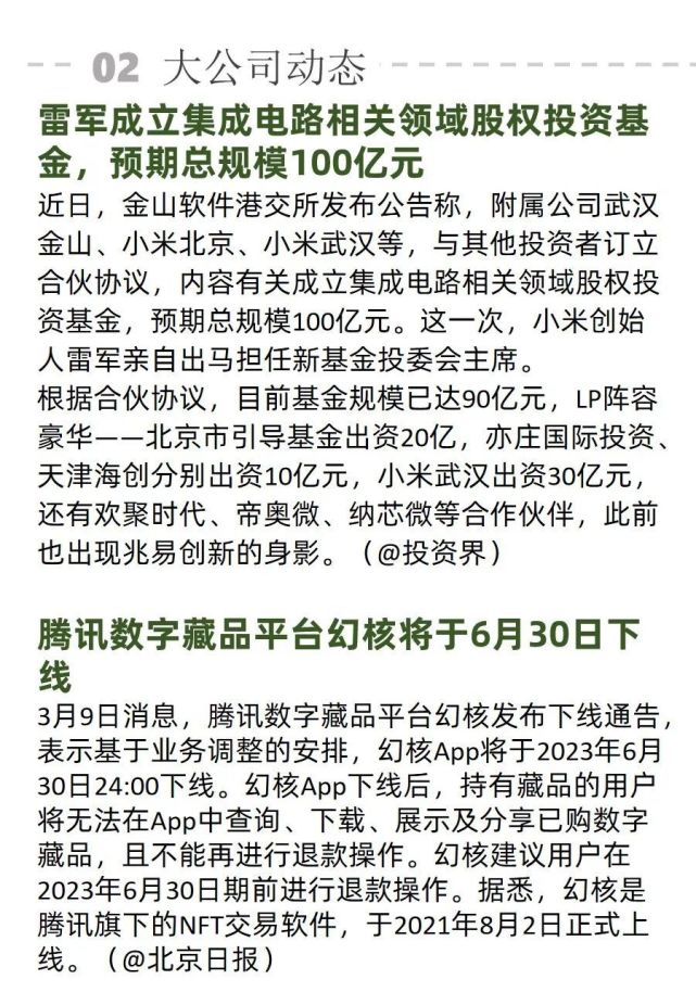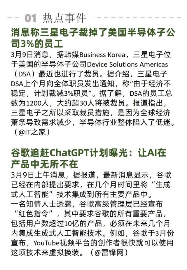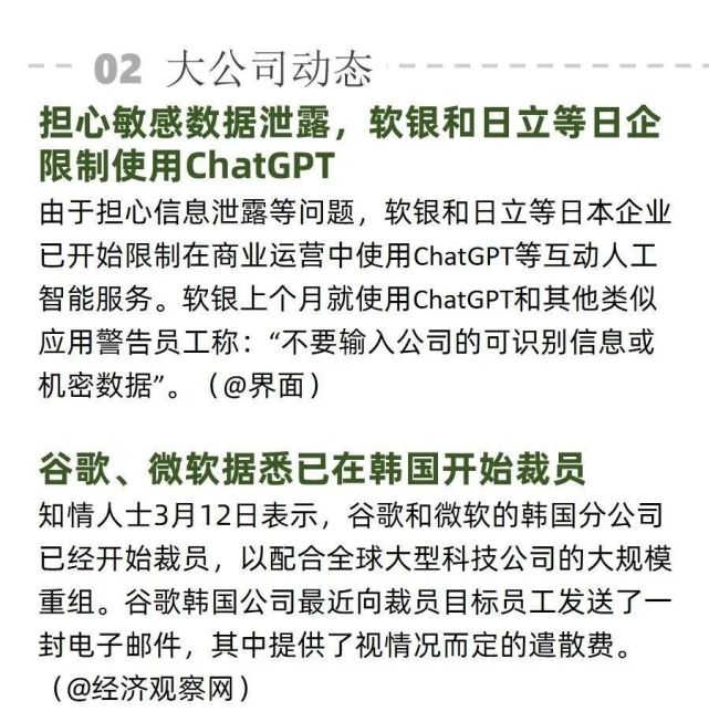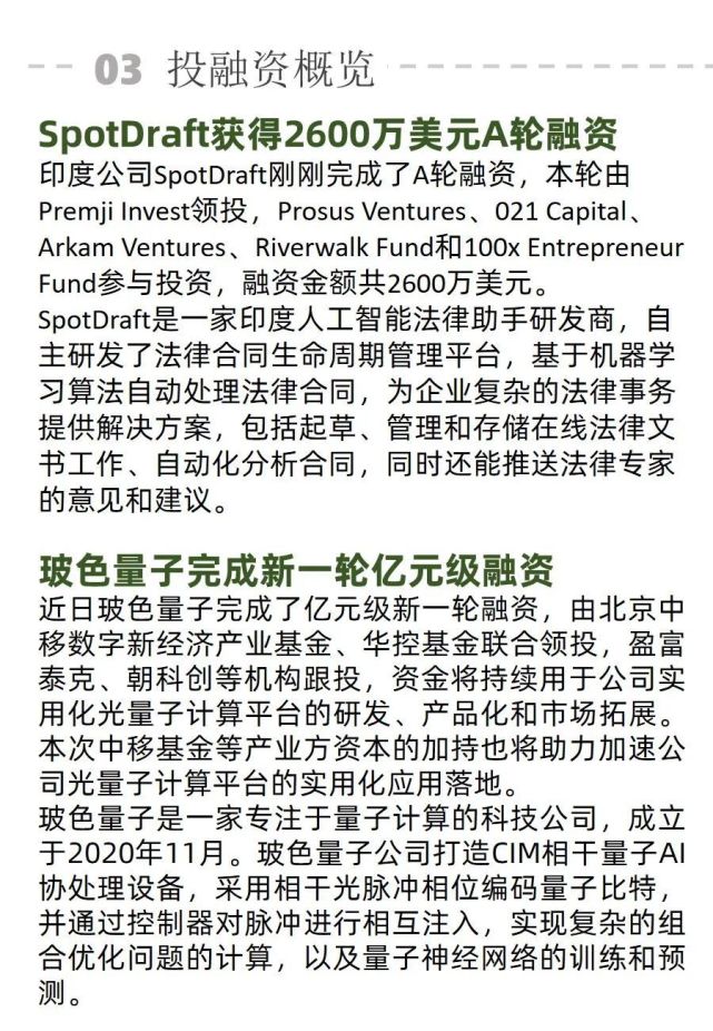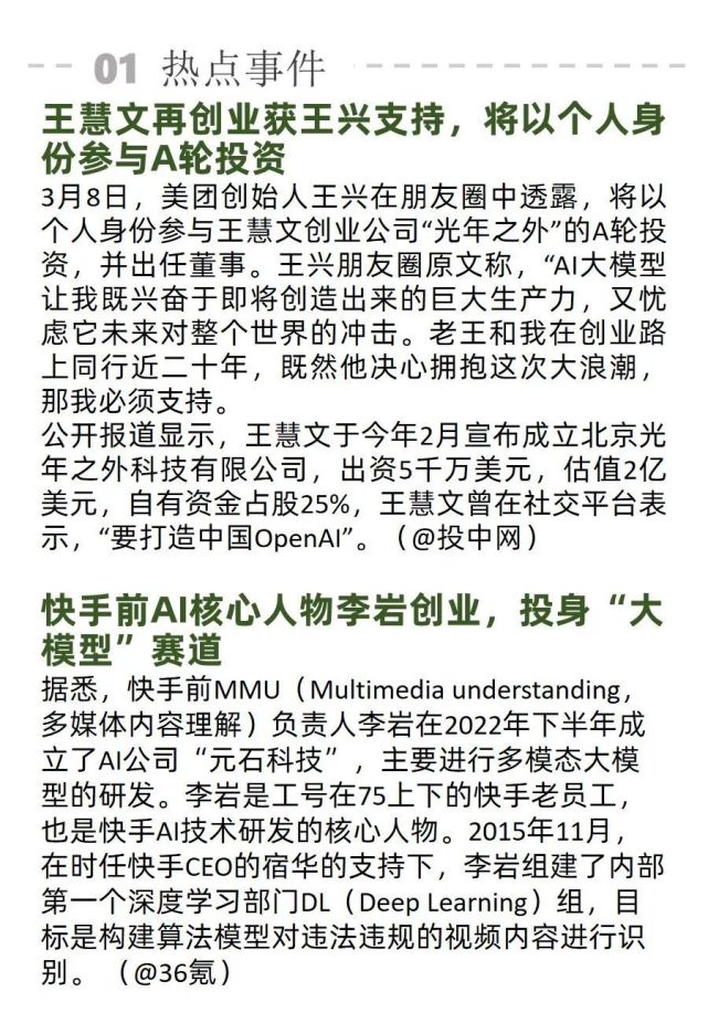 作者:IT桔子 随着科技革命和产业厘革历程加快,人工智能正在环球范围内助力产业转型。我国人工智能发展早已上升到国家战略层面,加快建立创新型国家和天下科技强国。 在疫情的催化作用下,以人工智能为代表的新一代信息技能在迭代演进中大大加快了传统行业厘革,AI渐渐在医疗、都会管理、辅导等浩繁范畴迸发出强局势能。 IT桔子顺应行业发展高潮推出了人工智能行业周报栏目。周报将从国家政策办法、投融资动向、业内大公司动态、行业热门事故等维度解读人工智能行业最新厘革,为人工智能创业投资提供参考。 以下是2023年3 月 7日至 3月 14日人工智能行业周报: 声明:本陈诉版权为IT桔子全部,未经授权不得以任何情势转载,一经发现,IT桔子有权要求改正或直接单方面接纳统统须要步伐,以消除或减轻不妥举动给IT桔子、第三方、互联网服务或社会公共造成的任何影响。 |