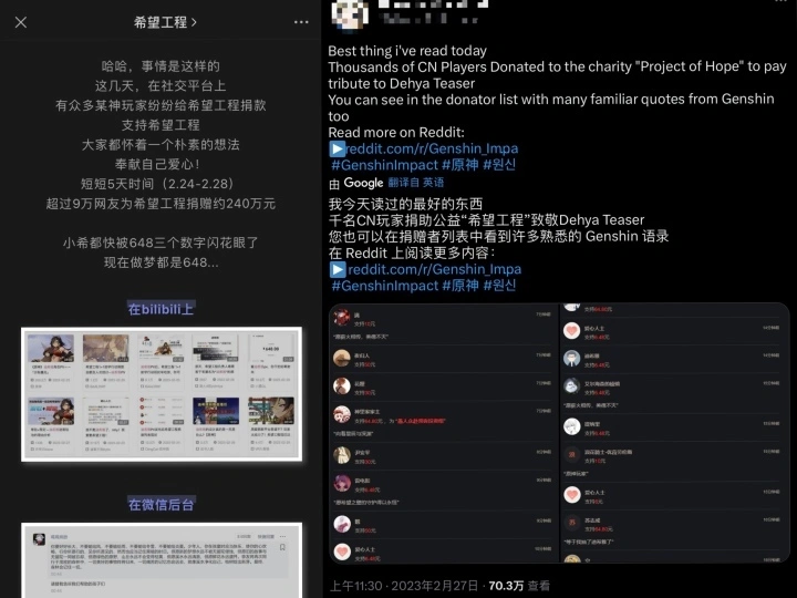 视频泉源 原神官方微博 前段时间,在环球拥有数千万玩家的国产游戏《原神》 又火了一次。 这款游戏新版本上线前夕,推出新脚色迪希雅的人物短片《沙际晨光》。视频中,迪希雅将收入捐给了全部戈壁地区出生且无家可归的孩童,并将这笔款子定名为“盼望之壁”。 此词一出,如投石入水,在海表里互联网泛起一阵不小的波涛。 看到“盼望之壁”这个名字,很多国内玩家醍醐灌顶:“这不就是盼望工程吗?”于是,大批用户选择效仿给“盼望工程”捐款,资助现实中的困难儿童。3月1日,“盼望工程”微信公众号特地发文致谢。致谢信内里说,短短5天就收到来自9万网友的240多万捐款。“盼望工程1+1助学办法”季度500万的众筹目标,得以提前完成。 这张名为《我要读书》的照片,是很多中国人对“盼望工程”最深的影象。图片泉源网络 与此同时,外洋网友感到讶异:一个游戏脚色动员团体公益,竟然尚有这种利用?有推特用户科普了中国“盼望工程”的配景,分享了国内玩家们的捐款明细,有效户则以为这种做法非常“治愈”,应该在环球范围遍及。有来自东南亚、西欧等地的玩家社群,开始构造类似的捐款活动,效仿“CN Players”的善举。 “盼望工程”微信公众号发文感谢原神玩家(左),有推特用户也分享了这一捐款变乱(右)。 “越看越中国”,二次元也可以展示中式美学 这不是《原神》里中国元素的第一次出圈。 2022年春节前后,《原神》在推出脚色“云堇”时,约请着名花旦演唱京歌《神女劈观》,灵敏爆红网络。先有差别戏种的戏曲演员纷纷翻唱,后响彻海表里各大漫展。这波余韵,以致不绝连续到了2023年央视网络春晚的舞台上。 B站(哔哩哔哩)上有关《神女劈观》的热门稿件。 在《原神》更新版本,开启新舆图“须弥”后,玩家们又发现了很多认识的中国元素。明显是绿色的丛林场景,却“越看越中国”。 玩家们戏称,迪希雅代表戈壁里的“盼望工程”,艾尔海森象征着全民读书,提纳里讲的是墟落振兴、环境掩护,风纪官赛诺扫黑除恶、弘扬正气,妮露则是保卫民风传统的非遗传承人……“虽说有打趣身分,但这些设定确实是现实生存的陈迹。”90后《原神》玩家朱老师表现,“既然是各人认识且认同的,也就有了更好的体验和代入感。” 从定位看,采取倾轧天下观的《原神》是不折不扣的“二次元”游戏。其开发商——上海米哈游天命科技有限公司(以下简称“米哈游”),也正是二次元风格发迹。二次元文化是舶来品,并长期受日、美文艺作品的影响。“西式的根本,大概采取日漫的IP和风格,总体上会更常见一些。”曾供职于某头部游戏公司担当策划的Alan说。 《原神》上线之初,也能看到浓厚的西式奇幻风格——城邦、教堂、巨龙、冒险者。随着版本迭代,璃月——这个以中国为原型的捏造国度的问世,成为了米哈游体系性描画中国文化的开端。推特上一位马来西亚用户表现,得知舆图上的山峦、梯田在中国都有原型后,本身很想有机会亲身看一看。一位英国用户说,本身很喜好代表中国新年的“海灯节”活动,还专门看了很多汉语平常话的讲授视频,就为了念对喜好的璃月脚色的名字。外洋视频网站上,璃月脚色“钟离”的单个视频播放量,最高已突破3000万次。别的,游戏还专门开设了“璃月食集”等栏目,再现游戏中的中国美食。 留门生小马玩《原神》已靠近两年。现在在日本的她,常常留不测网对这款游戏的反响。“和中国有关的细节,治愈的脚色与剧情彩蛋,成为了中外玩家相互沟通、科普的桥梁。”她说。 新年活动“海灯节”宣传图。图片泉源 原神官方微博 游戏中的“璃月港”,布满中国风格。图片泉源网络 以文化人,更能凝结心灵;以艺通心,更易沟通天下。嵌套在二次元外壳下的中式美学,成为《原神》在外洋异军突起的底气。在业内有多年履历的Alan以为:“《原神》的案例,分析跨海营销不是靠几个文化符号就可以做到的。真正紧张的,是形成感动民气的叙事方式。” 化被动为主动,《原神》们将来可期 比年来,我国浩繁游戏厂商加快出海。据《2022年中国游戏出海环境陈诉》表现,客岁国产自研游戏外洋营收高出173亿美元。然而,与营收规模形成对比的,是国际声望的不匹配。在很长一段时间里,国产游戏就像男足之于球迷,令玩家“倍感焦虑”,更遑论成为展示中国的窗口。有数百款游戏履历的“老玩家”小马感慨:“日本有《马里奥》系列,波兰有《巫师》系列。作为中国玩家,自然盼望我们也有个金字招牌。” 后发劣势,加上长期缺少好作品,国产游戏面对不小的阻力。曾多少时,偕行竞争、文化差别、策划压力等因素,使这条出海之路非常困难。 不外,随着版图徐徐扩大,国产游戏正在迎来一个化被动为主动的契机。 据Sensor Tower统计,《原神》自发布以来,环球营收已超40亿美元。此中,在日本、美国的营收分别占总营收23%和16%。别的,《原神》还成为2022年度推特讨论度最高的游戏。在日本有“二次元圣地”之称的东京都秋叶原,也曾布满《原神》的广告。 有推特用户拍下《原神》遍布秋叶原的广告。 眼下,想“走出去”的不止《原神》,可以讲好中国故事的也不但有《原神》。 2020年8月,《黑神话:悟空》一则13分钟的实机演示横空出世,其质量之高,让海表里很多玩家第一次认识来自浙江杭州的团队“游戏科学”。“我知道悟空,