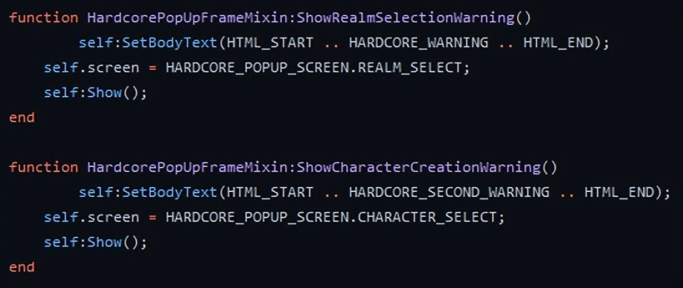 《魔兽天下》有望推出“专家模式”,近来玩家在最新10.1补丁的PTR上发现了疑似该玩法的证据。 专家模式也称硬核模式、一命模式,代表是暴雪旗下的《暗黑粉碎神》系列,该模式下脚色只有一条命,殒命之后不可复活,只能删号。固然玩法颇为硬核,但由于该模式必要联网,易受网络颠簸的影响也被常常吐槽。 固然有着各种各样的殒命处罚,但市面并没有一款MMORPG设置一命模式的先例,由于网游除了PVE尚有PVP,你很难包管敌对玩家的人不杀你。而作为玩法探索的《魔兽天下》经典赛季服,曾经引入“钢铁之魂”的成绩,夸奖那些从出生到60满级没有死过的玩家,包罗明星玩家Jokerd也参加此中,不外他的侏儒法师在50级的时间翻车了,志愿删号。 回归主题,在10.1的PTR中,Twitter用户Meorawr发现了一段隐蔽代码,功能为专家模式的弹窗告诫,标记为“hardcore warning”,像极了暗黑系列专家模式的提示。不外该代码并没有关于该模式玩法的具体形貌,也不知道是作用于正式服还是怀旧服。 专家模式最有大概登岸经典赛季服,但自赛季服的第一赛季竣事之后,第二赛季迟迟没有消息,拖了快半年,项目大概已经被砍。 固然,玩家还是乐于寻衅新模式新玩法,赛季服的许多革新已劳绩好评。在客岁,国外玩家曾自觉构造了一场硬核MC寻衅活动,40名玩家一命寻衅该团本,末了通关的时间,一共只有两个人阵亡。 |