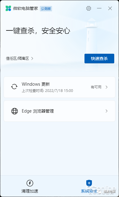 微软电脑管家已经更新到了2.0版本,在新版中这个号称安静不打搅的电脑体系安全软件对它的界面举行了大改动,别的尚有哪些新变革呢?咱一起来看看吧。 图1 微软电脑管家2.0安装界面 界面大改动安静不打搅 微软电脑管家2.0接纳了迷你界面模式,乍看上去就像很多软件的悬浮式弹窗,跟旧版对比起来,这种迷你界面模式更显的它的小巧玲珑。新版保持了微软电脑管家的安静不打搅特性,不会有事没事的打搅用户。 图2 微软电脑管家2.0主界面 图3 微软电脑管家1.0主界面 一键体检与清算加快 微软电脑管家2.0紧张分为了“清算加快”和“体系安全”两大功能分类,首页默以为清算加快页面,用户可以在这里一眼查察到现在电脑的资源占用环境以及举行一键加快使用。 别的在这里尚有全面体检、应用进程管理以及开机启动项管理几大功能。全面体检功能紧张是资助用户清算体系垃圾文件、检测默认步伐以及体系的一些优化加快使用。 图4 全面体检功能 图5 旧版电脑体检功能 进程管理功能 此中应用进程管理功能屏蔽了体系进程以及安全软件进程,方便用户查察当前运行的非体系进程并可一键竣事进程。 图6 应用进程管理功能 启动项管理功能 启动项管理功能也为用户提供了开启启动项对启动影响的评估。对比旧版的秒数,新版的“高、低”形貌方式更加的让用户秒懂。 图7 开机启动项管理 图8 旧版开机启动项管理 病毒查杀与更新检测 在体系安全这一大分类中,用户可以举行病毒查杀使用,微软电脑管家为用户预备了信托区与隔离区,以免误杀。 图9 体系安全分类 图10 病毒查杀使用 别的尚有Windows更新检测,可以资助用户查察已有更新与更新体系。 图11 Windows更新检测功能 Edge欣赏器管理功能则可以将默认欣赏器锁定为Edge欣赏器以及防止恶意步伐对Edge欣赏器的修改。对比旧版,少了对默认视频播放器、音乐播放器以及图片查察器的默认打开步伐的锁定使用。 图12 Edge欣赏器管理功能 图13 旧版的一些默认打开步伐锁定使用 总结 对比旧版,新版微软电脑管家显得更加的轻便玲珑,安静不打搅,体验还不错,假如你有相干的需求,不妨安装上它试试。 |