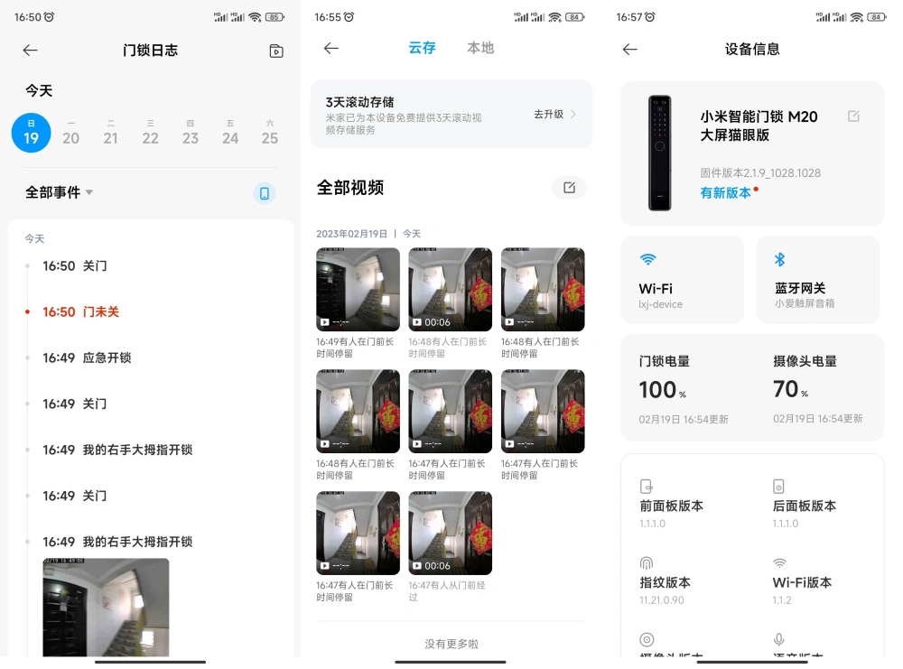 将场景相近的差别品类功能整合进一个产物内,是这些年新兴家电范畴肉眼可见的趋势。 于是出现了既能微波加热也能蒸能烤的一体机,可以吸尘扫地拖地还能用于床上除螨的干净装备,而在家庭安防范畴,也有厂商将渗出率节节攀升的智能门铃/猫眼与智能门锁相联合,一次安装便能覆盖室外安放需求。雷科技这次体验的小米智能门锁M20大屏猫眼版便是云云。 (图源:雷科技) 在小米智能门锁M20底子上,参加了门外用于及时监控的2K分辨率180°摄像头、门内用于快速监看的3.97英寸IPS屏,科技感大幅提拔,也省去门锁外单独添置智能门铃和家庭智能屏的须要。这款“大屏”智能门锁将给家庭生存带来哪些便利和安万本领改变,下面将逐一道来。 高端智能门锁,有了简便大气新选择?如名称一样平常,小米智能门锁M20大屏猫眼版在表面上,是小米智能门锁M20的“Pro Max”升级版本,一连了后者偏稳巨大气的纯黑长方形操持。有肯定厚度因此相较平常门锁显得更严厉高端,倒也在无旋转式门把手的大框架下,让人在开关门时都能比力方便地找到对应位置。 包装上可以看到,由专注家庭安防产物的小米生态链企业鹿客生产,因此让我对体验感也有了更高预期。小米智能门锁的销量已经突破400万台,服务了400万的家庭,也让小米提供的安装服务变得更成熟了,安装师傅会在上门前充实相识环境,安装中会讨论施工方案、做干净步调,一小时左右可安装完毕。 门锁出厂时会贴满掩护贴纸,正式使用时应当按照指示揭下,包管摄像头、暗码区和指纹辨认等正常工作。风趣的是,小米智能门锁M20大屏猫眼版操持了平常智能门锁不会有的“双电池区”,最深处是用于门锁主体的八节5号电池,外侧是用于猫眼部分供电的5000mAh电池。 云云双重供电体系显然是思量到了这款产物的特别性,门锁每每是低功率运作,而猫眼和屏幕会有较高的功率。根据模块特性搭配相应电池,显然会有更长续航体现也更方便用户自行更换电池或充电。官方称,门锁续航可达12个月,而猫眼部分续航也长达4到6个月,比力省心了。 作为一家在智能家居范畴耕耘多年的厂商推出的产物,自然也照顾到了电量不敷或其他应急环境下的使用:门外部分有隐蔽式的锁孔供实体钥匙举行开锁,底部设有USB-C来对门锁临时供电,门内有旋转来应急开门的旋钮,以及允许自界说为内部反锁或是童锁的向上拨动按钮。 集成完备大屏猫眼,还更好用小米智能门锁M20大屏猫眼版最引人注目标,一定是“猫眼”和“大屏”。 按照平常的智能家居思绪,装上智能门锁之后,还要额外安装智能猫眼和智能家庭屏,才气共同起来构成完团体验。做到门外发生的统统能随时监控相识,有客来访能双向音视频对话,坐在家中里屋也能知道访客身份。这么多装备一齐挂在大门上,多少有些影响雅观度,若能精简整合一定更好 小米智能门锁M20大屏猫眼版集成猫眼之后,家门能一下子变得简便不少,访客也不消去琢磨,应该按猫眼还是门锁上的门铃按钮,免去不须要的困扰。访客按门铃,门内大屏幕便能立即清楚看到,方便家中有老人和小孩的家庭使用。 门锁中还集成磷菩应式门铃灯一旦有人站外门,门铃灯就会亮起,提示访客按门铃,这个小细节非凡人性化。同时也引导人把眼光转向门锁,包管样貌可以被摄像头完备拍下,更何况门锁较低的安装位置和180°超广角自己就有上风,因此能将门外发生的统统一览无余。相当于是一处操持,改善了多个功能的体验。 而这款大屏猫眼版智能门锁,不但门锁可以检察门外画面,还支持多屏联动。当门外访客按门铃时,在手机上、小米智能家庭屏上、电视上都可以体现画面,真正做到随时随地关注家门安全,非常智能的体验。 门内集成了这么一块3.97英寸IPS“大屏”,检察门外要及时便捷得多了——只要门外有人按铃,就可以自动亮屏10秒~20秒相识环境,也可随时门内激活检察。别忘了它还能红外夜间拍摄,不消担心楼道昏暗或夜晚时分看不清来客,透过屏幕能看到传统猫眼看不清看不全的画面。 如果你相识或使用过小米智能猫眼产物,那么这把门锁的特别之处就更好明白了,它就是把智能猫眼的门外监控和门内检察完全整合进来,也不会因多个产物联动出现不稳固的环境。屏幕为顺应门锁也做成纵向放置,不外可以从超广角拍摄地区中设定,裁剪出恰当内屏的画面。 门锁功能丰富度和易用性,都属上乘作为智能门锁的部分,小米智能门锁M20大屏猫眼版,跟我们之前体验的小米和鹿客智能门锁一样简单直接方便好用。如果说有些门锁厂商在智能化期间还生存着传统安防头脑,那么小米和鹿客可以说是彻底拥抱便利性,不让用户感受到任何未便,同时依然把安全放在大条件上。 就和其他智能门锁一样,通过实体钥匙解锁的部分也是现在安全性较高的直插式C级锁芯,还把主控芯片放在门内放置外部防止暴拆粉碎,如果出现实行解锁5次以上、没关好等环境会直接警报提示用户,感知到被撬锁还能给预设号码打电话。 这款锁把电容指纹辨认放在了门外一侧朝外的面板上,用眼光就能找到辨认区,如果是用大拇指举行解锁,把右手一放上去就能立马对准位置,显然有思量到自然交互逻辑和人体工学。指纹录入和辨认的都是快速且精准的,根本上手指刚按下去,门锁就完成辨认到解锁的过程了。 和原版一样,没有接纳部分智能门锁产物上那么浮夸
