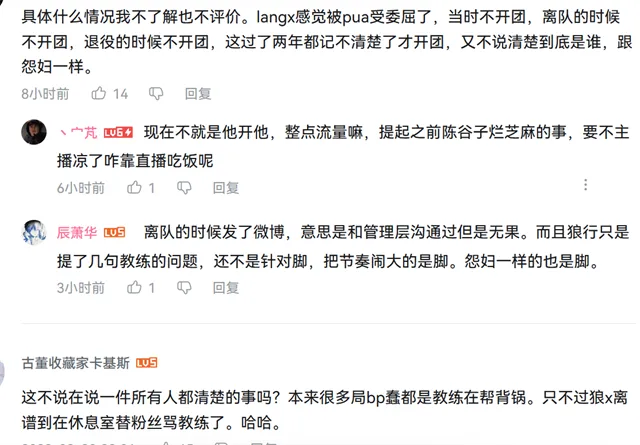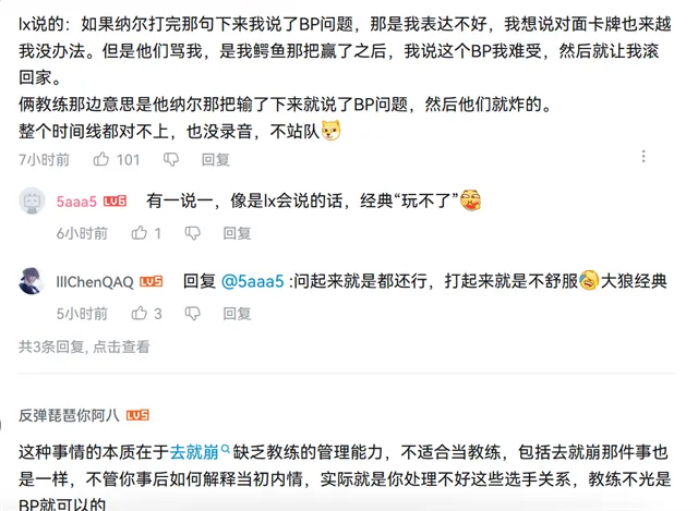 前导:TES已经四连败,白色月牙照旧没返来。毕竟证明锻练不是标题所在,TES换掉白色月牙照旧输了两场。近来有不少人为锻练语言,比如说angel和冷少。 起首是angel,他说锻练无法决定bp,都是看选手想玩什么,然后一起探究决定。其次是冷少,他给各人分享了一个故事。之前冷少想玩小鱼人,白色月牙就不想给他选,选手执意云云锻练也没办法。 不想重蹈白色月牙覆辙,被选手点名后锻练开播 终极冷少输掉那场角逐,白色月牙被战队锻练喷了,还主动替冷少“背锅”,说本身要选手拿小鱼人。冷少非常感动,表现bp跟白色月牙无关。可老板依然在喷白色月牙,冷少以为他是一个很有继承、对选手很好的锻练。 如许一位锻练被喷到心态失衡,临时脱离了TES战队。近来又有一位国产锻练站出来,反驳选手说的话。狼行曾在V5打过角逐,脚神执教期间把他按在替补席,很多人为狼行鸣不平。近来选手开播提到锻练,点名副教酸奶。 狼行说:我们锻练每天在那恶心我,但是有两个锻练,练习赛轮换他不停在阴阳怪气,说什么“这个兄弟好会玩”,上去打两把角逐他就说“算了”。不是去就崩(脚神),去就崩整天应付,别人说什么他就附和。他吼我让我大点声,谁人发出来哥们儿嘴都笑歪了。 不想再背锅了!他本身要选的输告终怪bp 狼行说酸奶阴阳怪气本身,脚神执教很应付?看到这个片断脚神坐不住了:既然他带节奏,我就回应一下。各人现在都是主播,须要流量。我从转会期提及,当时我们有两套阵容,一套新人包罗bo,转会后期战队忽然有钱了,就买weiwei、狼行。之以是轮换上单,是那局角逐锻练想选肉,狼行非要选纳尔。这些实在无所谓,锻练原来也决定不了bp。但是输角逐后狼行来了个顶级发言,说什么这个bp打不了。 直到现在脚神照旧耿耿于怀:当时全部人都在苏息室,我们两个锻练直接绷不住了。你本身选的纳尔,输了角逐说本身打不了?随后脚神接洽上了酸奶,原原来本陈诉了这件事。 酸奶一听就地开喷:我当时说选了纳尔肯定被杰斯越,输了他说bp打不了,我直接说你xx你本身选的纳尔。我xxx有录像,就是打BLG那一把。脚神、酸奶很气愤,狼行随即回应说他讲的不是第一局,而是第三局鳄鱼打青钢影,对面潘森、加里奥,给他很大压力。 总结 我感觉这种事故实在说不清,能吵的都在苏息室吵完了。狼行以为酸奶苛待本身,而脚神他们以为狼行在甩锅。打角逐的时间不能讲出来,现在他们都是主播,不消顾及,但我以为选手、锻练当初没吵明确的事故,我们再讨论也说不出谁对谁错。除此之外,锻练决定不了BP也纯属扯淡,如果锻练决定不了BP那还要锻练干什么,锻练决定不了BP不是锻练可以甩锅的来由。固然,以上都是我的个人看法。 |