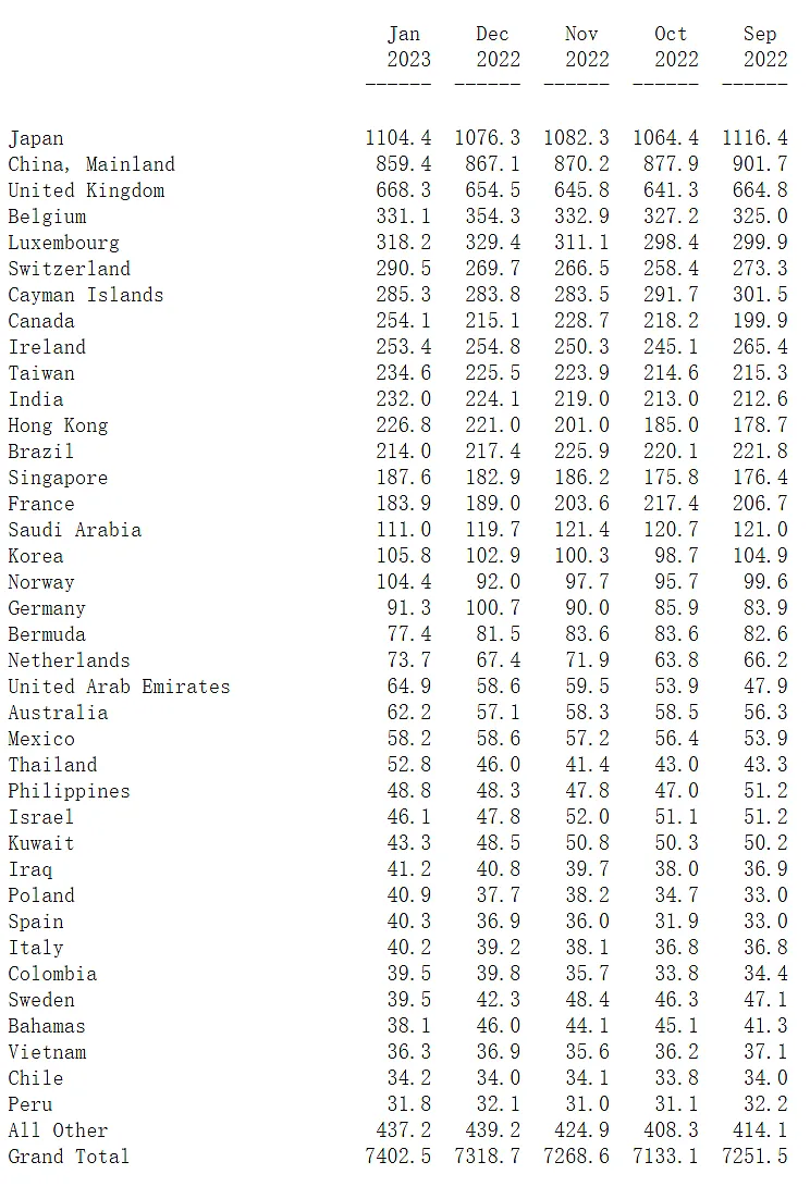 下面这个图,网友们应该很熟悉吧。这是包罗南生在内的各大自媒体分享出来的“美债持有国家、地区数据表”。源自美国财政部,内里清楚地写明:日本是美债外洋地区最大持有者,我国大陆地区排第二。 英国持有的美债凌驾6600亿美元,排第三;比利时、卢森堡、瑞士、开曼群岛、加拿大、爱尔兰、我国台湾、印度、我国香港、巴西、新加坡、法国、沙特、韩国、挪威等也是美债紧张持有者。 持有美债数量较低的有哥伦比亚、瑞典、巴哈马群岛、越南、智利和秘鲁,持有金额分别为395亿美元、395亿美元、381亿美元、363亿美元、342亿美元、318亿美元——最低都凌驾了300亿。 这分析另有许多持有200多亿、100多亿、几十亿、几亿或更少金额的国家、地区,并没有出现在名单上。形成了暗昧区,给谎言产生了滋养土壤——有人开始编造俄罗斯持有美债数据了。 俄罗斯持有的美债毕竟有多少呢? 网络上流传的俄罗斯持有美债数据较为驳杂,有几十亿美元,几亿美元,也有数千万美元……,这让那些“喜好字斟句酌,寻求数据精准的网友产生了困扰”。 现实上,各大媒体分享出来的美债数据表,通常只是美国财政部公布出来的“涵盖美国国债紧张外国持有人表”,反面还跟随着经常被忽视的“近期持有美债国家、地区的详情数据表”(如下图)。 隐蔽的这个表擦?鲱为风雅的,以英国为例:紧张持有人图表中给出的英国持有美债数额为6683亿美元;更加风雅的图表中给出的,英国持有美债数额为6682.98亿美元,准确到百万美元级别。 这个更加风雅的详情图表中,给出了俄罗斯持有美债金额——制止到2023年1月份为6700万美元左右。此中1300万美元是美国财政部发行的短期债券,5400万美元属于长期债券。 南生留意到,俄罗斯持有的美债数量在2010年10月份曾到达1763亿美元,属于美国国债的紧张持有者。但自2014年的克里米亚危急后,美国、欧洲等西方经济体不停施压,多次制裁。 俄罗斯持有的美债数量就进入到快速缩水通道——到2022年1月份,俄罗斯持有的美元已大幅缩减至45亿左右。俄乌辩论加剧后,俄罗斯在西欧的资产多次被冻结,持有美债的风险加大。 网络上乃至出现了“美国大概会公布俄罗斯持有的美国国债无效”等言论,穆迪、惠誉、标准普尔等评级机构多次对俄罗斯经济给出了负面评价,连续“清仓式”甩卖美债,才符合通例逻辑。本文由南生撰写,无授权请勿转载、抄袭! |