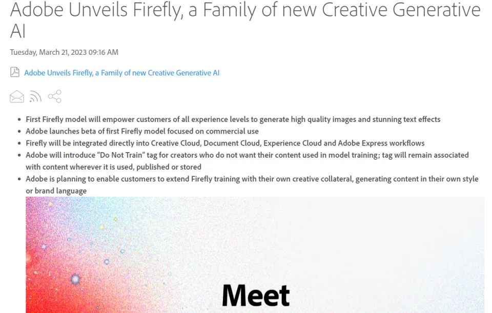 财联社3月21日讯(编辑 史正丞)北京时间周二晚间,内容生产力工具大厂Adobe公布推着名为“萤火虫”(Firefly)的创意天生式AI,正式杀入AIGC商业化赛道。 Adobe数字媒体业务总裁David Wadhwani先容称,AIGC是AI驱动创造力和生产力的下一步演进,它将创作者和盘算机之间的对话变革为更天然、直观和强大的方式。通过Firefly,Adobe将把由AIGC驱动的“创意元素”直接带入用户的工作流中,进步全部创作者的生产力和创作表达。 作为修图工具Photoshop、视频剪辑软件Premiere等内容生产软件的开辟商,Adobe选择的AI赛道切入点也与自己的老本行有关——图片天生。除了通过笔墨形貌天生图片外,还能天生艺术字体、给目的物体重新上色等功能。 根据官方发布的产物预览,也显现出“萤火虫”AI产物具有独特的“Adobe风味”。与OpenAI的DALL·E 2雷同,这款产物的出发点是用户输入笔墨输出图片,但Adobe进一步提供更为精致的“AI P图”功能。 在这款产物中,用户可以用“橡皮擦工具”擦掉模特身上的衣服,并输入“红马甲”,随即就能给模特换装。 而且这款AI还能调解模特脸部的细节,包罗年龄、笑容幅度、睁眼幅度等一系列细节。 现在这款产物仅开放了网页Beta版的试用。与微软雷同,Adobe公司也体现将尽快把这款AI融入图片、视频、殊效等一系列生产力工具中。 对于卖软件出身的Adobe来说,推出这款AI另有一个杀手锏——商业版权。 现在市面上的绝大多数AIGC工具都具有一个通病,并不对外宣称自己用来训练AI的图片库来自何方,此中大概隐含大量未经授权的图片。对于商业用户而言,使用如许的AI天生图片,大概存在未知的法律隐患。 Adobe的首席技能官Ely Greenfield先容称,在训练“萤火虫”AI时,Adobe经心挑选了数据泉源,紧张包罗Adobe自有版权的图片、具有公开授权的图片和版权逾期的图片,因此训练出来的AI具备商业上的安全性。 Adobe同时公布,正在与行业同伴推进一项“请勿训练”(Do Not Train)的内容根据标签,内容创作者可以在内容根据中提出拒绝使用自己的图片举行呆板训练。不外Adobe并没有透露,是否有其他AI模子开辟者参加这项倡议。 (财联社 史正丞) |