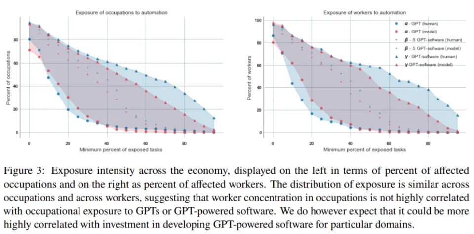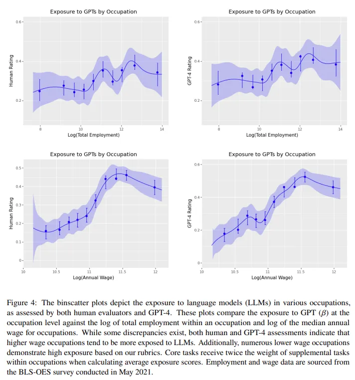 划重点: ChatGPT来了,赋闲还会远吗?上星期在GPT-4发布时,ChatGPT第一时间上线了新版本,OpenAI首席实验官Sam Altman表现他对自家这种技能「有点畏惧」。和许多专家一样,Altman担心人工智能技能的强盛本相识制造过多卖弄信息,另一方面,新技能也将改变经济、劳动力和教诲情况。 此前,AI作画已经让许多画师开始担心自己的工作会被取代。克日,OpenAI研究职员提交的一篇陈诉引发了人们更加热烈的讨论,研究职员估计ChatGPT和利用该步调构建的将来应用大概影响美国约莫19%的工作岗位,和他们至少50%的工作任务。与此同时,80%的美国劳动力至少有10%的工作任务在某种程度大将受到ChatGPT的影响。 该研究分析表明,像GPT-4如许的LLM(大型语言模子)的影响大概是无处不在的。别的,工资较高的工作 —— 大概必要实验许多基于软件的任务 —— 谋面临更多来自人工智能谈天呆板人的潜伏影响。在职业影响方面,受影响最大的职业包罗翻译工作者、作家、记者、数学家、财务工作者、区块链工程师等。 该研究还按行业细分了ChatGPT的影响。数据处理惩罚托管、出书业等行业最有大概受到影响。相比之下,体力劳动较多的行业 —— 食品、林业、社会接济等受到的潜伏影响最小。 OpenAI研究了美国高出1000个职业,并给他们贴上了实验这些工作所需的各种任务的标签。然后,研究职员利用人工解释器和GPT-4模子来评估访问由ChatGPT驱动的体系是否会将人类实验特定任务所需的时间淘汰至少50%。 让我们看看这项研究具体在干什么: 研究先容 我们先看总结,OpenAI本次观察了GPT模子和干系技能对美国劳动力市场的潜伏影响。他们根据职员职业与GPT本领的对应程度来举行评估,研究结果表明,约莫80%的美国劳动力至少有10%的工作任务会受到GPT的引入影响,而约莫19%的员工大概会看到至少50%的工作任务受到影响。这种影响涵盖全部工资程度,高收入工作大概面临更大的风险。值得注意的是,这种影响不但限于近期生产率增长较高的行业。 通太过析他们发现,像GPT-4如许的大型语言模子带来的影响大概是广泛的。随着时间的推移,LLM的本领不绝进步,纵然如今研究职员制止对新模子本领的开辟,但它们带来日益增长的经济效应也会一连增长。该研究还发现,如果思量到互补技能的发展,LLM的潜伏影响将显着扩大。这也恰好阐明白GPT正变得越来越通用。 为了分析,该研究还提出了一个新的尺度来明白LLM的本领及其对工作潜伏影响,该尺度用来权衡关于GPT任务的总袒露数。 看完结论,接下来就该先容数据集了。该研究利用O*NET 27.2数据集 (O*NET, 2023),该数据集包罗1016个职业信息,表1提供了数据集示例,包罗任务ID、职位等。 别的,数据集还包罗他们从美国劳工统计局得到的2020 年 - 2021年员工就业和工资数据。该数据集包罗职业头衔、每种职业的工人数目等。 在方法上,该研究根据exposure rubric来展示结果,Exposure rubric界说为访问GPT或GPT驱动的体系是否会将人类实验特定DWA或完成任务所需的时间淘汰至少50%。(注:DWA全称Detailed Work Activities ,可以将其明白为完成任务所必要的动作,比方表1,对于盘算机体系工程师,其DWA包罗监控电脑体系性能,确保正常运作。) 该研究对每个O*NET数据集的DWA和全部O*NET任务的子集得到人工解释,然后在任务和职业级别上汇总这些DWA和任务得分。为了确保这些解释的质量,该研究切身标记了大量任务和DWA样本,并招募了履历丰富的人工解释者,他们在OpenAI的对齐工作中广泛检察了GPT输出。 下表为模子与人的划一性比力与皮尔逊干系系数。划一性分数是通过观察两组人在解释上告竣划一的频率来确定的 (比方E0, E1或E2)。在本文中,该研究利用GPT-4, Rubric 1。 该研究为感爱好的因变量构建了三个重要度量:(i) ,对应于上面exposure rubric中的E1, (ii) ,是E1和0.5*E2的总和,以及 (iii) ,E1和E2的总和。该研究在表2中总结相识释组和度量之间的划一性。 研究结果 OpenAI的这项研究以GPT语言模子对经济具有广泛影响作为假设,我们来看一下具体的研究结果。人类和GPT-4的数据表明均匀occupation-level值介于0.14和0.15之间,这表明对于中等职业,约莫15%的任务直继承到GPT影响。 该研究估计80%的人属于至少一项工作任务受GPT影响的职业,而19%的人所处的职业有高出一半的工作任务被标记为受到GPT影响。 工资和就业 下图刻画了GPT模子对经济的团体影响。 下图刻画了工作薪资与对GPT等语言模子打仗利用情况的关系。 然后,该研究又从差别的职业分类探究了GPT模子的影响,包罗ONET数据库中的5个Job Zone。此中,Job Zone 1中的工作入职要求最低,Job Zone 5则最高。 总体来说,OpenAI这项研究发现,工尴尬刁难科学方法和驳倒性头脑的依靠程度与LLM打仗利用情况呈负干系,而编程和写作技能与LLM打仗利用呈正干系。 不外,该研究也认可:试图通过利用简朴的标签来形貌工作任务并代表每个职业,这种方法自己存在固有的私见,而且大概忽略了一些特有的技能或任务。 固然,另有一个非常紧张的标题是GPT模子如今仍存在许多缺陷,包罗编造卖弄信息,这使得人工监督工作成为须要。 大模子的广泛应用,大概意味着许多人将失去工作,但OpenAI首席实验官Sam Altman以为这也将是个找到更好工作的机会:「我们可以拥有更高的生存质量。同时,人们必要时间来更新、做出反应、风俗这项新技能。」 |