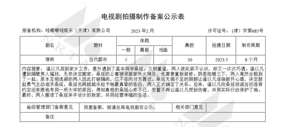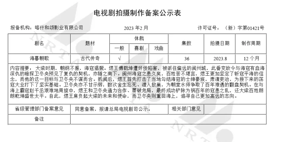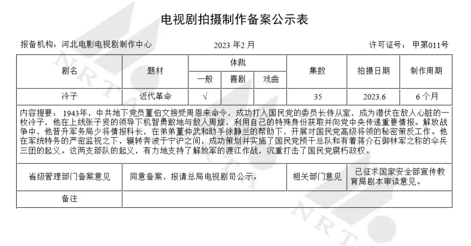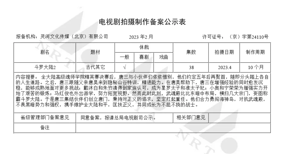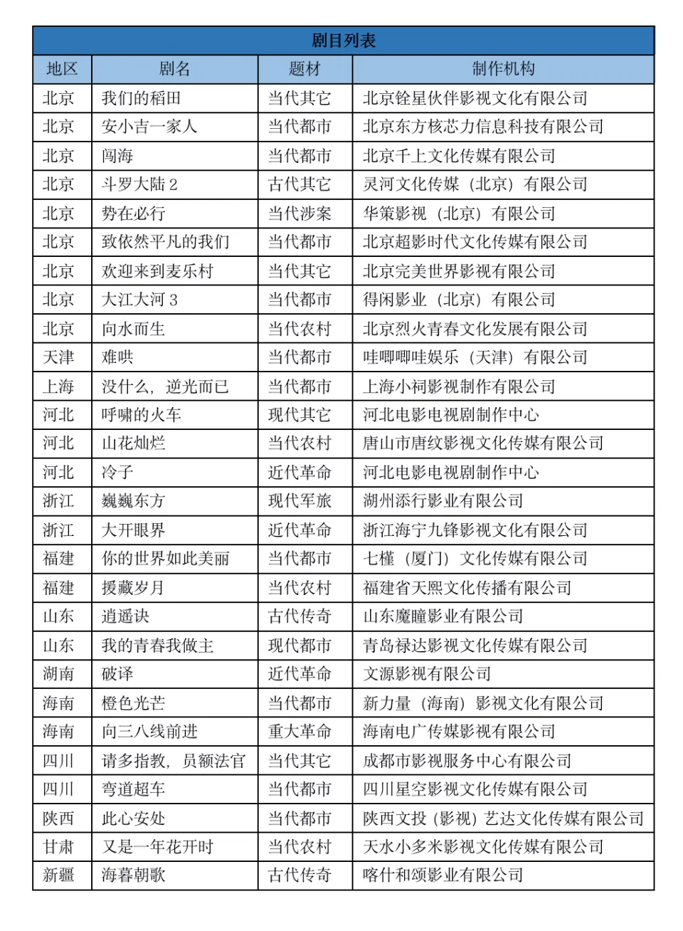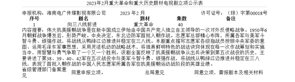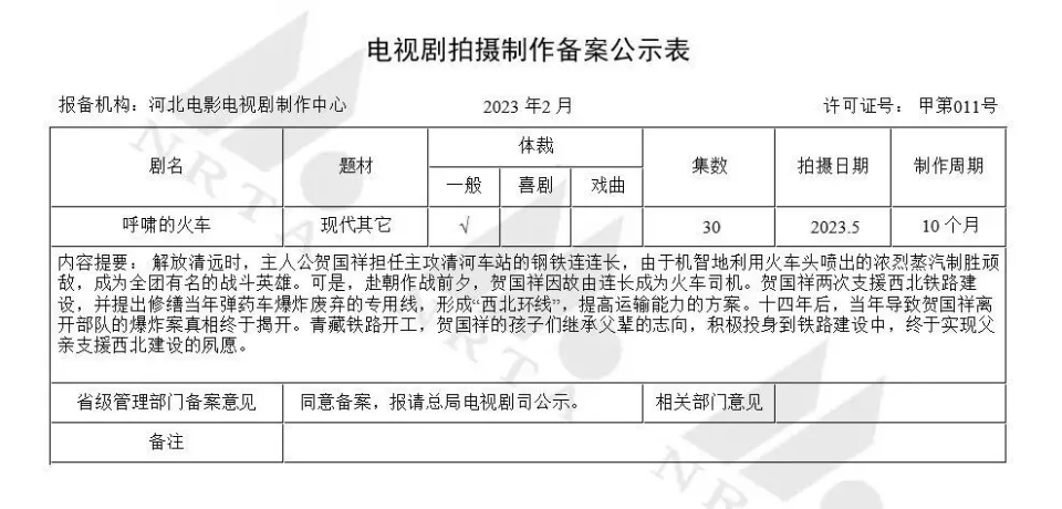 2023年2月,广电总局办公室关于《2023年2月天下拍摄制作电视剧存案公示》的片目共27部,此中今世题材有18部。 从存案的影视公司来看,灵河、华策、得闲影业、美满天下、哇唧唧哇、陕西文投、和颂影业等着名影视公司均有存案新剧。 今世题材是主流,占比凌驾6成2023年2月,天下电视剧拍摄制作存案公示的剧目共27部、914集。按照题材分别,今世题材18部、587集,分别占公示总数的66.67%和64.22%,此中 ,今世都市题材10部324集,今世农村题材4部141集,今世涉案题材1部24集,今世别的题材3部98集。 今世题材3部、108集,分别占公示总数的11.11%和11.82%,此中 ,今世军旅题材1部40集,今世都市题材1部38集,今世别的题材1部30集。 近代题材3部、105集,分别占公示总数的11.11%和11.49%,此中 ,近代革命题材3部105集。 古代题材3部、114集,分别占公示总数的11.11%和12.47%,此中 ,古代传奇题材2部76集,古代别的题材1部38集。 答应立项的巨大革命题材电视剧目1部、40集 。 海南电广传媒巨大革命题材《向三八线进步》,河北影戏电视剧制作中央 《咆哮的火车》《冷子》存案在2月的存案剧中,重点相干制作中央有 3部作品存案,河北影戏电视剧制作中央存案了《咆哮的火车》和《冷子》,海南电广传媒影视有限公司存案了《向三八线进步》。 河北影戏电视剧制作中央存案的《咆哮的火车》报告的是解放清远时,主人公贺国祥继承主攻清河车站的钢铁连连长,由于机警地利用火车头喷出的浓郁蒸汽制胜顽敌,成为全团闻名的战斗好汉。但是,赴朝作战前夕,贺国祥因故由连长成为火车司机。贺国祥两次增援西北铁路建立,并提出修缮当年弹药车爆炸废弃的专用线,形成“西北环线”,进步运输本领的方案。十四年后,当年导致贺国祥离开队伍的爆炸案本相终于揭开。青藏铁路开工,贺国祥的孩子们继续父辈的志向,积极投身到铁路建立中,终于实现父亲增援西北建立的夙愿。据悉,该剧的集数为30集,制作周期为10个月。 河北影戏电视剧制作中央存案的《冷子》报告的是1943年,中共地下党员董伯文继承周恩来下令,乐成打入国民党的委员长随从室,成为匿伏在敌民气脏的一枚冷子,他在上线张子贤的领导下机警大胆地与仇人周旋,利用本身的特别身份获取并向党中央转达紧张谍报。解放战争中,他提升军务局少将谍报科长,在弟弟董仲武和助手徐静兰的资助下,开展对国民党高级将领的秘密策反工作。他在军统特务的精密监督之下,辗转奔忙于宁沪之间,乐成筹谋并实验了国民党预干总队和有着蒋介石御林军之称的伞兵三团的叛逆。这两支队伍的叛逆,有力地支持相识放军的渡江作战,极重打击了国民党腐朽政权。据悉,该剧的集数为35集,制作周期为6个月。 海南电广传媒影视有限公司存案了《向三八线进步》。巨大抗美援朝战争是在新中国创建伊始由中国共产党人独立自主领导的一次对外反侵占战争。1950年6月朝鲜战争发作后,形势严肃。中央决定,东北边防军首批入朝作战。志愿军总部经心布阵,所属各军与美军斗智斗勇、坚强作战,将战线从鸭绿江边推进并稳固在三八线。本剧重点形貌志愿军各级指战员按照中央军委的意图、运用毛泽东军事头脑,接纳机动机动的战略战术,将独具光显特色的战法诀窍体如今每一次作战操持和实验当中,用聪明与勇气夺取了一个又一个胜利。该剧全面反映了抗美援朝战争从发兵决定到第五次战争的汗青,重要报告了第38、39、40、42军在五次战争中与美军斗智斗勇、坚强作战,将战线从鸭绿江边推进并稳固在三八线,体现了首批入朝作战的中国人民志愿军所属各军在抗美援朝活动战阶段的好汉业绩。据悉,该剧集数为40集。 不丢脸出,如今革命题材电视剧创作成为重点相干制作中央的重点,在团体风格、故事叙述、人物塑造等方面都有着新的突破。 华策影视《势在必行》聚焦“扫黑题材”得闲影业老IP《大河大江3》再存案在2月电视剧存案名单中,灵河、华策、得闲影业、美满天下、哇唧唧哇、和颂影业、陕西文投等公司存案新剧备受关注。 灵和文化存案的《斗罗大陆2》报告的是全大陆高级魂师学院精英赛决赛后,唐三与小同伴们依依惜别,他们约定五年后再聚首,随即分头踏上各自的人生蹊径。之后,唐三跟随父亲唐昊来到秘密山谷特训,精进本领。在唐昊资助下,唐三在加强履历的同时愈发沉稳,可以或许成熟地面临更多挑衅;戴沐白和朱竹清得抵家属认可,成为星罗太子和准太子妃;小奥和宁荣荣为加强气力开始了费力的锻炼;马红俊也外出游学,积极拓宽视野。然而此时如今,武魂殿比比东暗中布局,横扫几大宗门,妄图称霸斗罗大陆。于是唐三集结同伴们建立唐门,秉持对公理的寻求,刚强扛起重任。他们协力勇闯海神岛,对抗武魂殿,不畏暗中权势和强权,携手维护全大陆宁静,匡扶公理,共同发展为不屈不挠的兵士。 据悉,该剧由腾讯视频出品,灵河文化承制,王娟总监制,方芳、白一骢、王莹监制,李黎明、蔡佳继承总制片人,柳絮、侯亚男继承制片人,田良良总编剧。《斗罗大陆2》制作周期为10个月,集数为38集。 华策影视(北京)有限公司存案的《势在必行》报告的是1999年,古城监狱狱侦员罗维民偶尔间发现,正在狱中服刑的重刑犯王国炎,身负数起疑点重重的命案。在罗维民想要进一步观察此案时,却遭到了无法预想的层层阻力,罗维民与战友赵中和发愤要翻开这