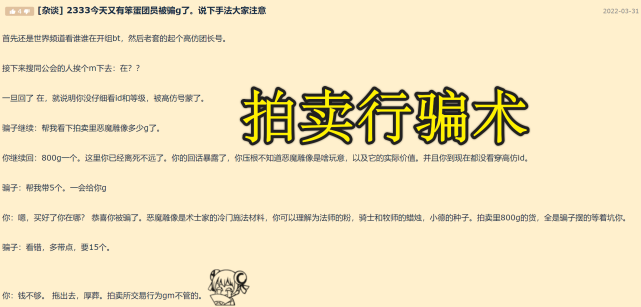 按照一些玩家们的说法来看,近来不少公会成员遭到这种骗术的诱骗,而且纵然自己末了发现被诱骗以后也很难找GM申说返来。根据某论坛玩家的帖子来看,该方法紧张是利用小号举行伪装,但是小号伪装实在有两个标题,第一个便是品级,第二个标题便是名字上仍然会有肯定的差别,那么这种方法是怎样乐成的呢? 这个骗术的原理很简朴,只必要盯着公屏大概是盯着集结号看着有没有人开团,假如有人开团而且这个名字比力好模仿,那么此时就开始举行举行下一步了,先举行搜索该玩家所在公会,而且找到同公会的人,接下来别的一件事故就开始了,举行疯狂私信同公会的人,私信谁不紧张,私信了再说。 鱼饵已经抛出了,那么接下来就等鱼中计了,只要有人是正常复兴信息,不外发国粹,那么此时就举行下一步。直接扣问他说XXX质料在拍卖行中代价多少,而这位玩家已经在拍卖行中提前匿伏好了,大部门低价的物品已经被秒了大概是找一些冷门的质料,险些没有人卖,以是此时对方只要答复这个物品的代价后就可以开始捕鱼了。 答复物品的代价自己就存在两个标题,第一个是相对来说已经信任了这位玩家便是自己公会里的人,而且该玩家的防范意识不可,居然连名字品级和装备差距都没有发现,而且不懂得该物品的实际代价,固然假如你是扮猪吃老虎的话就另当别论了。 那么接下来该玩家就会找你帮助买一点质料,正常情况下你会很乐意的帮助购买,毕竟这位玩家是团长又是公会里的人,以后不免都会想进团跟团长搞好关系了以后不得轻轻松松入团,说不定以后还能有个黑幕,于是该“团长”就让对方帮助买质料,买完后让对方多买几个,之后就拉黑了。此时大概会有玩家问了,拉黑干什么,不是质料还没有拿到吗? 好像各人忘记了前面说过的一件事故,该质料实在就是该玩家在拍卖行中举行售卖的,以是当你下单购买的那一刻起该玩家的骗局就已经乐成了,让你多买几个只是想多骗你频频。那么这种活动探求GM有用吗?小八只能说大概有用但是很难,固然暴雪出会帮助追回拍卖行诓骗的G币,但是仅限于两种情况,第一个是字体诓骗,第二个是叠加诓骗。 而在这个骗局中很显着不属于这种活动,而且该玩家也并没有“诱骗”你,只是让你帮助去购买一下该质料而已,而你却是美意帮助,以是是志愿中计。以是该活动纵然探求GM小八个人以为追回的大概性很低,但是仍然发起各人去探求GM寻求资助,毕竟有时机总比绝望好。 游戏中绝大部门人大概并不会去诱骗各人,但是总有那么一些玩家想依赖诱骗来获取G币,而且一旦被诱骗了就难以追回G币,以是小八发起各人擦亮双眼谨防一些骗局的出现,假如遇见骗局第一时间去找GM尚有时机追回,但是时间太久的话,很大概已经将你G币全部处理完成,此时你已经没有时机在追回了。 |