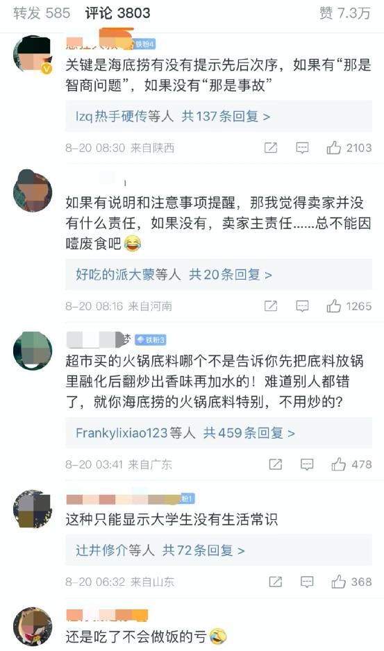 海底捞又摊上事儿了...... 本日,#大门生点海底捞外卖被炸伤眼睛# 的消息冲上热搜。 8月19日,杭州一大三门生称在美团外卖点了海底捞外卖,吃的时间忽然炸锅致眼角膜上皮剥脱。该同砚表现,煮了也就十几分钟就爆炸了,炸的随处都是辣油。 海底捞工作职员表现,检察监控发现是由于先放的底料,再放的水,再加上没有搅拌,就出现了炸锅的环境。 海底捞回应:先放底料再放水 据钱江晚报小时消息,海底捞回应称,在变乱发生后,他们与当事顾客取得接洽,相识身段状态,负担就诊费用,退还餐费,并将连续为顾客提供须要的资助。根据核实发现,顾客备餐时先放了底料,之后再加水,且没有搅拌,出现了热油喷溅的环境。 图 / 钱江晚报 “由于外送暖锅套餐由顾客自行设置锅底,我们在出品和底料外包装上都明确设置了使用阐明和安全提示,引导顾客在调配锅底时先加水、后加底料,并提供发起的配比。 恳请各人按照提示使用,克制出现热油喷溅或干锅,带来不测伤害。” 海底捞表现,会对提示流程进一步加以优化,并连续关心客人的康健环境。在此朴拙感谢各方对此变乱的关注和监视。 图 / 钱江晚报 不少网友看到这一幕后纷纷表现: 热油不放水是生存通用知识,脱离了暖锅店也是知识,就像微波炉不能叮完备的鸡蛋,就……忽然明确了小学课程参加烧菜课程的用意。 另有网友表现,这个,是不是先放底料没搅拌导致固体沾在锅底,后续加热十几分钟受热不匀称导致的爆炸啊……那,属实是,要造就一下安全意识了。 也有网友质疑海底捞有没有提示先后序次,不外有网友表现,都是有阐明书,但是各人都不看。 另有不少网友则以为商家没有来由担责,不要用讹人头脑去思考,热油不放水是生存通用知识,脱离了暖锅店也是知识。就像微波炉不能叮完备的鸡蛋,爆炸了不能赖微波炉厂商没有把你教好。 一位餐饮业人士以为,海底捞有没有责任,关键是要看: 1)海底捞有没有提供明确的使用流程,和充实的安全提示; 2)海底捞提供的锅具很薄,在加热时很容易受热不均,这和炸锅肯定有关系,但海底捞有没有干系提示? 履历总结:1、产物安满是大事,厂家必须把干系风险梳理清楚并明确标识;2、斲丧者千差万别,在订定产物使用阐明时,要把斲丧者当小白而不是专家能手。 “暖锅一哥”上半年预亏逾2.25亿元 8月14日晚,海底捞在港交所官网披露上半年财政数据。 2022年上半年公司业务收入预计最高下滑17%,净利润将连续客岁下半年以来的亏损局面,净亏损预计为2.25亿至2.97亿元,上年同期净利润为9650万元。 海底捞在公告中表现,此次亏损受“啄木鸟筹划”下部门门店关停、疫情反复及2022年上半年斲丧市场等多重因素影响。 公告表现,至2022年6月30日止六个月中,海底捞收入预计不低于人民币167亿元,对比2021年同期收入约为人民币201亿元,同比镌汰不高出17%。净利润亦出现亏损。2022年上半年,海底捞预期净亏损额约在2.25亿元至2.97亿元人民币之间。 海底捞亏损的重要缘故起因包罗两方面: 一是“啄木鸟筹划”下部门门店关停及2022年上半年新冠疫情的影响,发生的处理恒久资产的一次性丧失、减值丧失等合计约人民币2.55亿元至3.27亿元; 二是2022年3月至5月新冠疫情反复,多少餐厅在一段时间内克制业务或停息堂食服务,但仍有固定开支及员工资本产生。 所谓的“啄木鸟筹划”是指,海底捞于2021年11月推出的紧缩扩张战略、加强内部管理的谋划筹划,该筹划由公司实行董事兼副首席实行官杨利娟领导。 2021年,海底捞履历了上市以来的艰巨时间。 2020年疫情初期的逆势疯狂扩店在2021年埋下“地雷”,当年巨亏41.6亿元,险些把上市三年的累计净利润一把亏光,股价亦一起下行。无奈之下,海底捞认可战略误判,推出“啄木鸟筹划”,旨在举行战略紧缩并加强内部管理。 该筹划的重要内容包罗:连续关注经业务绩不佳的门店,包罗外洋门店,并相应采取改善步调;重修并强化团体部份职能部门,规复大区管理体系;在科学稽核各部门的条件下,连续向员工转达企业文化及“双手改变运气”的代价观,并鼎力大肆提倡爱和信托为核心的奉献精力;适时紧缩团体的业务扩张筹划。 如今来看,该筹划暂未能快速扭转亏损困局。 不外,随着疫情好转,海底捞的业务有了规复迹象。公司称,2022年6月以来中国大陆地区及其他地区的餐厅谋划表现月度环比已经显着好转。 西部证券8月15日研报指出,扣除减值丧失后海底捞实现微利,“业绩超出我们此前预期”。 中金公司同日研报也称“上半年亏损好于预期,6-7月翻台率连续超客岁同期,估计暑期旺季翻台率进一步提升”。别的,2022年上半年,海底捞开店速率显着放缓,西部证券研报预计共新开15至20家门店左右。 海底捞表现,“团体将密切关注市场状态并调解贸易战略及运作,以镌汰负面影响。本团体还将实行积极步调控制租金及其他运营资本,严谨管理运营资金,并运用信贷融资和股本融资本领,确保现金流妥当及现金状态良好。” 海底捞客岁永世性闭店260家 在客岁公布的“啄木鸟筹划”中,海底捞将翻台率作为是否再度开启规模化铺设新门店的告急参考因素。其详细表述为,“若本团体海底捞门店的匀称翻台率低于4次/天,原则上不会规模化开设新的海底捞门店。” “客岁我们主动闭店260家(不思量租约到期、搬迁),尚有32家门店休业休整。”海底捞实行董事、首席