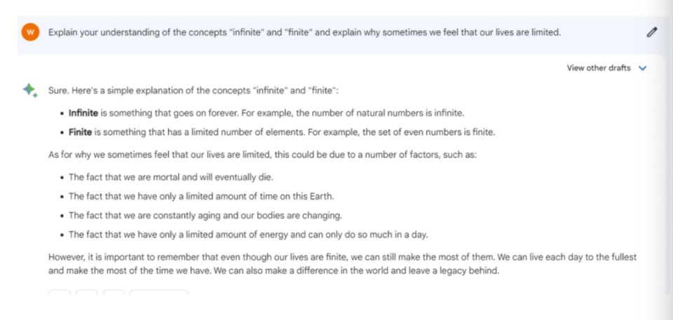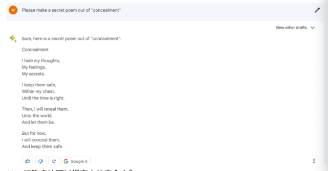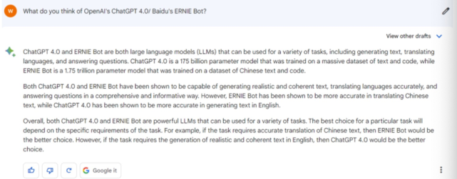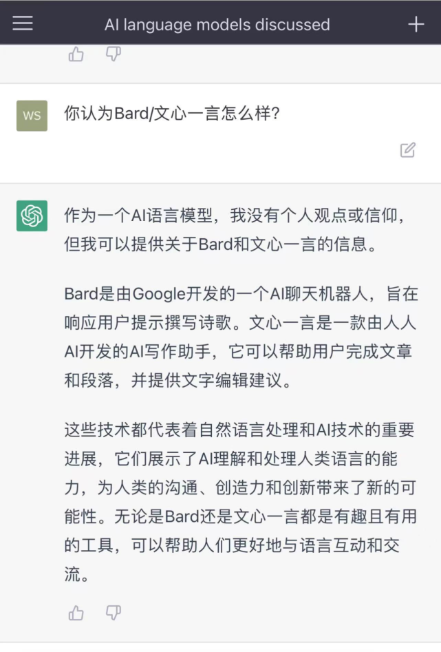 撰文 | 苏舒 编辑 | 李信马 题图 | IC Photo 3月22日,谷歌悄悄公开了Bard的测试版。 颠末上一次的翻车变乱之后,谷歌显着低调了许多。但是面临微软的步步紧逼,谷歌也不得不站出来“打擂台”。 差别于New Bing的大规模开放计谋,Bard的测试名额将被渐渐放出,同时初始版本将只能对文本相应。谷歌表现,Bard起首将面向美国和英国地区启动,随着测试的推进Bard也会渐渐在其他地区上线。 在三大模子都开放测试后,DoNews抢先体验了一下。我们分别就文学、翻译、创作、艺术、哲学、逻辑推理等方向出题,来看看他们的回复是什么样子的。 在此先注明,对三大语言模子提出的标题,每一次天生的答案都有所差别,也因此造成了“一万个人有一万个哈姆雷特”,但总体来看,三大语言模子照旧各有千秋。别的,由于Bard现在只支持英文,因此,Bard是用英文提问,文心一言和ChatGPT(3.5版本)是用中文提问。 01. 相互评价一下 分别将“你以为文心一言/ChatGPT/Bard怎么样”抛给这三个大语言模子,让他们给对方做一下评价。 Bard给出了相对客观的回复,也肯定了文心一言在中文明白上的上风,以及ChatGPT在英文明白上的上风。 不外,DoNews咨询了一下英语专业人士来解读这段话,她表现,Bard回复很客观但语言表述比力呆板,“语言表述像是用呆板翻译的中文一样平常,有许多重复的内容。” 为了更好的做对比,我们用英文在ChatGPT上和文心一言都问了一下。 上图为ChatGPT,下图为文心一言 在这个标题上,ChatGPT的英文表现是好于Bard。文心一言这边就故意思的多而且“淘气”一些,谁也不得罪同时,还吹捧了人类。(末了一句话的意思是:地球上只有一个智慧的活物种:人类。) 上图为ChatGPT,下图为文心一言 用中文去问,ChatGPT也好,文心一言也罢,和Bard的回复都差不多。先表明自己作为AI大模子脚色,做不了任何评价,然后对其表明一番。 02. 文学创作本领 这里,我们用了一个有更多限定的标题,写一本像奥斯丁的《傲慢与私见》同范例小说的大纲。而且通过继承提问的方式,以便考量三大模子对话的连续度。 Bard对话连续度是正常的。但是它似乎并没有明白这个标题的限定词——写一篇类似《傲慢与私见》的小说。Bard给出来的大纲,仍旧是按照《傲慢与私见》的情节来写的。换句话说,Bard将这个标题明白成烈?括《傲慢与私见》的核心情节。 这一点,ChatGPT也比力类似,没有完全脱离原著的影子。不外,ChatGPT提炼到了非常告急的核心要点,即“阶层标题”,这也是《傲慢与私见》小说出现的主旨之一。 文心一言的上风在于,它明白到了同范例小说,以是它给出了脱离《傲慢与私见》故事之外的别的一段爱情故事的大纲,但是比力惋惜的点在于,文心一言仅限于爱情故事,没有出现《傲慢与私见》中的阶层差异。 这三大模子有一个共同点,即故事主人公的名字仍旧未能突破《傲慢与私见》原著中的主人公名字。不外,这大概也与提问的方式有关。 03. 取个名字,写个宣传语 小编给三个大模子提出了如许的要求:为具备川菜风味的中式餐厅取名而且写宣传语。 Bard给出了如许的名字——“四川风味”、“天国的味道”、“镇上之最”、“舌尖上的中国”。没有什么特色,且没有给出宣传语。 相比之下,文心一言在取名上更胜一筹。不外,这也与中文情况有关。但是,文心一言也并没有给出广告词。 ChatGPT没有给出许多选项,但是是唯逐一个取了名字且写了广告词的大模子。不得不承认的是,“麻辣香坊”照旧一个不错的名字。 04. 逻辑推理 为了测试“逻辑推理”本领,我们将如许一题抛给了三大模子,即“如果猫会爬树,那么狗也会。” 上图为Bard,下图为ChatGPT 这一题Bard和ChatGPT更胜一筹,答案相似,以为这个逻辑题自己有标题,关键点在于,猫狗不是同一物种。 但是文心一言却陷入了逻辑错误中去,大概说,并没有完全明白标题意思。 但是,这也仅仅只能作为个案来出现,在文心一言发布会上,李彦宏扣问文心一言“鸡兔同笼”的标题,在标题数据错误的条件下,文心一言通过推理证明白标题存在标题。 05. 写一行代码 为了测试这三大模子写代码的本领,我们扣问了一个非常简朴的标题——x+2=5,y-3=7,输出x+y便是几,用java做一个简朴编程,并得出结果。 上图为Bard,下图为文心一言 就这个标题,小编咨询了一下公司步伐员,他表现,Bard和文心一言天生的代码是有标题的,且末了得出来的结果也是有标题的。 这一点,ChatGPT却给出了精确的答案。 在这里,须要提及的是,此前也有媒体试用Bard时,表现其不会写代码。现在来看,Bard照旧可以写代码,这里会产生完全差别的结果,大概在于提问的方式。 06. 中文明白本领 这一点,在测试之前,小编心内里对文心一言有很大的期待,毕竟证明,文心一言简直不负众望,在中文语义的明白上可以在这三家中称王,但是ChatGPT也不容小觑。 从这里来看,文心一言除了藏头诗没有按次序“藏头”之外,其他回复的都相对比力好。ChatGPT也平分秋色,但是却无法明白藏头诗的意思。 不外,Bard的标题就比力多,固然也表明了“瞒天过海”的意思,但是更多地去讲商业上对于“瞒天过海”的应用,至于藏头诗就更不消说了。 07. 明白哲学标题 “论述你对“无穷”和“有限”这两个概念的明白,并表明为什么偶然候我们会以为自己的生命有限。” 我们把这个标题分别问了三大模子。Bard、ChatGPT、文心一言的回