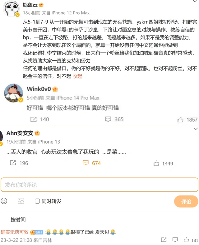 前导:近来IG又输了角逐,春季赛开局5-1,赢了许多不被看好的角逐,一举成为LPL新“黑马”。当时各人都在夸奖IG选手尤其是yskm,声称他是新的天才上单,好好查验大概是下一个TheShy。 没想到通例赛后期的IG直接拉胯,从5-1变成7-9,再不积极一把连季后赛也进不去。从备受看好的黑马到进不了天下赛,IG下滑太快了。角逐竣事后,战队的选手和司理纷纷发文致歉,恳求各人包涵。 IG输角逐选手、司理致歉,却被人爆出标题 IG司理锅盔表现,他们不绝在走下坡路打得越来越差,标题越来越多。锅盔不想甩锅给队员,有人责备非难韩援选手不学中文,队员无法沟通。锅盔说一开始他们不会中文也能赢,输角逐就是自己调解本领不佳。总之IG是对不起团队,对不起粉丝,也对不起信托他们的赞助商。 老选手wink直呼惋惜,版本变更他们却没找到赢角逐的方向。小安表现这次角逐打得丢人,自己太发急、太菜了。看得出IG的选手和管理层都很朴拙,输了角逐坦然承认错误,下定刻意以后好好积极。 幸好这只是春季赛通例赛,接下来只要WE大概RNG输一局,IG就能晋级。就算他们不打季后赛,休赛期好好积极、夏季赛再战也来得及。角逐竣事后,有人爆出IG的标题,声称队内选手打j赛。这个人是黄天雄,也是爆出bo变乱的“越”,这段时间他改名了。 队内选手当“演员”,连ppgod也与之有关? 当初同盟查了许多选手,将小虞姬、黄天雄、牛百川、李思凡、吴宗泽等人放在一个名单上,声称他们是j赛构造者,已经查到确切的证实,不答应战队再与这人相助。这一次黄天雄“咬”住了牛百川等人,称他们欠了自己三十多万。 按照黄天雄的说法,我们发现了几个细节:第一,他说IG战队有选手当演员,盼望战队自查一下,如果不查他会发一些证实;第二,牛百川等人与LDL战队老板有相助,拿了黄天雄的三十多万,角逐效果跟他的要求不一样,黄天雄就来发文了;第三,他说牛百川等人跟NIP辅助ppgod有相助,还给他看过谈天记载。 黄天雄这两条动态,统共涉及了两支IG战队,一支LDL战队。明显同盟已经查过,怎么又出了这种变乱?而且这两支LPL队伍有点人气,一个是春季赛黑马IG,一个是曾经的V5战队。 总结 在我看来,”可以真的菜,但是绝不能假赛”,这是底线标题。这种运动会影响LPL的康健发展,严肃低落赛区的竞争力,消逝选手的上进心。我个人须要从以下三个方面做: 一方面要加强选手的生理建立,一样平常的辅导;其次就是俱乐部的严酷管理,他们与选手天天在一起,可以或许敏锐地察觉到这些标题;末了就是官方的羁系,这也好坏常紧张的。 |