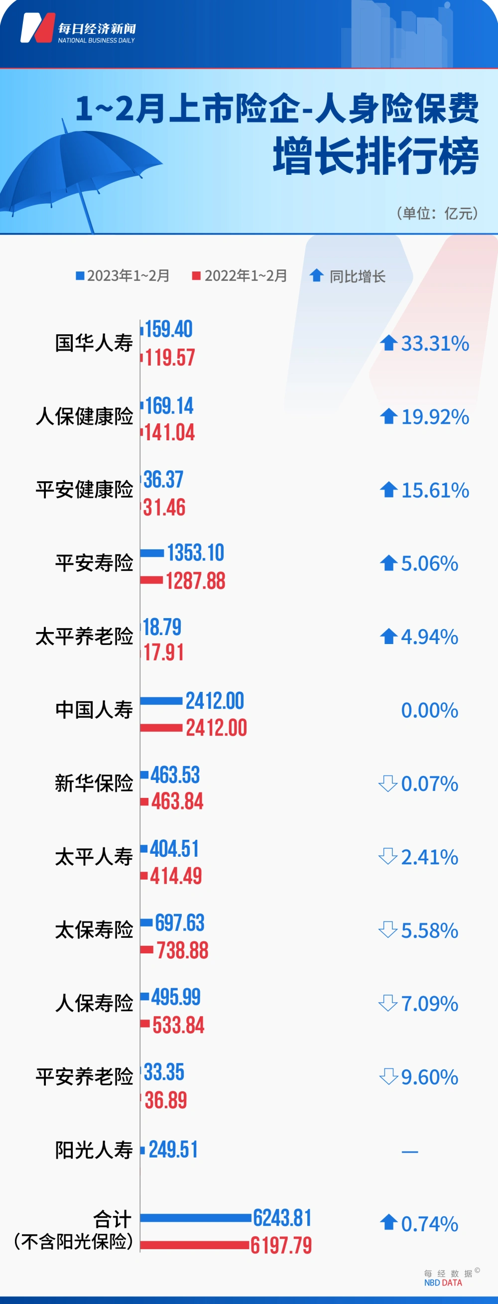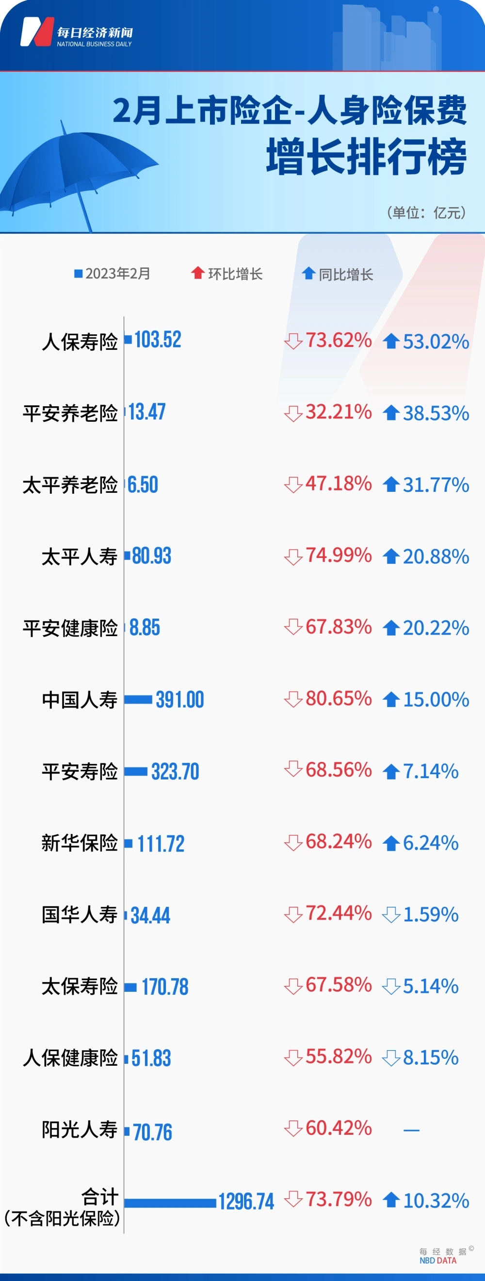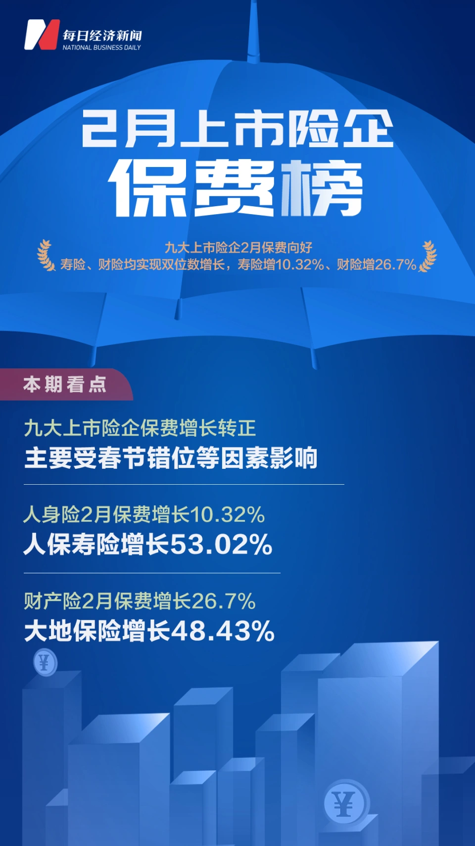 每经记者:涂颖浩 宋钦章每经编辑:马子卿 从年初开始,上市险企保费榜单成员扩充至十家,客岁在港上市的阳光保险,克制现在已一连两月披露月度保费数据。 《逐日经济消息》记者统计表现,2023年1-2月,不包罗阳光保险的9家上市险企或旗下保险公司合计实现保费收入8305.96亿元,同比增长3.04%。受低基数、需求复苏等因素影响,2月份产、寿险单月保费增长亮眼,此中财险取得26.7%的高增长,寿险亦增长10.32%。 对于上市险企最新保费表现,一位券商分析师在继承《逐日经济消息》记者采访时表现,“2月保费高增长重要是受到受春节错位因素影响,不外也可以看到各家公司二、三月份业务出现显着复苏态势,判定将来这一增长是可一连的。” 在二级市场上,2月份保险股表现震荡,板块市值与1月末根本持平。在上述分析师看来,保险股近期的表现大概反映了市场担心“环球金融风险对中国市场是否会产生影响,包罗对保险公司的外洋资产产生一些影响”。 上市险企保费总榜九大险企1-2月总保费同比增长3.04%点评:受春节错位影响,与2023年首月相比,1-2月9家上市险企总体保费增速由负转正。三家中小公司保费均有两位数增幅,大型险企中除新华保险保费同比微降、中国人寿持平,其他险企保费同比均为上升。 从保费规模看,中国人寿排名居首,以490亿元的规模上风领先中国安全,今后是中国人保。从几家大型险企保费增长环境判定,现在财险公司景心胸仍然好于寿险公司。 1-2月人身险排行榜11家险企保费微增0.74%,国华人寿33.31%增幅居首点评:以银保渠道为主的国华人寿前两月保费增长33.31%,在人身险公司中表现亮眼。人保康健险、安全康健险两家康健险公司1-2月保费仍实现两位数增长,表现康健险业务增速仍大幅好于寿险业务。 在几家大型寿险公司中,1-2月仅安全寿险录得唯一正增长;中国人寿保费与客岁持平,1月份相比保费增速改善。 2月人身险排行榜11家险企单月保费增长10.32%,人保寿险增长53.02%点评:受春节地点月份差别影响,2月人身险公司保费增速转正,并实现两位数增长。各家公司单月保费增速分化显着:人保寿险2月保费同比大增53.02%,“谋划计谋和春节因素或为重要缘故因由”,有分析师如是表现;中国人寿、安全寿险单月保费也为正增长。 据市场分析人士判定,低基数、转型收效、叠加需求改善配景下,2月新单同比显着改善,3月将一连复苏趋势。 1-2月财险排行榜6家险企保费增长10.68%,清静财险23.79%增幅居首点评:财险公司1-2月保费增长显着回暖,增幅站上两位数。清静财险增幅较1月有所降落,但23.79%的增长仍然居于榜首。 别的上市财险前两月保费增速均较首月改善,“老大”人保财险前两月保费增长高出9%,较首月大幅改善,安全财险增速由负转正。大地保险、太保财险、众安在线均实现两位数增长。 2月财险排行榜6家险企单月保费增长26.7%,大地保险增长48.43%点评;2月上市财险公司保费增长大“翻身”,6家财险公司单月全部实现双位数增长,合计实现26.7%的团体增幅,一改1月份小幅正增长的低迷态势。 对于财险团体高景心胸的背后缘故因由,业内分析以为,车险受益春节后乘用车贩卖回暖、非车险受益于年后招投标规复全面高增。若后市乘用车贩卖一连向上,继承推动车险保费提升可以等待。 2月保险股市值排行榜板块市值2.64万亿,中国太保2月股价上涨7.05%点评:2月十大公司市值2.64万亿元,与2023年1月末相比根本持平。4家H股上市公司当月股价均下跌,A股公司则以小幅上涨为主。2022年末以来,保险股领涨金融板块,现在各家公司估值仍处于汗青低位,但反弹动力仍显不敷。 中国安全已于16日发布年报,表现资源市场颠簸对公司2022年业绩影响显着,这对于其他险企也是共性。有券商分析人士以为,保险板块上涨行情仍未竣事,股市上涨、叠加长端利率上行,以及代价止跌反转形成共振之下,保险板块将受到驱动。 逐日经济消息 |