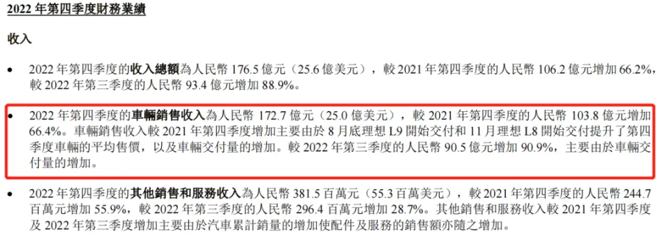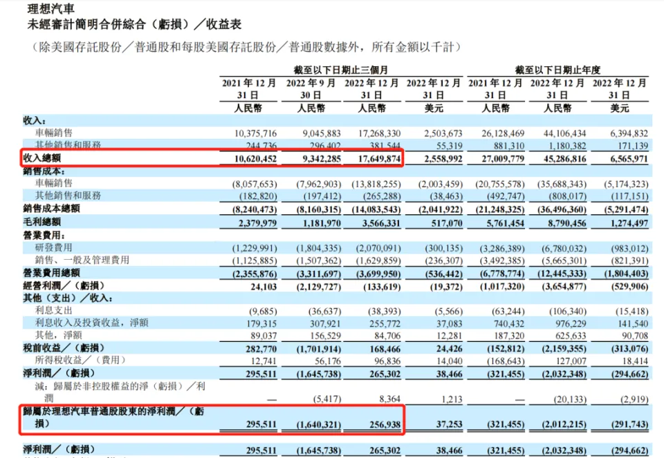 弁言:理想汽车已经正式走过依赖理想ONE“一招鲜,吃遍天”的阶段。但相应地,理想汽车亏损也在加剧;接下来,理想的红利之路尚有多远? 2月27日晚,理想汽车公布了2022年第四序度及整年财报。数据表现,理想汽车2022年实现营收452.9亿元,同比增长67.7%;2022整年归属于理想汽车平常股股东的净亏损(以下简称“归母净利润”)为20.12亿元,较2021年亏损3.2亿元扩大了528%,毛利率也降落1.9%至19.4%。 如许一份增收不增利的财报,相比蔚来汽车亏损高出140亿元好像不算什么,却也展暴露理想汽车在亏损泥潭中尚难自拔的信号。 2022年底,理想汽车内部开启矩阵型构造架构变更,除总裁、CTO等高管人变乱更外,还确定了本年要迈向“千亿元”营收的弘大目标。 云云看来,理想汽车在新能源汽车市场竞争越发猛烈,且整个汽车行业处于代价战的环境下,想要实现该目标,难度和压力巨大。 1)Q4再次红利,但再次没赢自己固然理想汽车2022整年亏损较之前严峻,但第四序度和2021年雷同,实现短暂红利。 数据表现,2022年第四序度,理想汽车归母净利润为2.57亿元,相比2021年同期的2.96亿元,降落15.27%。团体第四序度处于红利状态,但未跑赢上年同期。 别的值得关注的是,理想汽车在第四序度实现营收176.5亿元,同比增长66.2%,较第三季度增长88.9%,占据整年度业务收入约39%。因此可以大概看出,对于理想汽车的2022年来说,这个没能跑赢自己的第四序度,反而在整年营收中贡献颇大。 在第四序度业务收入中,车辆贩卖收入172.7亿元,较2021年同期增长66.4%,较2022第三季度增长90.9%,占第四序度团体营收比例将近98%。 对此,理想汽车表现,车辆贩卖收入增长,重要由于8月起渐渐停产30多万元的理想ONE,8月尾开始交付45万元以上的理想L9,以及11月开始交付33万元以上的理想L8,这些提拔了第四序度车辆的均匀售价。 从交付量来看,2022年第四序度,理想汽车共计交付46,319辆,同比增长31.5%。但遗憾的是,这并未能扭转理想汽车无法完玉成年目标的局面。2022整年理想汽车总交付量到达133,246辆,同比增长47%,相较17万辆的目标仅完成78%。 对于2023,主打增程式的理想汽车,将面对越来越多进入该范畴的有力竞争者,还能否保持销量、营收的高增速,恐怕绝非易事。 2)亏损比年加重,研发投入增强在“蔚小理”三家造车新权势中,理想汽车是此次率先公布最新财报的一家。从公布时间上来看,理想汽车大概对自身利润环境比力满意。 从财报毛利表现上来看,2022年理想汽车的毛利为87.9亿元,较2021年的57.6亿元增长52.6%。然而,其团体毛利率及车辆毛利率同比均有所降落。2022年理想汽车毛利率为19.4%,而2021年为21.3%;2022年其车辆毛利率为19.1%,而2021年为20.6%。 理想汽车表现,车辆毛利率下滑重要是由于2022年与理想ONE有关的存货拨备及购买答应丧失,被2022年第三季度起开始交付的理想L系列较高的车辆毛利率部分相抵消所致。 整个2022年,理想汽车仍处于亏损状态,整年归母净利润为亏损20.12亿元,较上年亏损水平同比扩大525.97%,且自2018年以来,五年亏损累计超64亿元。从这个数据上来看,也侧面表现出理想汽车的本钱控制本领以及在蹊径选择上的取巧之处。究竟,蔚来、小鹏这几年已经亏损数百亿。 固然亏损加剧,但理想汽车研发投入却丝绝不减,而且随着理想汽车产物矩阵的不停美满,公司研发费用付出还跟着水涨船高,以补最初造车缺乏的课。 根据财报数据,理想汽车2022年第四序度的研发费用到达20.7亿元,同比增长68.3%;2022整年其研发费用高达67.8亿元,同比增长106%。 在业绩电话聚会会议上,理想汽车CEO李想也对研发费用的增长表现承认,称理想汽车的业绩,取决于公司对研发和业务本领的不停投入。可标题是,特斯拉与传统车企掀起的代价战,恐怕会打乱李想的快意算盘。 3)“千亿”营收目标,尚有多远在财报发布后的电话聚会会议上,理想汽车还基于2023年的发展对第一季度业绩做出推测:公司预计2023年一季度车辆交付量为52,000至55,000辆,较2022年第一季度增长64.0%至73.4%;2023年1~2月,理想汽车已累计交付31,761辆。 团体来看,随着理想汽车产物矩阵的丰富与美满,公司取得了营收和交付结果的较快增长。但是面对逆势贬价的特斯拉,包罗理想汽车在内的大部分造车新权势并没有“直接跟进”的底气,究竟谁也没有特斯拉那样让举世汽车业刮目相看的红利本领。 天下乘用车市场信息联席会秘书长崔东树分析称,在严格控制本钱的环境下,特斯拉纵然贬价也能包管产物利润率,低价促进更多消耗者购买产物,反而大概实现“薄利多销”。 而面对新能源汽车原质料本钱上升、研发投入增长等多重因素下的理想汽车,想要实现“千亿”营收目标,要做的变乱尚有太多。 不外,2022年底,理想汽车现金储备到达584.5亿元人民币,较上年同期增长16.5%,显着高于蔚来的455亿元和小鹏汽车的382亿元。 大概,造车新权势品牌们,都即将迎来更加严厉的挑衅,乃至大概是存亡检验,而拥有较多现金流的理想汽车,大概能在现在的市场环境中拥有更多的大概性。 据悉,2023年理想汽车不但会发布自己的纯电动车型,还将发布全新的产物系列,同时,当前的L系列也很大概迎来一次庞大升级。 人们总是以为,理想是现在中国造车新权势当中,最有盼望率先实现整年红利的企业。前不久刚刚从沈亚楠手中接棒理想汽车的新任总裁马东辉,称2023年是理想汽车向千亿目标冲刺的“关键之