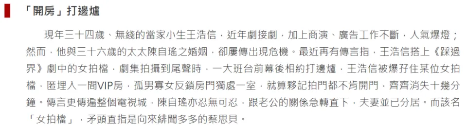 22日,陈自瑶疑似仳离的消息被港媒争相报道。 原来,克日,陈自瑶在交际平台上发布了视频,开心地表现:“等了三年末于通关啦,本日我要带各人沉醉式体验港剧打卡地。” 视频中的她活力十足,带着网友走过多个港剧取景地点并逐一先容,非常可爱。 不少网友都由于园地不由得遐想到港剧的经典镜头,不外有网友在视频下留言问道:“只想问,只身了?” 没想到,陈自瑶竟然亲身点赞该留言。 固然她并没有回复网友的标题,但点赞一事却让不少人推测是不是在默认已经与王浩信仳离了。 提及来,陈自瑶与王浩信的婚变听说由来已久,夫妻已同床异梦多年。 陈自瑶与王浩信曾同属港娱“小透明”,然后逐步成为人气小生和小花。 陈自瑶也算是网红鼻祖,19岁在“Cyber Girl”推选中得到冠军。 当年的“微软玉人变乱”还开创了人肉搜刮的先例。 因由是有人把陈自瑶的照片发到网上,并吹捧其是本身的女朋侪,似信非信的网友睁开搜刮,发现她的真实身份实在是微软中国区的代言人,自此陈自瑶算是小火一把。只不外当时的网络还不像现在如许发达,陈自瑶没能乘着互联网的东风腾飞,但也算小闻名气的广告模特。 王浩信在采访时曾透露在初中时期便对已经是广告模特的陈自瑶有好感,直言追到她是一件很幸福的事,开心到炸开鱼尾纹。 两人从公布恋情到完婚,都是甜蜜无比,粉红泡泡隔着屏幕钻出来。 2011年11月11日上午11时与陈自瑶完婚,更加公开答应以后收入会全部上缴给陈自瑶,爱她一生一世。 王子公主甜蜜的背后,却是婚前几天,王浩信被拍到驾车前去将军澳亲身接送谢芷蕙回家,两个人在家中幽会五个小时,划一下重点,谢芷蕙脱离的时间发尾照旧湿湿的…… 当时王浩信的表明是一大群朋侪一起集会,而准老婆陈自瑶照旧很信赖丈夫的,完婚前一天,还在忙着为丈夫表明,力撑他。 这之后王浩信乖了很长一段时间,也由于爱家好夫君的人设得到TVB的喜欢,古迹越来越好。 究竟上,除了谢芷蕙,王浩信还和黄心颖、江嘉敏等人都传出过绯闻,堪称TVB男明星发电机,固然绯闻多多,但陈自瑶都是与他甜蜜合体破婚变听说,直到王浩信与蔡思贝听说的传出。 早在2017年两人互助《踩过界》时,就被剧组职员爆料在片场过往甚密。更有传二人甩下工作职员独自“开F”打边炉,而且反锁着门,服务员打门也没人应,10多分钟后才尴尬地从内里出来。 2017年9月,王浩信还被拍到深夜驾驶爱车出现在蔡思贝所住单元,逗留了2小时才脱离。对此,王浩信的表明是停泊于此处是由于工作,并不知道蔡思贝住在那里。 2018年TVB颁奖仪式,王浩信凭《踩过界1》得到视帝,听说蔡思贝原来在配景担当采访,听到之后直接拒绝采访飞奔到台前,不绝望着王浩信,被记者讽刺是望夫石。 不外现场现实隔断实在蛮长的,不扫除港媒编故事,只不外确实是个蛮出圈的名局面。 这些事,也让蔡思贝遭到了网友的怒骂。蔡思贝在江美仪的采访中,她委曲说出本身人前是风光女主角,人后实在只是一个睡200平方呎房子,双层床的小可怜,却还要被媒体误解。 说到动情处时蔡思贝不由得哭了,说本身不绝以来就算被误解,都没澄清过这些事,只专注工作。 江美仪和观众一样问号脸,不由得反问,那么为什么有些事你本身不避讳一下?省得别人把它无穷放大呢? 除此之外,王浩信善于画饼,兑现却遥遥无期。他曾大方表现要买房给老婆,“有一个大件,就是买楼送给她,她喜欢独立屋,我会积极工作夺取本年完成。” 到头来,楼是买了,名字是本身的……那当初就别说送呀。 2021年1月,TVB举行了颁奖仪式,王浩信得到视帝后,对着镜头开腔感谢老婆陈自瑶YoYo,他表现感谢太太悉心照顾女儿。 令人尴尬的是镜头现在转向台下的陈自瑶,却发现女方听完感谢语言面无心情,一脸淡漠,耐人寻味。 固然陈自瑶过后辟谣那天本身发呆分心了,以是才这个样子,但智慧的网友都不买账,一片热议。 2021年11月,TVB举行台庆,还心机地安排已婚人夫王浩信和绯闻圈外人蔡思贝挽手走红毯,而陈自瑶也有出席,只不外玉人独自漂亮。蔡思贝还由于心情,再度遭到了网友的吐槽。 客岁8月,陈自瑶与王浩信再传婚变,某八卦周刊率先登载王浩信与陈自瑶情变,仳离后将共同抚养10岁女儿的消息,紧接着老东家TVB也转载了这条消息,直接引发网友热议。 结果两人又出头回应:统统安好,并无此事。 现在,陈自瑶又由于点赞引发了婚变听说。 变乱出来后,两边都没有回应此事,陈自瑶本来22日下战书会出席运动,也由于工作延误缺席。 不知道这次,两人又会怎样回应呢? |