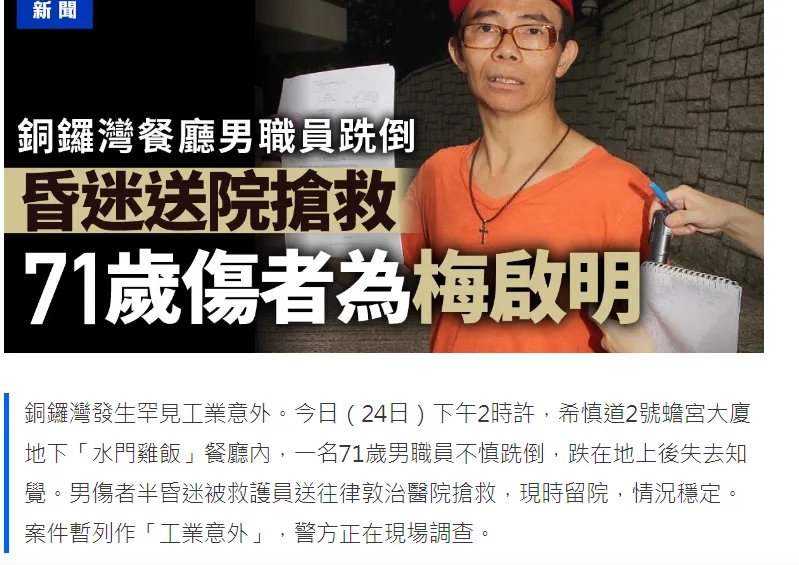 3月24日,港媒消息指梅艳芳的大哥梅启明在铜锣湾一家餐厅内不慎跌倒,出现半昏迷状态,送往医院接济。 有港媒致电梅妈查询情况,一名秘密女子接电话,她复兴媒体,“梅妈唔得闲(没有空)。” 至于被指受伤的梅启明,至截稿前都没有接听记者电话。 报道称,3月24日下战书约莫两点多,71岁的梅启明在铜锣湾希慎道蟾宫大厦餐厅“水门鸡饭”工作,当时他的岗位是“厨房男工”,疑似因路滑在厨房跌倒,头部直继承到撞击,其同事立即报警。 救护车加入后,将梅启明送到律敦治医院接济。 据悉,梅启明被送往医院时,情况略严峻,已经进入半昏迷状态,但呼吸跟脉搏正常,送到医院颠末治疗后,他已经规复苏醒,如今留院观察。 有记者到“水门鸡饭”餐厅相识,东家被问及伤者是否梅启明时,只表现不予置评。 有职员确认餐厅一名厨房工人在工作时发生意业务外。 餐厅一度由于不测须要停息业务,不外薄暮6点多警方完成观察后,已重新开门。 另一家港媒接洽上梅妈,她没有多说什么,只表现自己已经知道儿子受伤的消息。 客岁9月,梅妈登报与儿子梅启明脱离母子关系,并透露梅启明有婚外情,同时欠下债务,令梅妈无法再忍受,与其划清界限,拒绝与梅启明见面。 在梅妈翻脸之前,梅启明不绝与母亲同住,并每月跟梅妈领零费钱过活。 梅妈不绝以为梅启明拿钱是为了养活妻儿,不意港媒检举梅启明“包二奶”,妻儿没钱留在香港生存,唯有返回女方故乡马来西亚,投奔外家。 据梅启明太太透露,梅启明没钱花,连儿子的医保都不放过,导致孩子抱病没钱看大夫。 梅妈得知本相,愤怒与儿子“割席”,将梅启明赶出家门,秘密搬到新家,不再与梅启明接洽。 梅启明无计可施,控告侄儿梅柏麟滥用梅妈每月25万港元的米饭钱,又怒斥梅妈的私家关照“郑姑娘”羁系梅妈。 当时,他开记者会,透露已入禀高等法院向梅柏麟跟郑姑娘索赔合共800万港元。 梅启明还声称,身在马来西亚的儿子患癌要向梅妈乞贷医病。 至于梅启明的13岁儿子则否认患癌,但他确实身材不适,他对父亲感到绝望,继承媒体采访,直指父亲谎话连篇,他曾多次致电对方,但都没人接听。 梅启明积极问梅妈拿钱,自称是为了给儿子治病,但却连儿子的电话都不接听,他拿钱是为了做什么,目的很明确了吧? 梅妈育有两子两女,除了梅启明之外,别的子女都因癌症离世。 梅艳芳离世后,梅妈在梅启明的伴随下长期打官司,诉求是一次性提取梅艳芳的遗产,痛惜每次都以失败告终。 梅妈每次打完官司,法官都答应她增长每个月的米饭钱,从当初的7万港元渐渐进步到如今的25万港元。 而梅启明重要靠梅妈的米饭钱生存,他多次对媒体表现,自己有打工,外界不绝不信任,这次他终于用现实办法证实自己没有撒谎。 |