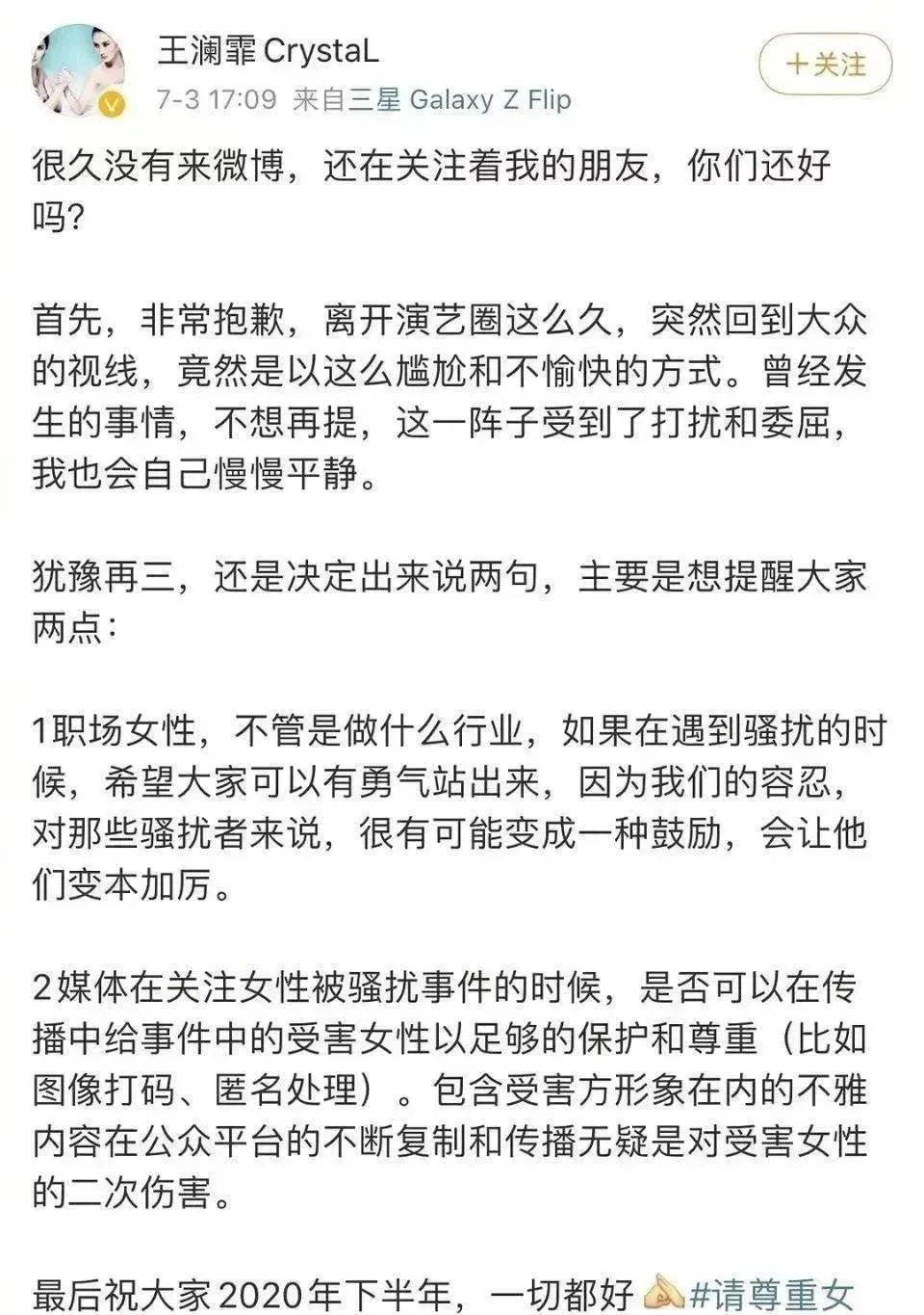 克日,黄宗泽出席了一场开幕活动,他身穿淡色西装,玄色长裤,装扮得非常简约。一同出席的另有胡定欣、罗霖等明星,胡定欣身穿玄色V领紧身长裙,腰部的亮片筹划让她的腰肢凸显,大秀好身材的她非常引人注目。 面临她的穿着,黄宗泽口无遮拦,当着媒体的面说:“衣服低到如许好想看,关系熟才气如许看。”然后竟然还笑着就地低头去看胡定欣的胸口,让人感到非常不适。 胡定欣固然笑着回应本身没什么可看的,但她一只手伸出显着想要遮挡黄宗泽的视线。黄宗泽的举动无疑让她陷入了尴尬的地步,但是碍于公众场所也欠好发作。 实在当日黄宗泽拿她的衣着开了不止这一次打趣,他和媒体分享本身的餐厅即将完成装修,胡定欣便挺身而出当他餐厅的开业高朋。于是黄宗泽立即扣问她是否还是如许的妆扮,并声称价格给得越高她的胸口开得越低,想要寻衅胡定欣的底线。 而在之后谈到本身的新剧时,又表现如果收视率高就和胡定欣穿得一样低,连续好频频的这种低俗打趣,恐怕只有他本身乐在此中吧。 现实上,在娱乐圈中,像黄宗泽如许男明星不在少数,他们要么在言语上口无遮拦,要么在举动举止上借机揩油,将本身的恶臭显现得极尽形貌。 前段时间靠着《狂飙》热度飙升的“高启盛”苏小玎可谓是大起大落,他仅仅用了一个多月的时间,就将本身的路因缘败光了。 除了乱接代言、争名夺利,很大一部门缘故起因就是他讲污段子,太不恭敬女性了。《狂飙》副角们为了宣传齐聚直播间,苏小玎让各人先容一下本身是剧中的什么继承。 “高启兰”的饰演者隆妮直言本身是剧中的“知识继承”,就是这么简朴的一句话,却让苏小玎找到了开黄腔的突破口,他专门加重了读音扣问“知识还是姿势”,这话一出,让在场的男演员都笑了起来,还是林家川打了圆场才缓解了隆妮的尴尬。 这场直播事后,许多观众对他的感观直线降落,以为他如许的打趣并欠可笑,反而表现出他的低俗。 娱乐圈男星的低俗早就不是一天两天的事变了,之前说唱歌手姜云升与鞠婧祎梦幻联动,两人互助歌曲举行宣传,但是姜云升的粉丝对鞠婧祎非常不满想要反抗,姜云升还主动为鞠婧祎语言,让网友纷纷夸赞他有格局。 不意这边才夸完,那里就被扒出姜云升三年前在直播间内“口嗨”,直接点出了鞠婧祎的名字,而且说的话露骨得难以入耳,对女生的恶意极大,这种毫无底线的发言真的非常欺侮人。 这一言论被扒出后,许多网友都以为他很下头,但是另有部门粉丝没有原则地维护姜云升,表明说他只是开个打趣而已。但是这种发言根本就不是打趣,而是心田深处对女性的不恭敬。 随后姜云升也发布了致歉,认可了本身的错误,但他夸大这是说唱圈早期的游戏,本身本身是没有恶意的。但是就算是再早期,作为一个具有理智的成年人,可以大概说出如许的话,还是由于本身本身的素质修养就根本不外关。 娱乐圈另有一些男明星已经不满意于低俗的发言,直接开始上手,来乘隙占自制。郑元畅依附着《恶作剧之吻》中的江直树成为各人的童年男神,但是他本人与江直树可差了太多。 他在《我是女演员》的综艺节目中继承导师,但是他根本不管学员的本领,在综艺上像选妃一样,瞥见一个悦目标就想要,还美其名曰有眼缘。 而在为学员们上课时,在这么多的经典片断中,他专门挑选了《还珠格格》里皇上欺压香妃的桥段。于是他将女演员压在本身的身下一通乱摸,还想要把女演员的脸掰正强吻,而且还将这个片断反复演练了好频频。 演完后,郑元畅还一本端庄地表明这些身材打仗仅限于演出,让作为新人的女演员有苦说不出。 在观众看来,他的举动对女生非常不恭敬,借着演戏就为所欲为,放开了动作尺度。 在演戏类综艺之外,从前的爱情综艺红极一时,明星也去掺了一脚,构成CP让观众嗑生嗑死。李沁和魏大勋就在《我们相爱吧》中搭档,但是魏大勋的举动着实让人下头了。 李沁在节目组的安排下穿上了泳衣,但在表面穿上了一件防晒衣。看到这个场景的魏大勋聚精会神地盯着李沁,李沁为了制止尴尬,还专门用手举行遮挡。 而在去往泳池的路上,魏大勋非常不老实,竟然直接伸手去掀李沁的衣服,幸好李沁反应灵敏才躲开了他的骚扰。 在泳池之中,原来应该是唯美的局面,但是魏大勋伸出了舌头油腻地舔着嘴角,那样的男性凝视,对李沁无疑是一种不恭敬的表现。 除了综艺节目,有的演员更将这种不恭敬女性的举动,搬到了影戏发布会。喻恩泰依附着《武林外传》的“秀才”吕轻侯而爆红,看起来是老实人的他但是一点都不老实。 在2020年,他在影戏《李可乐寻人记》的发布会上对女演员动手动脚,他先是揽住女演员的手臂,然后将头埋在了她的肩膀上。 厥后乃至将脸贴在女演员的腰部,双手揽着女演员的双腿,女演员只能尴尬地笑笑。 固然导演表现这是由于喻恩泰有些拘束,综艺感不太好,但是女演员王澜霏直接发文称盼望各人在面临骚扰时可以大概大胆地站出来。 如许揩油的举动归为他太过拘束着实是有些牵强了,而且网友们还扒出他也在节目中紧贴着应采儿的身材抖动,把应采儿都吓得躲到汪涵的反面,并直言“这里不是夜总会”。 显着看起来一表人才,却做出如许恶臭的举动,隔着屏幕都能感受到喻恩泰对女性的不恭敬。 不管公众人物,还是平常人,作为一个成年人都应该懂得分寸,知道什么是打趣,什么是