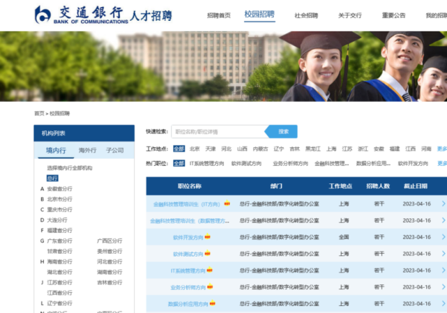 见习记者 马嘉昕 “金三银四”雇用旺季到临,多家银行也开启了“抢人大战”!据注意,现在包罗工商银行、交通银行等六大国有银行,以及多家股份制银行及热门城农商行均已连续披露了雇用公告。 团体来看,本年雇用规模颇为阵容浩荡,不少银行携其旗下子公司或参股企业加入雇用,并表现对雇用生源应往届不限。而从岗位偏好来看,金融科技类人才仍然是银行的“心头好”。 国有大行无一缺席雇用季 2023年银行雇用已在风起云涌举行。据《中国基金报》记者梳剃头现,现在,六大国有银行广泛已在天下范围内开启雇用筹划,同时不少股份制银行总行及其分支机构也在积极抢人。 具体来看,作为“宇宙行”的工商银行在近期披露的干系雇用公告中表现,本年“春招”该行雇用机构包罗33家一级(直属)分行、9家直属机构及1家综合化子公司(工银科技)。 建立银行也在本年雇用筹划中称,将筹划拟雇用超4400人,22-23届结业生均可报名。同时,不限专业,并发起是信息技能、数理统计、管理学等干系专业报名时备注,会给予加分。 同时,从股份行队伍来看,也表现出积极动向。据记者大抵统计,包罗兴业银行、招商银行、中原银行、浙商银行等8家股份制银行均开启招人筹划,此中6家股份制银行面向天下范围内吸纳人才,以致如民生银行还积极拓展境外业务,该行香港地区也在积极作育吸纳人才。 只管兴业银行并未面向天下范畴开展春招,但2023年度该行雇用筹划为,面向总行、汕头、烟台及西安地区举行雇用,重要发布岗位为运营支持岗、管理培训生、市场营销类等。 别的,撤除广泛备受雇用学子们瞩目青睐的大型银行外,本年不少中小银行及热门城农商行也打着“钱多事少离家近”的标语纷纷不甘示弱的向其抛出“橄榄枝”。据注意,比方南京银行、九江银行、上海农商行、杭州银行、江苏银行等均积极披露其2023年“春招”筹划。 综合来看,本年银行业广泛为社会将提供超3万的就业岗位,同时不少银行也思量到2022年的疫情况势,对就业生源要求举行肯定的放宽,广泛在雇用要求上纳含2022届结业生。 在雇用情势上,部门银行撤除前去在前程无忧、官方微信等发布雇用信息外,另有银行采取视频直播的情势更好的向学子先容信息,同时,不少银行员工也积极发朋侪圈共同公司抢人。 金融科技人才还是“香饽饽 而从本年雇用趋势来看,毫无破例的,金融科技人才仍然是银行们的“心头好”,多家银行围绕着金融科技类岗位开启了专项雇用。 记者注意到,比方,交通银行推出“数字化新交行,‘职’等你来”的宣传语,总行及省直分行重点雇用专业为软件开发、数据分析、金融工程、智能科技、电子信息等金融科技人才。 邮储银行也推着名为“加油,科技大行家”的2023年信息科技雇用,为总行的信息科技管理部、金融科技创新部、数据管理部、软件研发中心、数据中心招揽专业人才。 从股份制银行到城农商行,在雇用的岗位需求中,团体上广泛均包罗了对金融科技人才的需求。以致,招商银行全资子公司招银网络科技在近期的2023年校招中,还重点雇用软件开发工程师、算法工程师、智能运维研发工程师、测试开发工程师等。 同时,比方顺德农商行、哈尔滨银行、北京农商行等多家中小银行也纷纷睁开围绕金融科技专项岗位的雇用,比方北京农商行开展了“青鸾科技岗”、顺德农商行在总行设有数字科技定向生、哈尔滨银行开设了金融科技工程师/专业精英等,并致力于加大对此类人才的作育。 “银行自身有数字化转型需求,以是对科技类和复合型人才有较大需求,尤其是数字化转型方向的人才,懂数字技能也懂金融的人才比力稀缺。”浙江大学国际团结商学院数字经济与金融创新研究中心联席主任、研究员盘和林对《中国基金报》记者表现。 别的,易观分析金融行业高级咨询顾问苏筱芮也以为,银行机构春季校招中对于金融科技类人才的茂盛需求重要大概为以下几方面缘故因由: 一是随着金融数字化转型历程不停深化,科技赋能的作用连续提拔,在银行发展的战略职位上日益得到器重,二是比年来“科技”外包的方式出现了部门“水土不平”的情况,以致引发了部门银行业务风险,因此存在夯实自身科技队伍的须要性,三是科技驱动的金融业务服从提拔及产物、服务的优化创新,是衡量当前银行竞争力的焦点维度,背后离不开人才建立。 零售转型基因深入雇用 除此之外,在2023年银行的“春招”中,银行业积极朝向零售业务转型的“身影”也无处不在,零售科技类人才也成为本年雇用的重点,不少银行在总行、分行层面加大此岗位设置。 比方,2023年,交通银行总行社会雇用就涉及零售信贷业务部。据雇用信息表现,该业务部重要雇用金融科技岗,方向为数据分析,负责零售信贷产物方案及体系建立管理、产物运维和迭代优化和运营指标监控及分析、数据管理、数据分析等。 招商银行也在本年校招中面向上海、济南、重庆、深圳及昆明等多地重点雇用零售业务岗、零售金融市场岗、产业管理作育生等多个干系岗位。 别的,作为零售业务的告急构成部门,2023年银行名誉卡中心同样面临着大量人才雇用需求。以中信银运动例,该行名誉卡中心大数据中心、信息技能部、运营管理部等部门均有雇用需求,此中大数据中心的雇用岗位涉及数据发掘、大数据平台架构、大数据