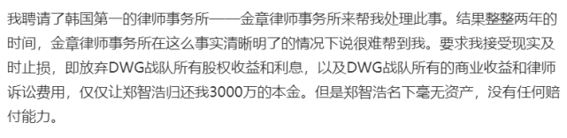 在战队最困难的时间负担运营费用,效果在战队夺得S冠的时间被踢出大门,这究竟是不是好汉同盟职业史上迄今为止的“最大冤案”? 各人好,这里是锦城,我们本日来聊一聊DK战队的中国老板被韩国署理人骗走股份这一件事。 不知道各人还记不记得S10天下赛冠军DWG在夺冠的时间被曝出是史上最穷的冠军战队,基地情况大略,没有病愈师,没有营养师和煮饭阿姨,更没有营销,日子可以说是相当的淳厚。 5位主力选手乃至睡在一间房内里,内里只有两张上下铺,身高最高的Nuguri只能在中心的地板上打地铺睡。DWG战队原来的投资方确实不是什么大老板,而且尚有资金压力,于是就钻营出售战队。 这个时间就有人引荐了中国买家,PDD也在直播内里说过自己当时思量过要不要买DK,但末了照旧被一位中国朋侪买下了。那么到底是哪位中国老板买下了DK呢?看看DK在S10天下赛的队服就可以知晓答案,上面印着的Blue Sky就是这位中国老板的名字——兰天。兰天是一位热爱好汉同盟和赛事的玩家,他渴望将爱好和工作团结,于是想做一支战队。在竞标LPL名额败北的情况下,兰天将目的转向LCK,在2019年乐成以三千多万人民币的代价全资收购 了当时还不是冠军的DWG战队,还赠予了10%的股份给在中心搭桥牵线的韩国合资人。 厥后由于韩国合资人表现韩国拳头不喜欢中国资源投资的战队,以是兰天出于对俱乐部发展的思量,同意了让韩国合资人代持股份,由于LCK那里肯定不喜欢中资的战队,中国老板请一位韩国署理人来代持韩国战队也没题目,但是没想到这就是战队被骗走的开端,这位韩国署理人在未经兰天允许的情况下擅自出售战队股份,效果战队被DWG原老板和新的韩国投资方瓜分了。 比及兰天发现的时间肯定是想追回财产,没想到此时全部韩国人都翻脸不认账,声称自己完全不认识兰天,还表现兰天是由于DWG夺冠而上门碰瓷的中国人。就连DK官方都发布了公告称战队投资人里没有中国人。也就是说兰天在DWG最困难的时间负担运营费用,效果在DWG夺冠的时间被踢出战队,这谁能忍? 以是兰天开始使用法律本领。实在一开始兰天是不想曝光这件事的,由于会影响到DK战队的荣誉,但是没想到纵然约请了韩国第一的状师事件所,两年已往告状渴望照旧很慢,乃至状师发起他担当现实及时止损,放弃全部收益,能追回三万万本金就不错了。以是兰天只能曝光这件事寻求舆论的资助。 在我印象里这已经是这件事的第三次曝光了,第一次是翼风的披露,第二次是人民电竞的文章,第三次兰天亲身了局,他已经不对韩国状师和拳头的韩国分公司抱有渴望了,这次是哀求好汉同盟官方和拳头官方参与观察,他乐意提供全部的证据共同。 固然法院大概拳头官方都没有下终极的裁定,我们不能笃定兰天就是DWG真正的老板,统统都存在反转的大概。但是冲他云云积极地维权,晒出的种种证据,主动哀求拳头官方参与来看,真金不怕火炼,我乐意信赖他的报告。这件好汉同盟职业史上迄今为止的“最大冤案”后续究竟会往怎样的方向发展?兰天能不能顺遂接回战队股份,照旧说像韩国状师发起的那样仅仅能追回三万万本金,亦大概是令媛散尽终极为DWG做了嫁衣?统统都只能看后续的发展,我也会继续关注这件事,如果想看后续可以点个关注不迷路! |