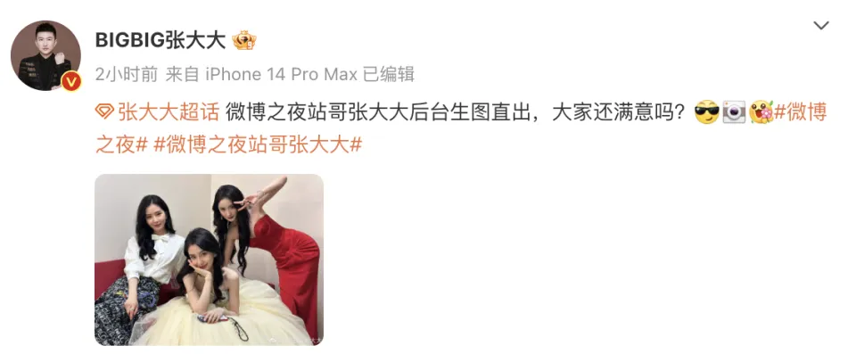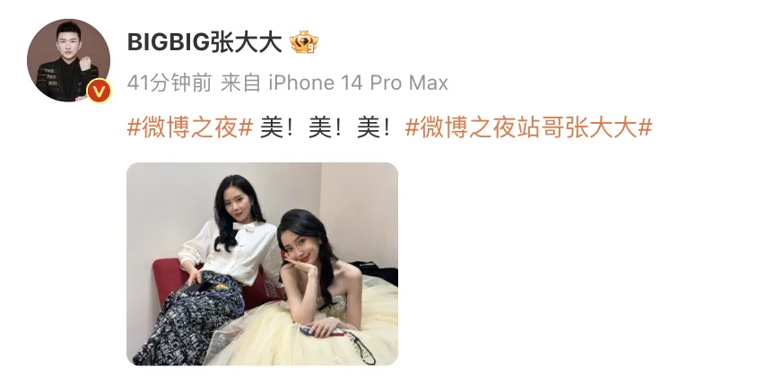 3月25日晚,微博之夜搜集了浩繁明星,去的大部门都拿奖了,但张大大并没有,他应该是给杨幂和Angelababy照相去的。 当晚,杨幂baby刘诗诗和佟丽娅得到了微博年度质感演员奖,几人在台上领奖,而且被主持人要求留下拿着物品走秀,张大大则在台下化身站哥为闺蜜们拍视频。 期间,主持人看到张大大这么热情,于是就把张大大也请上了台,和四位85花合影。 厥后晚会竣过后,张大大发文体现渴望来岁能带着自己的IP节目登台,可见张大大真的很想拿奖,态度非常朴拙,发起贵平台到时间给张大大单独设立一个奖项吧。 3月26日,在粉丝们的敦促下,张大大晒出来自己在台下闺蜜们的直拍视频,自称来交作业了。 杨幂身穿一袭红裙,手持土味十足的假花,走路时扭动着腰肢,婀娜多姿风情万种。 随后他又晒出了baby,杨颖犹如人间精灵,挥动着翅膀,光彩照人。 末了他晒出了刘诗诗,还自嘲和她手里的狗狗撞衫了,刘诗诗非常自负,俨然一副都市女郎的时尚容貌,非常养眼。 张大大还分享了背景照,并透露是生图直出。 张大大说的应该是真的,由于每个人都显现出了真实的肤色,而不是白到发光,但即便是没有滤镜肌肤也是零瑕疵。 Angelababy身穿一字纱裙,坐在凳子上,手托着下巴卖萌。 刘诗诗坐在沙发上,当晚她并没有穿制服,主打的是惬意,非常端庄淑女,非常养眼。 杨幂则弯腰出镜,她对着镜头比铰剪手,身材都快成直角了,这良好的胯能借我靠靠吗? 张大大每隔几非常钟更新一则动态,随后又分享了Angelababy与刘诗诗的合影,直呼“美美美”,叨教你是我的互联网嘴替吗? 不外这张图和上图险些是大同小异,只是杨幂没有出镜。 张大大晒视频的时间,先晒杨幂,再晒Angelababy,末了晒刘诗诗,这个次序大概能很好地阐明各人在张大大心目中的职位。 众所周知,张大大和杨幂杨颖私情甚笃,三人另有自己的专属群,无话不谈,通常里聚会会议也是常有的事变。 不外张大大确实是和杨幂走得比力近,毕竟两人经常被拍到过一起逛街,张大大也经常会分享二人的出游照,乃至挽动手臂大概依靠在肩膀上,举止密切,不知道的人还以为二人在爱情呢! 但是张大大和刘诗诗互动就比力少了,估计以后会多起来吧。 此次刘诗诗杨幂都坐在了胡歌的旁边,让人回想起《仙剑3》,如许的世纪同框各人且看且爱惜! |