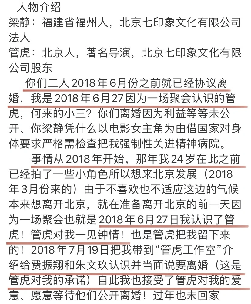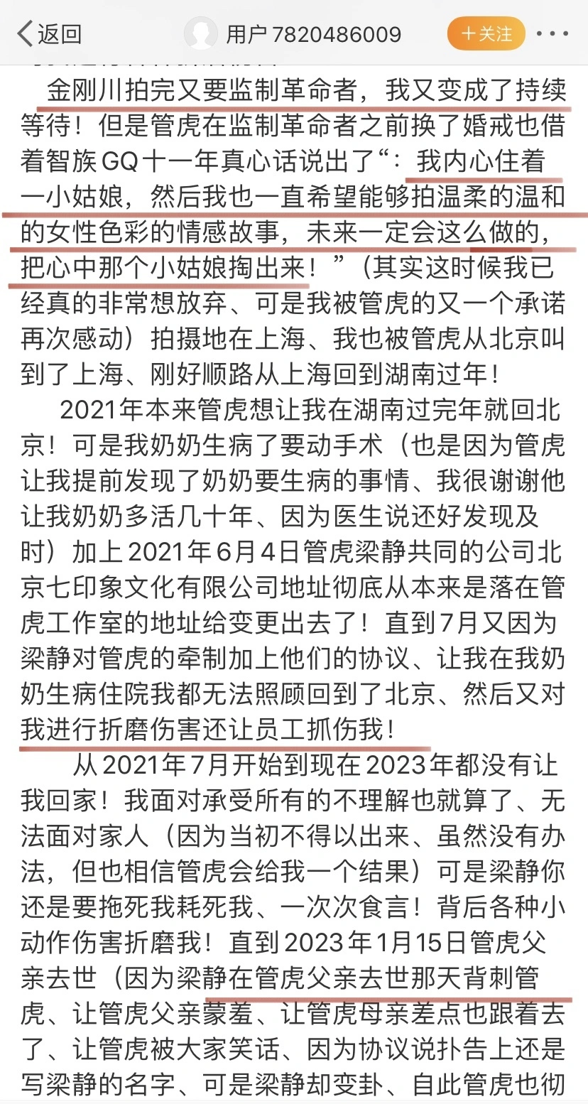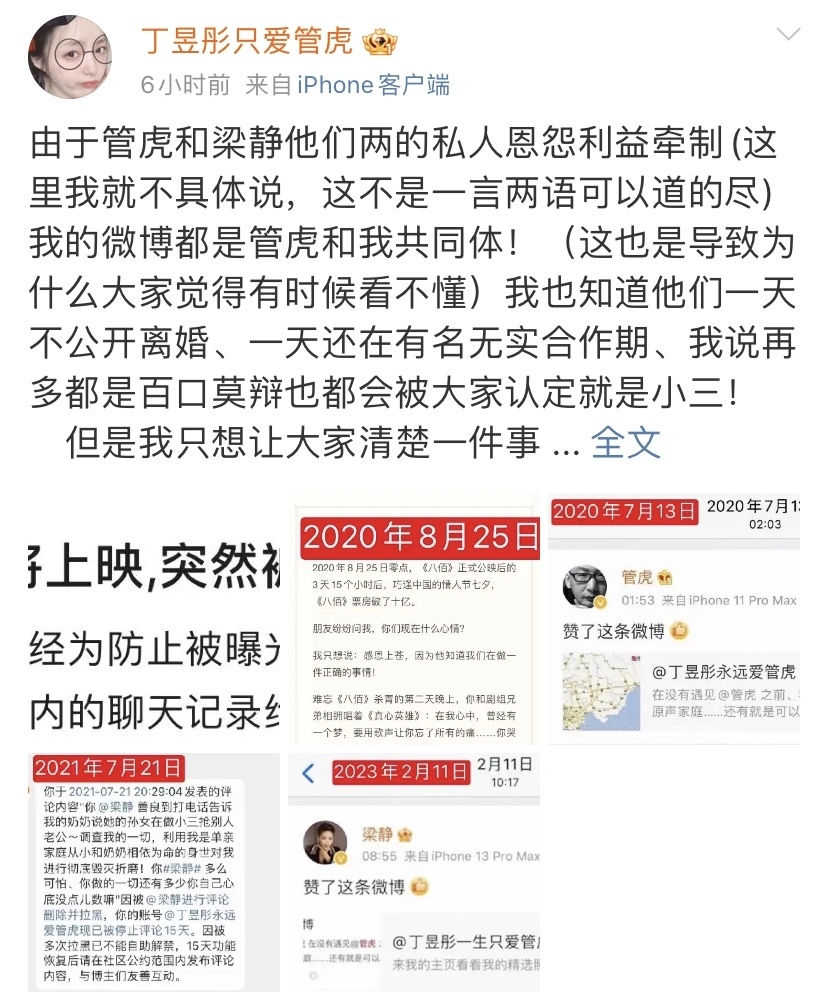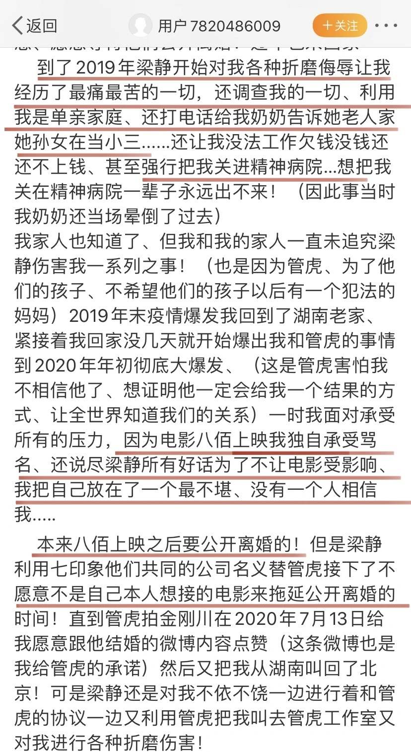 有关管虎和梁静婚变一事闹得沸沸扬扬。 因由是演员丁昱彤连续在网上喊话管虎、梁静,让他们官宣仳离的事变,丁昱彤即便被封号也不依不饶,开了新号接着喊话。 仅3月25日一天,丁昱彤就连发数文,艾特管虎,对其表明,并称会在存案之前官宣仳离的消息,表现信任他末了一次。 这里的存案指的是女方状告梁静逼迫将关进精神病院一事,丁昱彤在3月17日已经报警了,但是存案须要时间。 丁昱彤连续在网上喊话,但是管虎和梁静不停没有回应过,本以为丁昱彤是在唱独角戏,但是发现事变并不简朴,管虎和梁静之间简直出了标题。 昨天是微博之夜,身为导演的管虎和老婆梁静也现身现场了,但是夫妻之间的反面从走红毯环节都表现出来了。 管虎刚一上红毯立定之后,就把挨着梁静的那只手背在了死后,导致想要挽手的梁静好尴尬,梁静机敏应变,用挽袖子的动作粉饰了她的无奈和尴尬。 两夫妻同台,管虎不但不牵她的手了,连挽手机遇都没有,红毯过程中梁静好频频想挽着管虎胳膊,但是管虎却始终刻意把手背在背面,就是不给挽。 管虎真是一点面子都不给梁静。 到了内场之后,管虎也是手机不离手,看上去不以为意。 丁昱彤还发文称管虎很累,信任他。 身边的梁静拍视频的时间把镜头给到了管虎,想给管虎拍个照片,但是管虎不但不共同,更是一脸嫌弃,还直接瞪了梁静一眼。 除了昨天的运动中两夫妻冷脸不互动之外,在3月15日英皇举行的运动中仍旧云云。 其时,管虎和众星合影的时间挽动手,黑着脸,心情非常不好,也反面身边的梁静互动,两人就像是互不相识的生疏人一样。 种种迹象表明,梁静和管虎婚姻真的出了大标题,看上去非常反常,要知道管虎和梁静之前加入运动的时间都是笑眯眯的,夫妻俩感情很好,而梁静很爱老公管虎,曾直言:我可以为他死。 恩爱夫妻酿成如许,肯定是不正常的。岂非真如丁昱彤所说的两人早已在2018年就协议仳离了? 此前丁昱彤发布了千字长文控诉梁静折磨侮辱本身,以致被送进精神病院,而且表现管虎和梁静早已感情反面,两人在2018年就协议仳离,但是其时恰逢《八佰》上映,丁昱彤选择了相安无事。 丁昱彤不停在等管虎仳离,而且坚称本身不是小三,和管虎是真爱,管虎梁静之间已经没有爱情了。 3月26日,丁昱彤再次发出长文控诉梁静六点内容。 与此同时,丁昱彤还晒出了本身所说的点赞截图,被梁静投诉的截图,尚有梁静的点赞内容,可以说是信息量很大。 此中丁昱彤表现两人仳离了但是不许公开,梁静擅自接活给管虎做,还称这些事变很太过。 其次丁昱彤表现原来管虎要官宣她,但是由于影戏《八佰》上映临时断送了她。 别的,管虎在2021年7月管虎还点赞了她的微博。 之前丁昱彤还晒出了本身和管虎的的谈天内容,管虎对丁昱彤是自动关心,只是时间在2018年,也就是丁昱彤所说的二人相识时间。 紧接着,丁昱彤控诉梁静这些年对她的伤害不停都有纪录,2023年被逼迫关进精神病院,有医院的证实。 在上一次的千字长文控诉中,丁昱彤详细形貌了这六年的时间里怎样被梁静折磨侮辱,被助理打耳光,以致告知她奶奶做小三,被送进精神病院等干系事件。 末了,丁昱彤表现如果本身真的是小三,为什么没有拍过管虎一部戏?没有收过他一分钱?为什么还要在风口浪尖上岑寂蒙受全部。 丁昱彤的喊话是在说他们是真爱,否认本身是小三,不停在等管虎官宣。 丁昱彤从几年前就开始喊话,到现在账号都被换了三个了,但是管虎仍旧没有回应她。 不外从近来两次运动中的表现来看,管虎和梁静之间没有变数是不大概的,只是丁昱彤到底是什么身份,还得管虎来官宣才行,她到底是不停在唱独角戏,照旧两人真的是真爱,我们坐等后续更新。 【发展路上,感谢关注】 |