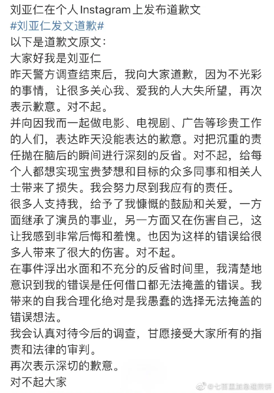 韩国男星刘亚仁涉嫌吸毒风波历经几个月终于有了动静,在继续完首轮观察后,他当众鞠躬致歉翻车,被韩网炮轰虚张阵容。3月28日,刘亚仁又在交际平台上发布长文致歉信,就不光彩的事变向全部人性歉。 刘亚仁还特别向一起做影戏、电视剧、广告的相干人士致歉,指出前一天未能转达的谢罪之心,表现会反省也会竭尽努力去负责,任何捏词都无法粉饰错误,以后会老实继续观察,继续各人的斥责和法律审判。 韩国网友看到这封致歉信仍然不买账,以为刘亚仁这封迟来的致歉信是由于前一天的致歉反应不佳,以是不得不做一些事变来找补。韩国网友不继续他的致歉,也以为他不须要致歉,只渴望他能认真继续治疗,负起法律责任,赔偿制作单位丧失,不要再虚张阵容,最好直接退休。 看完致歉信,再来看看刘亚仁前一天的视频致歉。在媒体采访中,他初次在镜头前亲口致歉,用颤动的声音表现:我陷入了我的个人活动不会对任何人有害的自我公道化,很歉仄我没能及时表态,各人看到如许的我大概感到不太舒服。但我乐意将此时现在当作以后能活出更康健人生的机遇。 从刘亚仁的心情和眼神中,看不到任何后悔及遗憾,只有麻痹和无所谓。固然嘴巴里在致歉,但是大概只是遗憾“被发现了”。 韩国网友看后直接吐槽他话都说不清楚,颠三倒四,又长又没有重点,斥责岂非药还没有醒,发明白一种“肉体脱离的语言方法”,口碑翻车。而且,有韩国网友以为刘亚仁整个姿态就是一副“义正辞严”,仿佛在演电视剧念台词,演出陈迹很重。 从韩媒放出高清大图中,也可以看出刘亚仁涉毒风波后的初次露面状态非常差,面貌面貌干瘪不说, 眼神呆滞无光,气色非常差,另有网友发现他跟已往看起来要胖一点,脸变圆了。 刘亚仁涉毒观察案查了几个月,风评也是随着观察深入程度不停下跌。早先,韩国网友以为刘亚仁依附人脉可以再爬起来,但是,当刘亚仁涉嫌服用异丙酚等4种毒品消息曝光,震惊全网,网友以为警员找到他对他是救命之恩。同时,给刘亚仁开处方药物的医生也涉嫌注射毒品被抓捕,整个风波直接波及了其他韩国艺人,严峻程度非同一样平常。 在警方的观察中,刘亚仁吸毒证据资料网络量多达10000张,包罗毛发及尿检效果、个人手机信息、医院就诊记载及住所等。现在,刘亚仁继续了第一轮传唤观察,整起观察将连续两个月,届时将会找到治罪证据。 对刘亚仁来说这统统自毁前程,犯下弥天大错,对不起粉丝,对不起互助方。现在,名气、颜值、口碑全部崩盘,也是咎由自取。犯罪没有痛恨药,成年人必须为本身的活动付出代价,渴望刘亚仁可以或许改过自新,认清本身,重新做人。 本文未经授权严禁转载违者必究! |