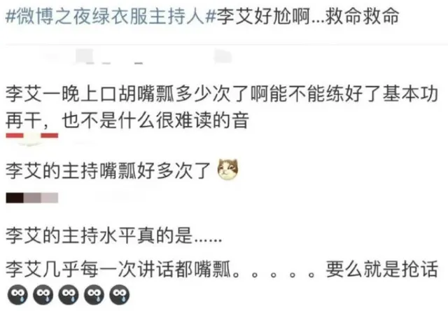微博之夜年年都会有主持人大型抓马名局面,本年也不例外,全程眯眯眼的李艾就被群嘲了,不外不是由于她那睁不开的眼睛,而是她的主持功底太短缺了。 李艾已经不是第一次主持微博之夜了,但这次却是大型翻车现场,先是在致敬冰雪活动后完全忘词,只能告急尼格买提,接着越说错的越多,仿佛朱丹附体。 将“航天”说成“航空”,电视剧《与君初相识》说成“与君初相死”,“好似故人归”的“故”说成“古”,颁奖环节还将“于文文”念成“云文文”。 不但念错词,反复抢尼格买提的词,情商也非常让人发急,面临资深老戏骨惠英红,李艾竟然直接喊起了“哎哎哎”,生生把惠英红扒拉上台。 张艺谋颁完奖后,李艾让他下去苏息,幸好尼格买提有眼力,请张艺谋奉上祝福,才得已走完流程。 杨幂和杨颖、刘诗诗好不容脱离了尴尬的走秀,临下台时李艾忽然cue到了两人之前撞衫的事,真的是别提有多尴尬了。 另一位上海卫视的主持人司雯嘉同样情商堪忧,被网友吐槽全程盯着提词器就算了,在中场采访潘粤明时,人家刚说了几句话,她就转身去采访旁边的女明星了,旁边的潘粤明一时间都停住了。 最离谱的是司雯嘉非要穿着高跟鞋和制服的王心凌当场舞蹈,在对方婉拒之后,她又上手脱人家的衣服,真的是好没分寸和情商。 有很多网友都讥讽,每年微博之夜的主持人都没让人扫兴过,真的是将尴尬贯彻到底,而各人也能发现,这些主持人大多都是从地方台主持过综艺的主持人中选上来的,以致尚有演员、歌手临时充场的。 01、朱丹纵然间隔朱丹口误已颠末去了4年,但各人还是很难将她与曾经的浙江卫视的“主持一姐”接洽在一起。 2019年的某时尚盛典,朱丹作为主持人先是由于脸和脖子的肤色不对称上了热搜,被嘲像是换了头。 在反面的颁奖环节,朱丹一上来就将超模张丽娜的姓改成了“周”,不外幸亏她当时立马反应过来了,还说了一声“对不起”。 但反面的状态就徐徐离谱了,采访完倪妮,朱丹将发话器顺势递给了旁边的古力娜扎,可她脱口而出的却是“迪丽热巴”,一旁的倪妮和周冬雨都不由得的笑了,古力娜扎也笑着回应“是娜扎”。 朱丹面露尴尬,急遽冲着镜头说了一声“sorry,本日晚上面临的艺人太多了……” 到了周笔畅这里,朱丹也不知道是故意的,还是不鉴戒,将周笔畅说成了“丑笔畅”,还好对方并没有跟她计算。 然而,间隔她将热巴和娜扎两人名字叫错仅仅一分钟后,朱丹在采访迪丽热巴时,竟然又说的是“娜扎你来吧”。 一旁周笔畅的脸上充满了尴尬和惊奇,不管朱丹再次叫错人是圆场还是口误,总之整个场上都弥漫着尴尬的氛围。 到这里还没竣事,朱丹当晚还将林允喊成了允儿,要知道林允儿是韩国艺人,而且两人长得并不像,但巧的是两人当晚也都参加了这场盛典,朱丹如许真的不怕得罪人吗。 一场盛典已往,朱丹固然非常老实的发文道了歉,但她也乐成依附一声声致歉成为了“sorry姐”,以致带火了这个网络词。 本以为朱丹的反复口误只是业务不纯熟,但没想到事发后,在某次活动中她再次将陈立农念成了赵立农,一旁的陈立农脸上充满了尴尬。 在客岁的直播中,朱丹又由于连续两次将马思纯的名字叫错被骂上了热搜,这位曾经被称为“浙江一姐”的主持人,到被网友骂“滚出主持界”,真的应该好好反思一下了。 02、董又霖大概很多人都不熟悉董又霖,他是《偶像训练生》中出道的一名歌手,谁人网传被张纪中扇了三巴掌的小鲜肉,也是成龙的外甥、金晨的绯闻男友。 在2019年某盛典中,这个当时仅出道4年的95后歌手成为了红毯的唯逐一个主持人。 男团rise走上红毯,董又霖说“一台车塞11个人,违规”,直接在现场充当起了交警。 某金主爸爸身穿赤色西装走红毯,董又霖连续两次说“穿上红毯的……”,果然配景硬连金主爸爸都不放在眼里。 一边说着井柏然是自己的偶像,一边却将偶像的作品名字念错,董又霖的嘴真的是分分钟嘴瓢,真的不知道主理方是怎么想的,竟然让如许的“三无主持人”主持。 遇见男顶流王一博,两个喜好赛车的人竟然当场热聊,直接放下发话器开启了私聊模式,不知道的还以为董又霖是谁人被采访的人。 看得出来董又霖的平常话非常不流利,但他也确实没有做足功课,不熟悉明星就算了,还不熟悉字,照着读都能读错,完了还鼓励自己“没事”。 不但嘴瓢,董又霖的采访也挺尴尬的,一边问杨颖当天的穿搭,在得知对方穿的和自己身上的洋装是一个品牌时,他直接插话“我也是”,一旁的杨颖只能忽然停止发言,共同他说“看出来了”。 年轻点的艺人多少会给董又霖留点情面,但到影帝王景春这里时,绝不包涵地对董又霖说“我以为你要多做点功课了”,看得出来影帝已经嘴下包涵了。 03、百克力都说主持界有三大“采访泥石流”,除了朱丹、董又霖,尚有一位就是百克力。 先简单先容一下这位主持人,他是正儿八经播音专业的高材生,曾主持一些综艺栏目,在《杉杉来了》中与同为主持人的老婆张杨果而客串了张翰的妹妹和妹夫。 2020年微博之夜的红毯,百克力和司雯嘉继承主持人,这场主持事后,两人也被网友讥讽是史上最没情商的两个主持人。 英皇的霍汶希和乐华的杜华一起走红毯,原来这两个铁娘子晤面已经很有数了,没想到两位主持人忽然硬给她俩取了个“霍见华”的称谓。 然后百克力就问司雯嘉演员霍建华当天来没来,