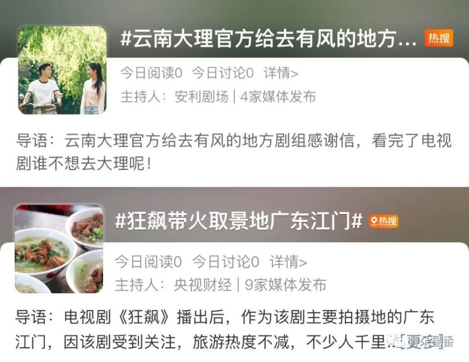 文|小玉 年前防疫政策的调解给很多行业松了绑,而旅游业的复苏情况是最为突出的。 时逢春节假,游客如开闸泄洪般涌入各大旅游景点。据文化和旅游部数据,本年春节假期天下国内旅游出游人次同比增长23.1%,已规复至2019年的88.6%。出境游方面,春节假期前6天,天下移民管理机构共查验收支境人次同比增长123.9%。 收假后,平凡人收敛心思回笼开工,但假期辗转于各大晚会间的明星们终于可以抽闲出游了。这不,时不时就有网友发帖在泰国偶遇明星,鞠婧祎、孙怡、宋茜、张婧仪、龚俊、杨洋、朱一龙等都连续现身。在明星效应的动员下,很多网友跟帖表达了前往泰国旅游的意愿。 固然,网友们的办法率肯定会打些扣头,加之泰国旅游近期风评不佳,真实的动员效果难以盘算。其次,跟随明星脚步打卡旅游并非奇怪事,但这种模式带给景点的可连续效应向来体现一样寻常。一方面是单个明星的影响力有限,另一方面是私人行程也不会做放肆宣传。 与明星效应异曲同工的影视剧效应则被视作大有可为。开年播出的《去有风的地方》《狂飙》两部电视剧就分别动员了取景地云南大理和广东江门的旅游热度。早前另有《机密的角落》《都挺好》《司藤》《陈情令》等作品与地方文旅互惠互利。 一部剧带火一座城,而一座城也成绩一部剧,“影视+文旅”的双向奔赴还在继承。 01 《有风》《狂飙》为地方文旅添柴加火 “总要去一趟有风的地方”,看了《有风》后,不少观众都萌生了如许的想法。在刘亦菲、李现一众明星的演绎下,取景地大理清新壮美的群山湖泊、古朴清静的乡村小院、热情好客的原住住民、色香味俱全的特产美食等更加令人向往。 本年1月受该剧动员,且在疫情放开和节假到来的共同加持下,大理白族自治州旅游盛况一举逾越疫情从前。春节七天,该地共欢迎游客423.93万人次,同比增长219%,实现旅游业总收入31.6亿元,同比增长162%,创汗青新高。 只管大理本身就是热门旅游都会,但不可否认《有风》带来的积极影响。对比同是大热旅游点的三亚和重庆,二者在春节期间的旅游收入同比增长率分别是25.98%、29.6%,远低于大理。 不但有横向的间接分析,更有官方认证直接肯定了《有风》对当地旅游复苏做出的贡献。大理州委、州政府的感谢信提及,该剧是大理最好的旅游宣传片,让亿万观众认识大理、爱上大理、走向大理。而该州宣传部长牛燕也在《有风》研讨会上体现,“整个2023年春节云南全省旅游收入384亿元,跃居天下第一,井喷式增长和这部剧有很大关系。” 再来看一组数据,《有风》开播一周时,飞猪站内云南相干搜索量就已大涨,此中“大理”增长近2倍,“沙溪古镇”增长超10倍,“凤阳邑”增长了50倍。后两个地点都较为小众,尤其是剧中有风小院地点地凤阳邑。开播近一月,该村书记陈琴曾向媒体体现,“电视剧播出前游客量在50-100人,现在一天的游客量已经暴增到近3000人。”时至本日,有风小院门口仍然天天都排着长队,该地成为了很多游客心中的大理必打卡点。 不足为奇,《狂飙》也带着取景地广东江门的旅游业一起狂飙。走强哥走过的路、吃一碗同款猪脚面等引领江门新一代旅游风尚,不少游客慕名前来打卡。 该剧于1月14日开播,关注度随剧情渐入佳境而骤升。2月中旬,携程数据表现,迩来半个月以来,江门的旅游搜索访问量比前半月增长163%,动员团体旅游订单量环比增长121%。同样正值疫情放开和节假到来,春节期间,江门市共欢迎游客254.93万人次,旅游收入14.54亿元,同比增长34.48%和29.47%。 长堤汗青文化街区是高启强故乡、强大小灵通等场景的拍摄地。现今走进这里,到处可见《狂飙》有关元素的小商品,如《孙子兵法》条记本、台词折扇、猪脚面、肠粉等,照相的游人、网红也继承不停。 更早一些,《陈情令》的大了局取景地贵州都匀螺蛳壳山吸引了浩繁粉丝前来打卡,原来人迹罕至的荒山被硬生生走出多条小路;《都挺好》里,苏大强家取景地让同德里从苏州无数条小巷中脱颖而出;《机密的角落》发掘了湛江这个位于我国南边的“机密的角落”,朱向阳生存的赤坎老街也成为网红打卡点;《司藤》拍摄自香格里拉、丽江等地的空境美不胜收,强势宣传了一波云南自然风光..... 02 一部剧怎样带火一座城 详细而言,“影视+文旅”模式是怎样发挥最佳效用的?我们依然可以透过《有风》与大理、《狂飙》与江门这两对范例例子找到答案。 影视剧动员地方文旅的须要条件中,首当其冲是播出机会的恰到利益。防疫政策调解和春节假期到来让各人的旅游需求暴涨,热播影视剧的取景地成为出游第一选择的几率提升。 其次,影视剧的出圈水平根本决定了它对地方旅游的影响力度。根据骨朵数据,《有风》和《狂飙》分别位列本年1月全部剧集热度榜单的第三和第二。在豆瓣上,制止现在,《有风》得到超24万人打出的8.6分,《狂飙》的8.5分则由75万人共同打成,火爆水平不问可知。爱奇艺总裁龚宇乃至体现,《狂飙》是爱奇艺创建13年以来,流量最大、收入最高、影响力最大的一部剧。 包罗《陈情令》《都挺好》《机密的角落》等可以大概连续出现在地方文旅宣传动向中的名字,无一不是对应档期的爆款作品。只有影视剧的辐射范围够广,对地方文旅的动员作用才会显着。此前,《一场遇见爱情的观光》《误杀2》等作品也分别在大理、江门取景