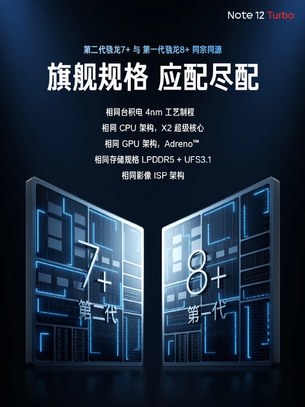【手机中国消息】3月28日晚7点,Redmi红米手机正式发布了小金刚眷属全新成员——Redmi Note 12 Turbo。 外貌方面,Redmi Note 12 Turbo连续潮水小立边操持,而且初次接纳无屏幕支架操持,机身厚7.9mm,重181g,团体看起来时尚大方,可以轻松单手持握。配色上,该机带来了碳纤黑、星海蓝、冰羽白三款配色,每一款都非常亮眼。 屏幕方面,Redmi Note 12 Turbo配备了一块6.67英寸OLED直屏,边框窄至1.42mm,屏占比高至93.4%,全屏最高亮度1000nit,支持120Hz革新率、240Hz触控采样率、1920Hz高频PWM调光,而且通过了SGS低蓝光认证,屏幕素质极高。 性能方面,Redmi Note 12 Turbo举世首发搭载第二代骁龙7+移动平台,接纳台积电4nm工艺,搭配LPDDR5+UFS 3.1,安兔兔跑分1010385分;带来超高性能、更低功耗;配备3725mm2超扩散导流VC均热板、14层立体石墨,散热本事提升35%,让手机时间动力汹涌。别的,这款手机还搭载了狞恶引擎,实现热门游戏全高帧,此中《王者光彩》60分钟极致画质,均匀帧率119.2fps。 别的,Redmi Note 12 Turbo前置1600万像素摄像头,后置6400万像素主摄+800万像素超广角摄像头+200万像素微距摄像头;内置5000mAh电池,支持67W快充,15分钟充电50%,45分钟充电100%。 值得一提的是,在3月28日20:00-3月31日24:00首销期间,购买Redmi Note 12 Turbo的用户将得到一年碎屏保。 末了在代价方面,Redmi Note 12 Turbo 8GB+256GB版本售价1999元,12GB+256GB版本售价2199元(首销2099元),12GB+512GB版本售价2399元(首销2299元),16GB+1TB版本售价2799元(首销2599元)。 |