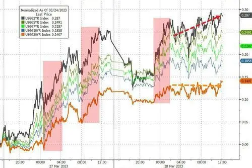 划重点: 美联储负责银行业羁系的副主席巴尔出席国会听证,他夸大硅谷银行倒闭是“典范的管理不善案例”,美国银行体系总体妥当且有韧性,具有强盛的资源水平和运动性。 “大鹰派”、圣路易斯联储主席布拉德支持加息,称迩来几周金融压力因银行业危急而有所增长,但可以通过羁系政策而非利率来控制,适当的货币政策可继承打压通胀。 英国央行行长贝利称,该国银行体系有韧性,资源与运动性均妥当,通胀还是央行关注焦点,假如通胀压力一连的迹象变得显着,就须要进一步收紧货币政策。 有分析指出,政策订定者和央行官员继承夸大西欧银行体系不会走向全面瓦解,风险偏好改善,经济阑珊的远景和货币政策重回关注焦点,但市场仍存在不安感情,多只银行股转跌。 这表如今西欧国债收益率连涨两日、美元指数连跌两日,反映避险需求退潮。西欧紧张股指盘中转跌,则表现了市场对西欧央行继承加息的预期,5月美联储不加息概率不敷49%。 经济数据方面:美国标普-凯斯席勒房价指数在1月环比下跌0.2%,为一连第七个月降温,较客岁6月峰值回落3%。分析称,按揭贷款资源高涨和经济疲软远景在未来几个月都是房价面临的阻力。 美国3月谘商会斲丧者信心指数104.2,高于预期101和前值102.9,现况指数小幅回落,但预期指数提升。3月里士满联储制造业指数-5,好于预期-10和前值-16,但仍陷萎缩。 美国2月商品贸易逆差一连第三个月扩大,出口额的降落凌驾了入口额降幅,汽车出口创近三年最大降幅。食品代价飙升令英国3月零售代价同比增8.9%创新高,法国3月贸易信心下滑。 美股尾盘跌幅收窄但团体收跌,阿里巴巴涨14%创九个月最大涨幅,银行股不少转跌3月28日周二,美股开盘涨跌互见,标普500指数和纳指小幅低开,道指小幅高开。开盘50分钟,标普和罗素小盘股转涨,道指涨幅扩大至超百点,纳指维持跌0.4%。 但开盘65分钟,美股三大指数悉数转跌,纳指和纳指100跌幅扩大至1%。午盘后美股跌幅扩大,尾盘时明显收窄、仍团体收跌。标普大盘最深跌0.7%,道指最深跌近140点。 停止收盘,标普和道指均止步三日连涨,罗素小盘股止步两日连涨,均跌落一周高位;纳指和纳指100连跌两日,纳指100进一步阔别七周高位,仍较客岁12月尾部位反弹超20%: 标普500指数收跌6.26点,跌幅0.16%,报3971.27点。道指收跌37.83点,跌幅0.12%,报32394.25点。纳指收跌52.76点,跌幅0.45%,报11716.08点。纳斯达克100指数跌0.49%。 标普11个板块涨跌各异,电信跌1%表现最差,医疗保健和科技跌0.6%,金融板块跌0.06%跌幅最小,原质料和工业涨超0.5%,能源涨1.45%涨幅最大。 行业基准费城证交所KBW银行指数(BKX)涨近1%后转跌0.7%,终极收涨0.3%,连涨三日。但KBW纳斯达克地域银行指数(KRX)涨0.8%后转跌0.2%,SPDR标普地域银行ETF(KRE)涨近1%后转跌,均止步两日连涨。三个指数均离2020年11月以来的28个月新低不远,3月齐跌超20%。 昨日齐涨的大型银行股涨跌不一。美国资产值最大的摩根大通涨0.3%,花旗涨1%,阔别五个月低位。富国银行和美国银行跌约1%,均倘佯两年低位。同时,摩根士丹利转涨0.3%,离开四个半月最低,高盛尾盘转涨革新两周高位,资管巨头嘉信理财跌近2%逼近两周最低。 地域银行股也涨跌不一,但昨日涨近54%且领跑银行股的第一公民银行股份(FCNCA)再涨超2%,至汗青最高。第一共和银行跌超2%,重新逼近上周一所创汗青最低,上周跌46%,年内跌近90%。 纽约社区银行(New York Community Bancorp)涨近2%。阿莱恩斯西部银行(Western Alliance Bancorp)涨超2%后转跌0.6%。西平静洋合众银行(PacWest Bancorp)跌5%,逼近上周四所创汗青新低。KeyCorp涨近2%后转跌1%,Zions Bancorporation尾盘涨2%。 值得留意的是,纽约币圈银行Signature Bank美股盘前复牌跌超99%,盘中最深跌近78%至0.088美元,收跌超68%至0.13美元。硅谷银行在美股盘前复牌跌超97%,盘中最深跌98%至0.01美元,收跌超24%至0.40美元。两只个股均创汗青最低。 欧股银行股多数上涨:德意志银行的欧股和美股均跌超1%,重新逼近五个月低位。瑞信的欧股涨0.7%,其美股跌超1%再创汗青新低。瑞银UBS的欧股涨1.7%,其美股跌0.6%。 法国巴黎银行跌2%后转涨,汇丰英股尾盘抹去跌近1%,法国兴业银行跌1%,巴克莱英股跌近1%后转涨。法国金融查察部分就税务敲诈和洗钱控诉查抄五家银行,包罗汇丰和法国巴黎银行等。 欧股银行指数连涨两日,但午盘后明显收窄涨幅 明星科技股齐跌。“元宇宙”Meta跌1%,苹果和微软跌0.4%,奈飞跌超1%,阔别逾十个月、半年、七个月和一个月最高;谷歌A和特斯拉跌1.4%,亚马逊跌0.8%,均创一周最低。 芯片股连跌三日。费城半导体指数跌0.9%,下逼3000点至两周最低。AMD、迈威尔科技、拉姆研究、高通、格罗方德半导体(格芯)、应用质料跌2%,英伟达和美光科技跌不敷1%。 消息面上,苹果推出“先买后付”的Apple Pay Later服务。微软推出接纳OpenAI技能的网络打击打击工具Microsoft Security Copilot。Meta操持镌汰对部分员工的奖金发放。英伟达选择甲骨文云技能提供人工智能服务。OpenAI要做呆板人,进一步跟马斯克对抗。 热门中概全天跑赢。中概ETF KWEB涨超4%,CQQQ涨近2%,纳斯达克金龙中国指数(HXC)涨3.5%,重上7100点。纳斯达克100四只成份股中,京东和百度涨超4%,网易涨2.7%,拼多多涨1.6%。其他个股中,阿里巴巴涨超14%,创客岁6月以来最大单日涨幅。腾讯ADR涨8%,B站和蔚来汽车涨约3%,抱负汽车涨超6%,小鹏汽车涨超5%。富途控股高开5%后转跌超6%。 消