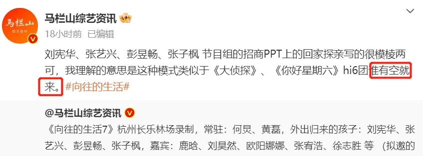 《向往的生存》第七季正式开始录制了! 连续两天时间,节目都有路透流出,何炅又是在杭州被偶遇,又是在福建被偶遇,加上他最新曝光的行程,不少网友都感慨,何老师着实太过繁忙了,要知道何炅也是48岁的人了,眼见着“年过半百”,一天时间就至少跑了3个地方,跨市又跨省,堪称连轴转。 另有大V直接曝出了播出时间,体现《向往的生存》新一季将暂定4月29日播出。 联合何炅最新行程和知情人透露消息,再共同节目招商方案,《向往的生存》新一季大概率要彻底改版了,真正的常驻只剩下何炅和黄磊两人,传说中回归的刘宪华,另有一家五口中的张子枫、彭昱畅和张艺兴都没办法录制全季,根本上等同于高朋。 着实从节目近期路透内容也能看出改版端倪。 ——何炅先是开车接黄磊到《向往的生存》新一季录制所在杭州,转过头就要回长沙录制另一档音乐综艺《声生不息》,期间何炅还在福建出现了一下,与黄磊一起被路人拍到,何炅还和镜头打了一个招呼,不出不测应该也是在录制《向往的生存》。 何炅和黄磊忙繁忙碌,刘宪华、张子枫、彭昱畅和张艺兴却都全程没有出现,和知情人的消息也都对上了。 不但云云,另有别的一位长沙当地网友出头爆料,信誓旦旦体现刘宪华不是常驻。 刘宪华本人也在外网账号晒出了最新动态,特殊展示了所在定位,原来他根本就不在国内,而是在韩国。 也不知道刘宪华在这个玄妙的时间晒出定位,是不是在侧面回应,他不会回归常驻《向往》一事。 除了刘宪华之外,张子枫、彭昱畅和张艺兴3人也都各有各的繁忙。 张子枫的新戏2月尾才开机,本人近1个月时间没有任何公开运动曝光,连追拍她和焉栩嘉的狗仔都抓不到人。 彭昱畅的新戏开机时间更晚,3月初才确认在长沙拍摄,同样一整个时间没有其他曝光。 一直专注音乐古迹的张艺兴也恰好在《向往的生存》新一季录制期间进组了,拍摄所在就在福建省。 本以为《向往》开录内容会是何炅和黄磊开车探班张艺兴,效果偏偏就在第七季开启录制的时间,张艺兴飞到瑞士去到场运动了,有关探班的推测也不建立了。 大V知情人给了一个精准总结:刘宪华、张艺兴、彭昱畅、张子枫4个小辈在这一季《向往》,就是“谁有空谁来”。 对于《向往的生存》第七季改版的操纵,网友们的反馈还算不错,以为节目组早就该这么干了,以为节目焦点吸引力紧张在何炅和黄磊身上,小辈们不是很有吸引力。 《向往的生存》第三季之后口碑连续走低,多少也有模式固定的元素在,现在有所改变也不是坏事。 末了就放上节目招商方案拟邀的飞行高朋名单吧——分别是鹿晗、刘昊然、欧阳娜娜、张宥浩和徐志胜,等待一下他们能给《向往的生存》带来新火花吧! 本文未经授权严禁转载违者必究! |