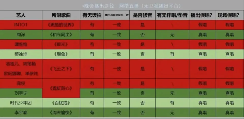 阵容浩荡的微博之夜固然竣事了,但后劲依然十足,网友们各种吃瓜、扒料看乐子。 迩来又有博主扒出微博之夜演出高朋的假唱情况,谁假唱、谁修音垫音,扒得连底裤都不剩了。 该博主通过晚会直播、粉丝直拍等音源,用专业软件将晚会上的10个节目、12个歌手逐一分析,发现此中假唱的竟多达7位歌手(多人男团算一人)。 真正做到真唱、无垫音的,只有周深、李宇春、刘宇宁3个人,非常之三的完全真唱度,这歌坛是真的没救了。 而假唱的7个演唱者里,只有龚俊一人是演员身份,其他人都是歌手。此中还不乏各人认可的力气派:谭维维、周笔畅、容祖儿,以及民选的《好声音》冠军单依纯。 容祖儿、周笔畅、单依纯、欧阳娜娜是4个人演出的同一个节目《飞云之下》,固然她们也很有团队意识,都一同选择了假唱。 容祖儿,举行天下巡回演唱会90多场的天后级别人物,却在这场晚会上收起了歌喉,放上了修音好的音源。 固然音源里的修音修得不是特别狠,但对于一个天厥后说,站在舞台上只对嘴假唱,就已经是很丢脸的事了。 从《超等女声》里出道的亚军周笔畅,也是假唱。在她提前录制好的音源里,修音幅度比容祖儿还要大。 《中国好声音》冠军单依纯,在好声音舞台上,她全开麦一起过关斩将,如今到了盛典舞台,反而用上了假唱对待。 假如说歌手们是真唱,就算他本领再牛,各人用肉耳也听不出瑕疵了,但是上了精准呆板照旧会表现禁绝,由于各人都是人,不是AI。假如每个音都唱在标准音高上,那就是颠末呆板修音的。 也不要为她们表明说,她们假唱是为了共同欧阳娜娜的大提琴音。另一个节目《霓虹甜心》里,龚俊是假唱,也不影响刘宇宁真唱啊。岂非说这些专业歌手的本领,还不如刘宇宁这个草根出道的网络歌手? 谭维维,就更没表明的余地了,由于她是独唱,不存在将就谁,她假不假唱,全看本身的选择。 曾经在春晚上一展歌喉,一首《华阴老腔》惊艳天下观众的谭维维,如今在微博之夜的舞台上却不敢开口了? 这也不是谭维维第一次被扒假唱,之前在央视舞台上唱的《攀缘者》也不是真唱。假如说前次场合不能出现一点不对尚有情可原,那么这场娱乐性的晚会还假唱,那就有些说不已往了。 须要唱跳RAP的蔡徐坤都开麦真唱了,固然垫了些音,但也是真开了口的。号称“国家队”的谭维维,怎么就变得那么难开口了呢? 假唱的人里,有力气派歌手,有民选好声音,他们乃至还在晚会上拿到了各种音乐奖项。 有的歌手粉丝不平,开始质疑博主判定的科学性,效果又被扒出了更多假唱实绩。 单依纯不光晚会瞎搅,线上收费演唱会也是假唱,粉丝费钱听的歌效果是修音CD,这这是放在整个歌手届都是相当炸裂的存在。 别的,博主还扒出谭维维在微博之夜晚会上用的音源,跟在豪杰同盟活动上用的音频,都是千篇一律的。一版音源,用两场商演,这钱还真是好赚。 难怪如今的歌坛支楞不起,原创拉垮,歌手连唱都不是真唱了,乃至连所谓的力气歌手都开始摆烂。 真盼望这些歌手,能看看龚琳娜的这段话:“唯有真才气唱入迷,假如矫饰调皮,各人都不听我唱歌,我的艺术生命也就死掉了。” 大概有的歌手,早忘了心田的那份“真”,只奔着捞金赢利,声音都开始变假了。如许下去,浮躁矫饰的歌坛,还能有救吗? |