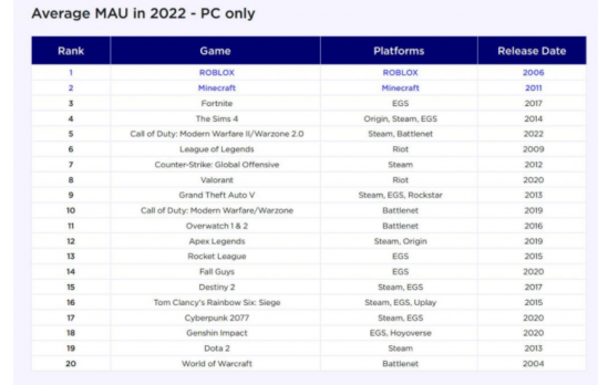 在近来,权势巨子数据统计机构NEWZOO公布了2022年的PC/主机游戏的热度排名,与以往国产游戏三军覆没的环境差别,在这一次,备受国内玩家争议的二次元《原神》顺遂代表国产游戏入选环球二十大热门PC端游名单,并取得了十八名的好结果。 根据榜单的环境来看,排在环球人气前线的仍旧还是《ROBLOX》、《我的天下》、《堡垒之夜》、《模仿人生4》这四款受众面超广的整年岁段PC端游。接着则是《任务召唤:战区》、《豪杰同盟》、《CSGO》这些在国外不绝都很火的电竞游戏。 让人没想到的是《原神》居然靠着它在国外的强盛影响力排到了第十八名的位置,还刚刚压了排十九的《DOTA2》与排二十的《魔兽天下》一头。要知道由于众所周知的来由,国服玩家的数据与外服不互通,以是NEWZOO在统计外服榜单时,只会统计国外的人气与热度环境,《原神》能单靠外洋PC端的人气取得这一结果,确实挺不轻易的。 只管米哈游从未披露过原神的日活数据,但根据营收流水与玩家讨论热度,一些数据统计机构仍旧还能推测出大概的环境。加上Steam平台及时公布的DOTA2在线玩家人数,我们最最少可以从这一份名单中推测得出,《原神》在国外PC端的日活人数已经到达百万级别。 比力可怕的一点是《原神》在手机与主机端也都有登入渠道,再加上国内巨大的用户人数,守旧估计环球用户日活数有望能到达千万级别,而这个体量完全可以逼近《我的天下》这种排名前三的超人气游戏。 看来不管你是不是原神玩家,都不得不认可这款游戏在某种意义上确实取得了青出于蓝的结果,比《塞尔达传说》拥有更为乐成的商业结果,最牛的是它还是款国产自研游戏! |