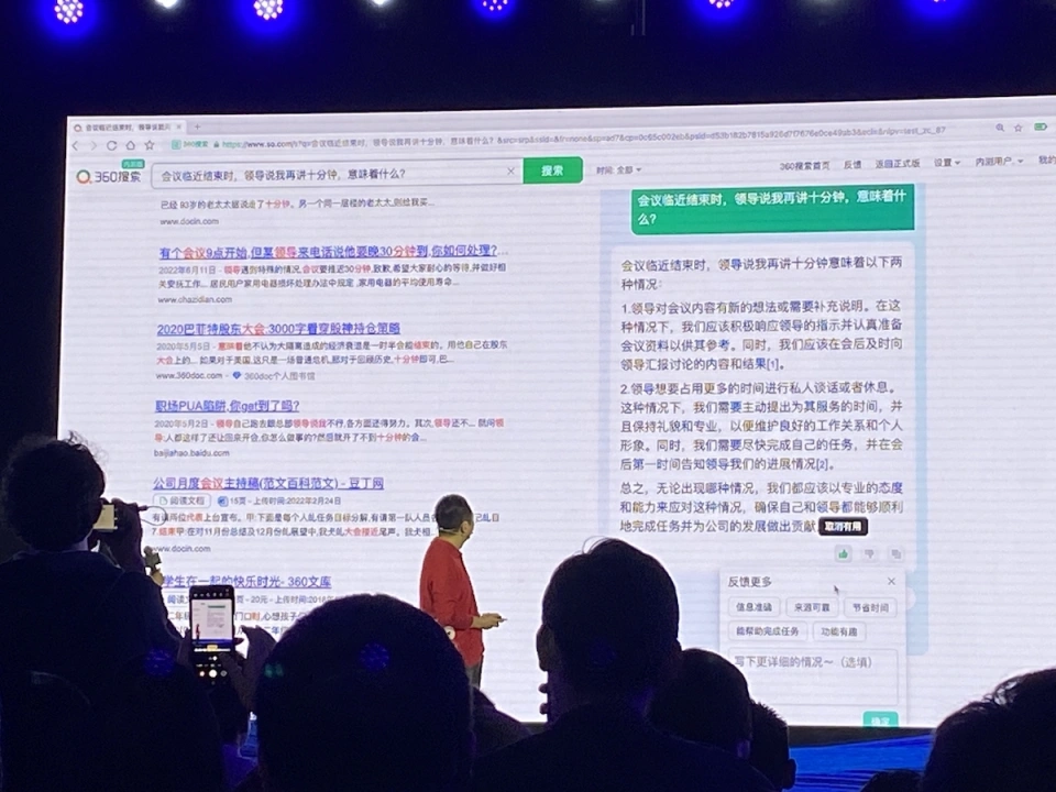 本文泉源:期间财经 作者:李婷 图源:360发布会 3月29日下战书,360团体首创人周鸿祎在2023数字安全与发展高峰论坛上,以现场演示的情势,展示了360大模子产物在智能搜刮场景中的应用。 “如果中央堕落了,渴望各人不要朝我扔鞋子。”自称为“ChatGPT布道者”的周鸿祎体现,对话场景太轻易出题目了,因此选在智能搜刮中演示,也准备了几个题目用来提问。 “周鸿祎为什么老爱穿红衣服?”周鸿祎让身边的主持人现场发问,由工作职员现场在360欣赏器的搜刮框中记录题目。 360AI给出的答案是:“360团体董事长周鸿祎在颁奖仪式上表明了自己喜好穿红衣服的缘故原由,是由于他的名字常常彼叫错成周鸿祎,而穿上赤色衣服可以提示别人他准确的名字……” 周鸿祎本人对这个答案并不满意,他纠结于AI的答复并没有给着名字的错误写法(如周鸿伟),选择了重新答复。第二次,AI给出了雷同的答案。 期间财经留意到,在答复中,360AI引用了来自差别媒体的报道,并对泉源举行标注。 图源:360发布会 第二个题目是,周鸿祎迩来为什么总爱聊ChatGPT?“照旧用视频发布产物比力好,没有压力。”在期待AI作答的过程中,周鸿祎也在不时和台下观众互动,“看到这我就心田祈祷不要断线,不要超时,不要堕落。” 360AI的答案中带上了“判断”,提到“周鸿祎对ChatGPT的观点发生了变革”。在周鸿祎看来,这正是人工智能的特点,即有自己的主观观点,但还不能明白周的思绪。 别的,周鸿祎还在提问中加上了本日(3月29日)发布的消息“马斯克等上千名环球科技人士联名号令停息练习比GPT-4更强大的人工智能体系,时长至少六个月”,并向360AI扣问缘故原由。 “这个答案可以用来阐明它和搜刮联合的长处,基于搜刮的数据对它举行解读,就可以包管时效性和毕竟性,淘汰颠三倒四的因素。”周鸿祎表明道。但他同时也对答案中引用的马斯克观点体现猜疑,并不能确定效果确实来自马斯克所说。 除此之外,360AI还答复了“卡塔尔天下杯冠军是哪个国家”,以及来自现场观众的提问“孙悟空大战灭霸谁会赢”“梅西在阿根廷国家队进了多少个球”等题目,它也并不是每次都能给出准确的答案。 周鸿祎形容现在的AI像是一个“油腻的中年大叔”,总是试图一碗水端平。末了,他以一道即兴的情商题竣事了当天的演示——“开会时,领导说再讲非常钟意味着什么”? “意味着时间有限,必要尽快完成发言……”一开始,360AI愣头青式的答复引起全场观众爆笑。颠末多次重新调试题目表述,终极AI天生的效果也布满了“职场哲学”。 图源:360发布会 “产物还很开端,不到发布的时间。”周鸿祎体现,现在上述大模子产物还没有定名,本次展示也并不是正式发布,“很多人关心360的人工智能希望,本日把‘刚出生的孩子’抱出来给各人看看,叫360GPT照旧360AI还没想法,渴望各人多提名贵意见,帮它起个名字。” 作为拥有搜刮引擎的科技公司,周鸿祎以为,360发展大语言模式的三大上风分别是:数据的得到和洗濯、人工对话练习、场景。 “新工业革命到临,任何行业都值得被人工智能重塑。”在周鸿祎看来,ChatGPT通过SaaS方式提供的人工智能服务,将会带来一场新的工业革命。 发布会现场,周鸿祎还先容了360的人工智能发展战略。在他的假想中,360将“两翼齐飞”,同步发展核默算法,自研天生式大语言模子技能;另一方面将抢占场景做产物,尽快推出相干产物服务。 360将其分为个人(ToC)、中小微企业(ToSME)、当局及大型企业(ToB&ToG)三个角度。在个人端,360筹划推出新一代智能搜刮引擎,并基于搜刮场景推出人工智能个人助理类产物;在ToSME端,将基于天生式大模子推出SaaS化垂直应用,在企业协作沟通场景使用;在ToB&ToG端,联合360数字安全业务推出企业私有化AI服务。 同时周鸿祎也体现,人工智能的发展也面临四个方面的寻衅,分别是网络安全、对现在职业的寻衅、能源题目,以及有大概产买卖识,成为新的物种。 本年以来,周鸿祎在多个差别场合都提到了对ChatGPT的见解。 在此前答投资者问中,360方面先容,现在360搜刮是中国搜刮引擎的Top 2,市场份额为35%。 360方面体现,该公司的人工智能研究院从2020年开始不停在包罗类ChatGPT技能在内的AIGC技能上有连续性的投入,但克制现在仅作为内部业务自用的生产力工具使用,且投资规模及技能程度与当前的ChatGPT 3相比另有较大差距,各项技能指标只能做到略强于ChatGPT 2。 同时,该公司有富足的资金储备可用于购买大规模算力,在继承深入自行研发的同时,不打扫探求强有力的相助搭档。 周鸿祎现场体现,在贸易化方面,中国拥有上风,有本领发展自己的人工智能大语言模子。但现在来看,中国大语言模子隔断GPT-4有两到三年时间差距,必要更多的宽容和耐烦。 |