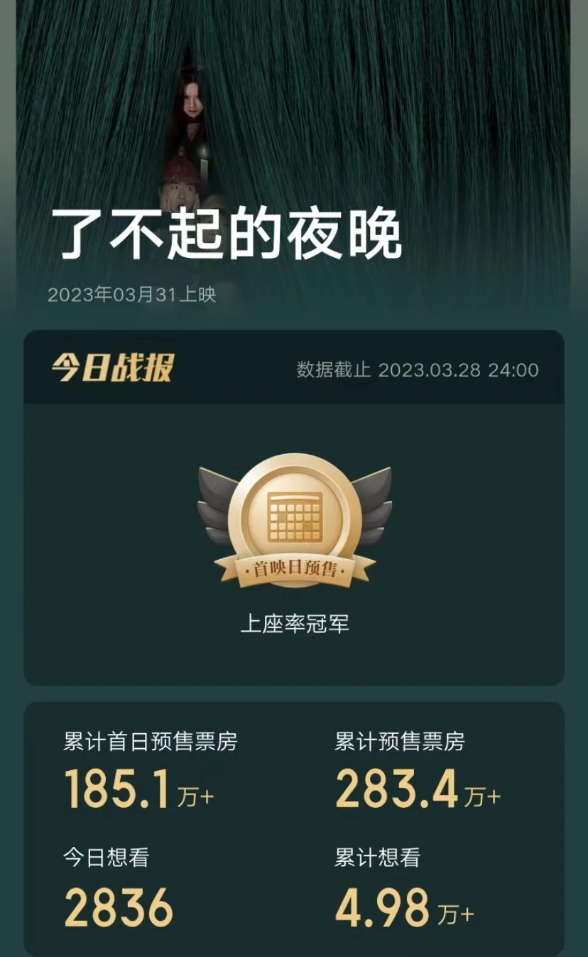 春节档之后,院线影戏的热度徐徐回落。观众熬过了毫无看点的情人节档期,终于在三月尾看到了一部拿得脱手的影戏作品。 根据数据表现,影戏《了不得的夜晚》已经定档3月31日。而现在影戏的点映效果拿下了上座率冠军。累计预售票房突破280万,得到了浩繁网友的观众。 值得歌颂的是,《了不得的夜晚》仅仅是预售点映阶段就得到了浩繁好评。点开影戏的相干话题,也都是网友的高分承认。 作为一部涵盖了惊悚+笑剧元素的影戏,《了不得的夜晚》让不少影迷相当等待。而现在看来,这部影戏绝对是近期最值走进影戏院的一部作品。 风格光显,情节出色,《了不得的夜晚》看点十足 通过剧情简介不难发现,《了不得的夜晚》是一部脑洞大开的作品。 影戏陈诉的是短视频达人豹哥(范丞丞饰)的公司面对停业和赔钱的双重困难,而为相识决危急,豹哥向导团队深入惊悚片拍摄现场,引发一系列爆笑变乱的惊悚故事。 在风格上,《了不得的夜晚》将惊悚片和笑剧片团结。而值得一提的是,国产剧市场上主打惊悚风格的影戏风致一样平常,且非常稀缺。 而惊悚+笑剧的风格,弱化了惊悚片在题材上的敏感,同时也作育了更出彩的观影氛围。 在已经放出的预告片里,《了不得的夜晚》充斥着各种无厘头的爆笑桥段。比如导演在拍摄惊悚片时演员发交易外,一群人盯着监视器里的鬼妆演员吊着威压向镜头飞来。 效果下一秒,古装演员就被吊在了屏幕前,吓得众人嗷嗷叫,但屏幕外的观众是逗得哈哈笑。 除此之外,《了不得的夜晚》也有很多看似不经意,但是幽默感十足的笑梗。 蒋龙扮演的小山是戏中戏里的男主,一旁的豆(孔连顺饰)问他导演到底是怎么看上小山,让他当主角的。 小山答复“我用这部戏的片酬投资了这部戏”。 我还没反应过来这是什么骚使用,效果都一脸无语的接话“那就是免费呗”。 这些幽默感十足的对话,在演员你一句我一句的铺垫中笑点十足。紧张的是,影戏里根本都是老套路,新笑梗,比起大部门笑剧影戏照抄网络段子的东拼西凑,《了不得的夜晚》是真的在用心造梗,用心编剧。 现在来看,《了不得的夜晚》算不上什么大制作,但却是一部可以给影迷提供各种感情代价的潜力黑马。而除了剧情看点,制作质感之外,演员的塑造也是这部作品不容忽视的吸睛上风。 范丞丞形象大变,副角演员全员笑剧人 在观众的印象里,范丞丞固然加入了很多综艺节目,但是他的外形仍然是偶像级的水准。但是在《了不得的夜晚》中,范丞丞为了脚色和笑剧效果,完全放下了偶像包袱,不光增重到满身都是虚肉,还留起了中年男子的斜刘海,和直接“加辈”的髯毛。 光是在造型方面,范丞丞就做到了让观众眼前一亮,让人对脚色和情节充满等待。而在演出上,范丞丞的演技进步也很显着。 作为半路出家的演员,范丞丞出演了很多脚色,但演技短板却很显着。他得当《门锁》里寡言少语的副角,只负责淡漠的人设。可到了电视剧《被忘记的韶光》和《致命愿望》中,大量的台词和戏份,就袒露了他台词功底一样平常,演技稍显木讷、刻板的题目。 但在影戏《了不得的夜晚》中,范丞丞扮演的男主豹哥根本就是个随性洒脱,相当外向的脚色。他嘴碎话多,性格开朗,而范丞丞的台词也显现了豹哥好逸恶劳,以致没个正形的烟火气、市侩气。 而除了范丞丞之外,《了不得的夜晚》中另有很多副角,一举一动都是笑剧人的画风。 在电视剧《猎罪图鉴》、《风起洛阳》、《全职高手》中被观众记着的蒋龙,自己戏路就很宽,而这次他更是塑造了一位一本端庄地搞笑的脚色。 预告里,蒋龙演绎的小山是戏中戏里的男主。片场闹鬼,让他这个男主角直接开启了暴走模式。在团队执意继承拍摄的时间,小山重新到脚都是抗拒。在这场戏里,蒋龙痛心疾首,捏着嗓子颤动着说“再拍就真达成了”。 他语气里尽力克制的顿挫感和此时蒋龙脸上的恐慌,都乐成让观众记着了小山这个胆小的人物。 除此之外,梁龙、孔连顺也都是《了不得的夜晚》里的惊喜盲盒。两位在预告片的镜头并不算多,但是回顾他们参演的影视剧就会发现,两位都是很善于笑剧作品的演员。 梁龙作为演员出演过很多笑剧作品,像《疯狂的外星人》《东北告别天团》系列影戏都是他的代表作,客岁他以致还参演了杨逾越主演的情况笑剧《家有姐妹》,而且再次发挥了笑剧人的上风,和年轻演员的演技形成了剧烈对比。 至于演员孔连顺,更是笑剧片里的常客。他曾经是《万万没想到》的殊效师,除了技能过硬之外,他也由于参演《万万没想到》的副角,正式被观众承认了演员的身份。 以致还在着名之后,塑造了《鬼吹灯之精绝古城》里的王胖子,乐成在悬疑剧里把一个载着笑剧灵魂的脚色演得入木三分。 从某种意义来讲,孔连顺对于笑剧惊悚片的驾御本领,已经得到过市场的验证。 总而言之,在演员阵容上,《了不得的夜晚》充满惊喜,也难怪这部影戏还没有上映,就开始数据疯走,一起狂飙。 固然,《了不得的夜晚》现在还在点映预售的阶段。一部影戏的乐成除了影戏自己的风致之外,和档期、运气也有很大的关系。在档期方面,《了不得的夜晚》正值明朗放假前,题材相对应景,预计票房不俗。 而在口碑方面,《了不得的夜晚》能拿到哪个档次的评分,就看大众对这部影戏的评价。末了,你是否看好范丞丞主演的新片《了不得的夜晚