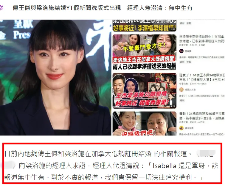近来,娱乐圈谎言特殊多,不少网友被YouTube(视频网)造假的截图诱骗,以为真的是港媒爆料。 “梁洛施与王杰在加拿大低调注册完婚”便是此中之一。 该消息泉源不明,造谣者甩锅港媒,港台的娱乐消息偶有浮夸身分,但也算是有根有据,这回真的是冤死了。 打开本地的几个交际平台,在消息主页就有干系消息,内容写得很全面,不知情的网友看完,大概会信任。 有报道称,消息源头之一是“前香港狗仔朱皮”,他在视频中透露,60岁的王杰与加拿大与一名富婆热恋,该名富婆就是身家10亿元的梁洛施。 先不说梁洛施的身家有没有10亿,“朱皮”本身就是一个骗子,前东家《东方日报》已经跟他划清边界。 “朱皮”经常为了挣流量在网络造谣,此前就试过编造古天乐与Angelababy完婚,效果被baby告状。 此前,“朱皮”又造谣周迅与陈坤在西藏举行婚礼,他口无遮拦,疯言疯语,明星都懒得分析。 3月30日晚,港媒向梁洛施的经纪人求证,对方澄清说:“Isabella(梁洛施)照旧只身,该报道无中生有,对于不实的报道,我们会保存齐备法律追究权利。” 除了王杰之外,梁洛施还被传与三个儿子的父亲李泽楷复合,经纪人夸大“Isabella只身”,那就证实复合消息也是假消息。 究竟上,李泽楷与梁洛施的感情生存都非常秘密,特殊是女方,她身边已经好几年没有出现关系密切的夫君了。 至于李泽楷,他曾与港姐郭嘉文热恋,但早在2021年便传出分手,当时李泽楷没有正面否认消息,他用“工作繁忙,私家事不再回应”来告知媒体,被外界视为默认。 以后,李泽楷与郭嘉文再也没有被拍到同框照。 假如李泽楷真的跟郭嘉文分开,那他的新女友是谁呢?没人知道。 梁洛施带着三个儿子返回香港定居之初,曾与一名青年才俊约会,港媒拍到两人热吻的照片,但恋情曝光不久,梁洛施就选择分手。 梁洛施与李泽楷不停保持良好互动,他们是孩子的父母,经常一同到场学校活动。 这些年来,梁洛施在Angelababy经纪人的资助下实验复出,但她毕竟是李嘉诚三个男孙的母亲,“妈妈”才是她最紧张的工作,拍戏只是玩票性子,不大概满身心投入。 何况,身为三子之母,梁洛施扮演脚色有范围性,至少不能裸露血腥,否则媒体铺天盖地的报道会对她的孩子造成压力。 最关键是,梁洛施无法拿本身的私事举行炒作,不能曝光三个儿子的边幅,这些限定令她对大众的吸引力大大低沉。 种种环境下,梁洛施在娱乐圈的发展没有想象中顺遂,她的代言也越来越少,终极只能依靠李家生存。 梁洛施倒是不愁吃穿,随着孩子长大,她也渴望奇迹得到乐成,惋惜未能如愿。 为寻求心灵上的救赎,梁洛施成为虔敬佛教徒,她不光穿着修行服到场佛教活动,还画地藏王菩萨画像到场《无相之相》美术展,保持吃素的风俗,过着清心寡欲的日子。 为了学佛,梁洛施自动在交际网结识TVB女星江美仪,在对方的领导下,深度打仗佛教。 如许的梁洛施,恐怕真的没有爱情欲望了吧? |