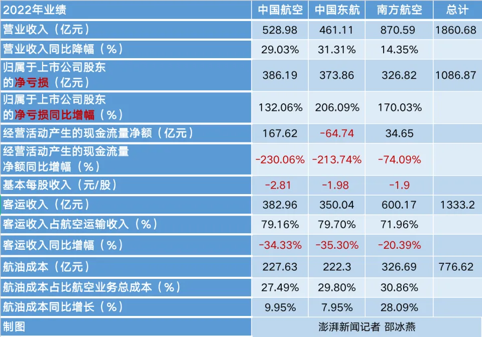三大航客岁亏损超千亿元,预计本年航空市场压力将有所缓解。 制止3月30日晚间,中国国际航空股份有限公司(中国国航,601111.SH)、中国东方航空股份有限公司(中国东航,600115.SH)、中国南边航空股份有限公司(南边航空,600029.SH)均一连发布完2022年年报。受市场连续低迷、国际地缘辩论、人民币贬值、油价高企等多重超预期倒霉因素的影响下,三大航客岁生产策划遭受严肃寻衅,营收共计1860.68亿元,同比降落约23.52%;归母净亏损合计1086.87亿元,同比扩大超1.65倍。 南航、国航、东航是我国三大航空央企,业务量占据国内半壁山河。2021年,三大航及其子公司运输总周转量占比各航司总运输周转量超六成。 客岁三大航业绩数据。汹涌消息记者 邵冰燕 制图 客岁三大航亏损千亿元 三大航客岁营收共计1860.68亿元,同比降落约23.52%。详细来看,南航客岁营收最高,达870.59亿元,国航客岁营收为528.98亿元,东航营收461.11亿元。 三大航归母净亏损均超300亿元,客岁亏损合计扩大至1086.87亿元,同比增超1.65倍,相当于日均亏损2.98亿元,亏损达汗青同期新高。 此中,国航客岁亏损最高,达386.19亿元。其次为东航,亏损373.86亿元。亏损最少的是南航,达326.82亿元。东航、南航、国航客岁亏损同比分别扩大2倍、1.7倍和1.3倍。 据汹涌消息记者查阅过往财报推算,此次国航亏掉了疫情前6年(即2014年至2019年)的归母利润累计总额,东航和南航则亏掉了疫情前9年(即2011年至2019年)的归母利润累计总额。 客岁三大航客运业务收入均呈同比降落。此中南航客运收入最高,达600.17亿元,同比降超两成。国航客运收入为382.96亿元,东航客运收入最少,为350.04亿元。国航、东航客运收入均同比降落超三成。 对于客运业务营收降落,国航表现,因运力投入淘汰而淘汰收入215.11亿元,因客座率降落而淘汰收入31.65亿元,因收益程度上升而增长收入46.55亿元。 随着客岁下半年起国内疫情防控政策和收支境政策的进一步优化,民航市场开始进入高速复苏的快车道。 本年2月,全民航运力投入大幅提拔。此中,国航、东航、南航三大央企航司的客座率均超70%,环比同比均小幅增长。别的,随着2月6日起出境游重启,三大航的国际航线的运力供给与市场需求均同比倍增。而随着3月26日民航新航季的到来,国际航班量有望进一步增长。 航油资源是航空公司最紧张的资源付出之一。国际油价程度大幅颠簸将对航油代价程度和航司燃油附加费收入产生较大影响,进而影响公司经业务绩。 由于客岁受航油代价上涨及用油量降落的综合影响,三大航燃油资源连续增长,共计776.62亿元,占航空业务业务资源均凌驾1/4。 为在肯定程度上低沉航油代价颠簸风险,保障航司策划,2009年起航司在规定范围内可自主确定国内航线游客燃油附加费收取标准。 自客岁2月5日起燃油附加费一连6个月上调,涨至100元/200元突破汗青收取标准后,客岁8月5日、9月5日接连两次下调。本年继1月5日下调后,也将迎来年内的第二次下调,4月5日起降至30元/60元。 看好本年市场发展,全行业目标实现红利 国航在年报中提及,2022年,中国民航业各策划主体整年亏损高达2160亿元,凌驾前两年亏损额的合计。 本年1月6日,2023年天下民航工作集会明确,2023年预计完成运输总周转量976亿吨公里,游客运输量4.6亿人次,货邮运输量617万吨,总体规复至2019年的75%左右程度,力图实现盈亏均衡。 本年1月尾,在三大航发布2022年业绩预告后,多位航司证代向汹涌消息记者亮相,本年航空市场发展清朗,等待公司会有相对较好的业绩体现。别的,上海市政协委员、中国东方航空团体有限公司董事、党组副书记唐兵在1月13日上海两会期间继承汹涌消息记者书面专访时表现,东航本年的工作目标是要实现红利。 谈及民飞行业格局和趋势方面,国航在此次年报中提及,中国航空市场预计竞争压力将有所缓解。预计国内市场需求将连续复苏向好。政策上,民航航班时候管理体制机制改革,支持核心资源向枢纽机场主运营公司倾斜,引导市场中各范例航司差异化策划,淘汰同质化竞争。 南航谈及策划筹划时表现,将密切关注政策变革,努力夺取保障资源和境外时候,有序规复国际航班;构建产物管理体系,开辟大兴机场增量客户;统筹新货机运力结构,加强货机回程贩卖和腹舱货源构造。 东航则提及,连续加强航网建立,提拔京津冀、长三角、粤港澳大湾区、成渝经济区的市场竞争力;聚焦国际市场规复,完满并强化与重点相助搭档的战略协同,为国际干线的重启和效益提拔提供支持。 制止3月30日收盘,中国国航报10.77元,涨3.46%,市值1542亿元;中国东航报5.21元,涨2.16%,市值1034亿元;南边航空报7.9元,涨4.5%,市值1297亿元。 (本文来自汹涌消息,更多原创资讯请下载“汹涌消息”APP) |