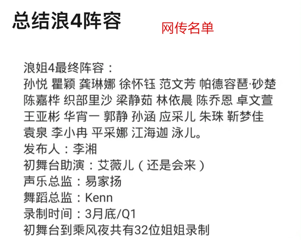 3月尾娱乐圈“顶流”们险些都在上海,4月初娱乐圈姐姐们齐聚长沙,《浪姐4》录制在即,新一季高朋们也一连有了动静,这一次姐姐名单终于不再溜粉。 下图根本便是《浪姐4》高朋真实名单。 标红的是已到达长沙或已出航班信息的姐姐,明白信息覆盖率很高,这几天长沙机场非常热闹,网友们险些每天都能劳绩大量浪姐到达图。 从名单可以看出,前面所谓的“浪4拟邀名单、浪4名单、终极名单”等水分较大,这一季姐姐们显着比前几季低调,同时,黑马预备役也多了不少。 演员名单大变样,熟龄姐姐们快被薅光了?早前传得颇久的范文芳、梁静茹、袁泉、李小冉等人皆不在列,名单里的当地演员姐姐换上了相对年轻的张嘉倪、刘雅瑟、吴优、王佳宇等人。 很显着,在当地演员姐姐的选择上,节目组挑选的高朋均匀着名度弱于前几季姐姐,代表作根本没有平静这个级别的,当下人气也多处于不上不下状态。 相对来说,网传名单中的袁泉、李小冉等更符合“国民度高、有代表作、曾经爆红过”标签,得当节目组用代表作品推情怀梗,话题度要比终极名单要强。 但符合这些条件的姐姐未必对综艺感爱好,性格也未必得当真人秀,想挑出平静、张雨绮般的天菜不易,100%相沿过往的选人尺度,大概已经没多少可以薅了。 这种情况下,更换选人对规律节目组来说未必是坏事,名单里的朱珠、刘雅瑟、张嘉倪等人身上便颇具发掘的潜力,比如朱珠风情万种的成熟玉人风韵。 刘雅瑟身上自带的低调气力派光环,以及张嘉倪的美颜暴击,没有充足的情怀梗,另有充足的特色看点可以突破,盼望节目组能接住这个寻衅,给出新惊喜。 而且,内娱演员姐姐少了点代表作情怀,名单里却另有其他姐姐能补上这一块,8090后少年期间的女神贾静雯,便是情怀影响力不逊王心凌的存在。 无论是贾静雯的武媚娘,照旧他的赵敏,都能出现一循环想杀,在整个名单中能与她国民度一战高下的,大概也只有各人都认识的“太阳女神”谢娜了。 歌手姐姐惊喜多,遗珠黑马扎堆来?国内演员姐姐情怀看点有一个大咖贾静雯,歌手情怀看点却有一群大咖扎堆,内娱唱跳鼻祖孙悦、神曲创造者龚琳娜、布衣天后徐怀钰,各有各的惊喜。 孙悦在老一辈观众里的国民度不必多说,《声声不息》时期她便已经收割过一循环想杀热搜,龚琳娜老师则是不走寻路的范例,无论你是不是歌迷,都会影象她。 不外,由于孙悦与龚琳娜是近几年观众经常能在荧屏上看到的歌手,大概比年来较少露面的徐怀钰,更容易让观众以为不测,推一波经典歌曲回想杀。 相对年轻一点的陈嘉桦同样云云,SHE在8090后的音乐回想里存在感极强,陈嘉桦本人又是个天生综艺人,这位姐姐的出现,大概能同时带来情怀与高兴。 大紫大红过的歌手拥有情怀看点,她们会成为热情宠儿根本在预期之中,拼人气与情怀,那些不绝没有真正爆红过的歌手,完全没有办法和她们比。 然而,没有大红过的歌手,却更容易出“黑马”,尤其是气力强却始终不温不火的高朋,更是很多观众急迫盼望更多人认识的“遗珠”。 刘惜君、黄丽玲、F(X)成员刘逸云便是经常被提到的名字。 一个音色独特动人,一个被喻为天生歌姬,一个是带着二代团的遗憾,这三位姐姐皆是气力选手,她们与大爆之间却似乎不绝缺把火,浪姐会不会是那把火? 观众拭目以待。 在“遗珠”歌手里,七话以为也可以再加一个大姐大瞿颖。 她最着名的成绩是演员,但很多观众都不知道,瞿颖的音乐作品也很不俗,代表作《加速度》曾经也能在热门金曲里占据一席之地,很等待她回归音乐舞台。 歌手姐姐里的遗珠有了,年轻小姐姐里的黑马也不缺,曾经到场过女团综艺的许靖韵、曾可妮,居然也到了浪姐年事尺度,爱豆外表,姐姐气力。 两位都是专业唱跳爱豆出身,也都是曾经在选秀舞台上让观众意难平的存在,在年轻人的舞台上她们被隐藏,在姐姐的舞台上,黑马能否强势逆袭? 七话相称等待两位姐姐与浪姐之间的火花,信任真正的气力派不会不绝被挡住光辉,两位带着意难平而战的姐姐是不是真黑马,答案很快便会发表。 外洋姐姐变动最大,网传的居然一个都没来?早期网传名单包罗了摇滚小天后艾薇儿、泰国一姐砂楚、顶流小水、歌手织部里沙,她们根本都是在本国属于一线或超一线行列,且在中国有大量粉丝的艺人。 此中艾薇儿要到场《浪姐》的消息险些重新传到尾,引发大量话题讨论,连外洋记者也听到风声专门去采访艾薇儿,关于她是否到场,可谓是一波三折。 然而,临到录制关头,这几位明星全数在名单中消散。 外洋姐姐团变成烈?人比力认识的秋瓷炫、琴家郎朗的老婆吉娜·爱丽丝,与相对陌生的越南明星Chi Pu、日本歌手美依礼芽以及俄罗斯歌手Mia Boyka。 客观来说,这几位外洋姐姐的气力并不弱,以致她们中有几位的专业范畴与浪姐更为搭配,但除了秋瓷炫,别的几位着名度与网传名单相比都稍逊一筹。 Chi Pu、Mia Boyka、美依礼芽这三位各人比力陌生的艺人,她们在中国粉丝群里也属于相对来说小众的外洋艺人,仅看名单,便给不出什么惊喜结果。 但,“小众明星”粉丝基数低,破圈潜力却高。 观众不认识他们,是由于对这些国家的艺人不认识,而不是由于她们的气力不敷强,一旦我们不认识的艺人出现了惊艳的舞台,燃动舆论的话题便能出现。 而且,名单中的女歌手里的美依礼芽属于在网络易讨喜的范例,她的舞蹈《极