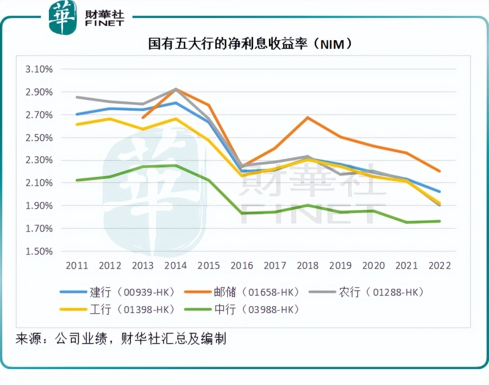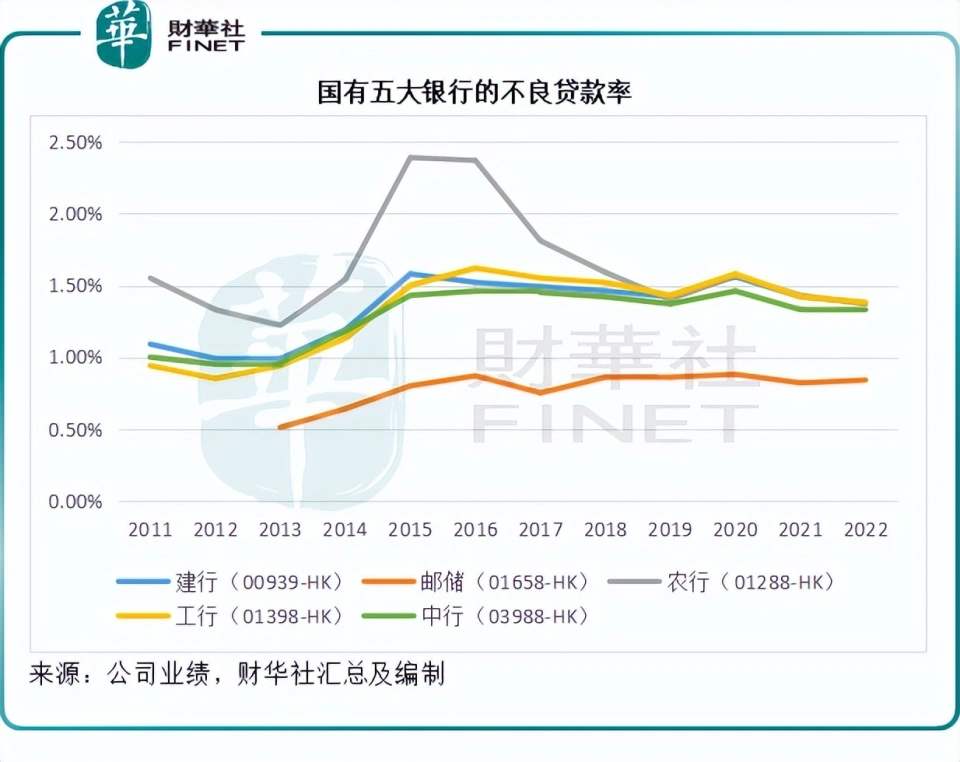工商银行(01398.HK)、建立银行(00939.HK,601939.SH)、农业银行(01288.HK,601288.SH)、中国银行(03988.HK,601988.HK),以及刚刚获中移动母公司中国移动团体入股的邮储银行(01658.HK,601658.SH)均公布了2022年整年业绩。 2022年,五大行的利钱业务仍维持重要职位,工行、建行、农行、中行和邮储银行的利钱业务收入分别占其总收入的75.57%、78.19%、81.39%、74.54%和81.68%,因此资产杠杆程度以及利钱差依然是影响其收入增长的重要缘故因由。 从生息资产(均匀值)规模来看,农行增长最强劲,总生息资产按年增长13.86%,至31万亿元(单位人民币,下同),工行和建行增幅均保持双位数,而中行和邮储银行的增幅分别只有8.13%和8.84%。 五大行的净利差均紧缩,而净利钱收益率(NIM)方面,除了中行外,别的四家银行均进一步降落。 见下图,在市场利率连续下行的环境下,国有五大银行的净利钱收益率也呈降落趋势。 银行做的是杠杆买卖,以是是真正的风险管理者,这在迩来西欧银行事故中得到明证,风险管理得好,才华保持业务的可连续性。 差别于西欧银行面对加息导致的运动性风险标题,国有银行引起关注的是其房地财产务的敞口。 从工行的业绩来看,其2022年末的公司贷款中,占比最大的行业为交通运输、仓储和邮政业,占了25.1%,较上年同期降落了0.7个百分点,不良率只有0.61%,较上年同期降落了0.27个百分点。不良率最高的行业是房地财产,贷款额为7,248.02亿元,占公司贷款额的5.8%,不良率高达6.14%,较上年同期的4.79%上升了1.35个百分点,其次为批发和零售业,头寸为5318.45亿元,占了企业贷款额的4.2%,不良率为5.96%,但要低于上年同期的8.31%。 建行公司贷款占比最高的是租赁和商务服务业,占了9.52%,规模为2万亿元,不良率为2.41%,较上年同期增长了0.08个百分点,其次为交通运输、仓储和邮政业,贷款规模占9.27%,不良率为0.95%。采矿业的不良率最高,到达7.65%,不外上年同期为10.14%,房地财产的不良率为4.36%,而上年同期为1.85%。 中行企业贷款中占比最大的是商业及服务业,规模为1,974,498百万元人民币,占11.2%,其次为制造业10.33%。商业及服务业的不良率为1.70%,低于上年同期的1.89%;制造业不良率为1.89%,上年为3.57%。不良率最高的是房地财产,贷款规模为773,828百万元,占总贷款的4.42%,不良率高达7.23%,上年同期为5.05%。 农行:交通运输、仓储和邮政业的公司类贷款占比最高,规模到达2.33万亿元,占21.7%,其次为制造业,规模为18001.24亿元,占比16.7%。租赁和商务服务业规模为17505.11亿元,占比16.3%。不良率最高的是房地财产务的公司贷款,不良额到达460.39亿元,占了总数的21.4%,不良率到达5.48%,较上年的3.39%增长了2.09个百分点。 邮储银行企业贷款行业占比最大的是交通运输、仓储和邮政业,规模到达7802.83亿元,占29.24%,而上一年的占比为31.33%;不良贷款率最大的行业或为农、林、牧、渔业,高达5.57%,不良额规模为8.07亿元,上年的不良率为1.54%。其次为住所和餐饮业,但由于贷款规模相对较小,不良额为1.53亿元,不良率为3.64%,轻微低于上年不良率3.67%。房地财产务的不良额为30.59亿元,不良率为1.45%,较上年的0.02%上升了1.43个百分点。 五大行中,公司类房地财产务贷款规模最大的是农行,到达8396亿元,占了其总贷款额的4.26%,而公司类房地财产务贷款不良率最高的是中行不良率高达7.23%,公司类房地财产务贷款增幅最大的是邮储银行,期末余额按年增长了52.30%,见下表。 从团体不良贷款率来看,五大银行的不良率都维持在0.84%到1.38%的程度,而拨备覆盖率均在两倍以上,但中行的低一点,拨备覆盖率只有188.73%,仍较为充裕。 从总资产与应占权益之比来看,邮储银行最高,或意味着其杠杆较高——以较低的资源撬动17倍的资产。而从核心一级资源富足率来看,邮储银行低至9.36%,显见其面向中国移动团体定向增发的急迫性。 从派息来看,五大行继续派发远高于其向储户提供之定期利钱的股息,与当前的A股及H股股价相比,其股息收益率均在5%以上,工行、建行、农行和中航的H股股息收益率均到达8%以上。 但是从市账率来看,国有银行现价依然远低于其净现值。 |