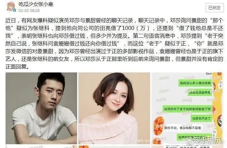 张继科负债风波一连发酵,固然工作室第一时间发声怒斥爆料不实,但是干系话题却没有停息,以致越演越烈。 在法律博主李微敖曝张继科负债500万,而且将景甜私人视频传阅给他人情况属实后,业内人士也一连了局,过往诸多爆料也再次被网友翻出。 前媒体编辑鲁雪婷转发李微敖微博大喊:终于曝出来了。 前媒体消息中心主编卢旭宁转发称李老师的微博条条都是重磅。业内人士接连发声,让网友意识到古怪浮夸的瓜并不是凭空而出,但是也担心各人的发声会影响到景甜。 吃瓜网友们发挥发掘精力,把狗仔张小寒的一组漫画爆料举行相识密,发现当中的人物形貌与张继科面对的风波状态不测符合。当时,狗仔曝跨界综艺咖男星为还债偷拍本身和美艳女星私密照,乞贷不还引发圈内吐槽。 这组漫画提及的人物有综艺咖男星、美艳女星、狐狸女星、女朋侪、洁癖男星。网友根据几个关键词对号入座,以为综艺咖男星是张继科,美艳女星是景甜,狐狸女星是杨幂,前女友指的是袁姗姗、洁癖男星就是田亮。 自称朋侪职业是信托的网友爆料称袁姗姗借张继科钱是真的,金额有500万左右,变乱发生在几年前,整个部分都知晓。别的,有爆料称袁姗姗在与张继科爱情期间,曾借了对方几百万,分手后没有还钱,袁姗姗找杨幂帮助把钱要了返来,这情节与狗仔的漫画剧情差不多。 在狗仔漫画中,综艺咖男星向洁癖男星借了1000万,还钱的时间不舒畅引发圈内吐槽。网友称这个瓜在2021年就被曝光过,当时说法是田亮借出去了1000万,景甜帮助还了不少。 别的,曾有狗仔晒出邓莎与景甜的谈天记载中,也表现疑似张继科跟多位圈内有人借过钱,包罗田亮、邓莎、袁姗姗、景甜等,邓莎是从于正那得知张继科有跟景甜借过钱,便找到景甜扣问,只是景甜没有肯定复兴,只说怎么着张继科都会还。 也由于声明没起效果,这一波爆料丝毫没停的意思。 以致某运动品牌策划爆料称张继科爱白拿品牌店的衣服,隔三岔五就会到店里拿一堆衣服不给钱。她称该品牌代言人尚有谷爱凌、关晓彤、王一博,只有张继科有这种举动。 网友也是第一次见这种爆料,纷纷品评以为他这种生理应该不是差钱,而是贪小自制。 尚有张继科早期的消息也被扒出,原来他从前就有过雷同消息。根据消息报道,张继科在2004年的时间就有过赌博。当时,他借用乒坛大佬的银行卡加入博彩游戏,输钱后无法面对暴虐现着实外出角逐过程中离队,几经辗转才被找到,当时他才16岁。 在2019年2月中旬,有网友根据行程图发现张继科频仍去往金边,当地许多赌博园地。同年3月,景甜官宣分手。 张继科的名气高过许多娱乐圈明星,身价比不上一线,也有二三线的水平,常常传出乞贷消息也确实不合常理,盼望张继科本人可以或许清晰明确回应,彻底办理好。也盼望无论是明星照旧任何名士,都可以或许爱惜本身的羽毛。 本文未经授权严禁转载违者必究! |