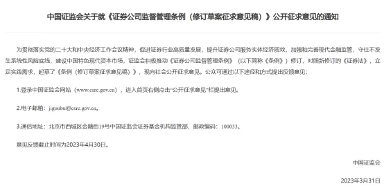 划重点 财联社3月31日讯(记者 林坚)作为资源市场告急的底子性制度,于2008年4月颁布实验的《证券公司监督管理条例》迎来初次告急修订,期间于2014年举行过小幅修订。 图为证监会发布《证券公司监督管理条例》征求意见稿关照证监会提出,本次《条例》修订工作的总体思绪是:驻足进步证券业服务实体经济质效,总结和巩固比年来证券公司羁系履历和改革效果,对峙题目导向和体系头脑,美满证券公司羁系底子制度,提拔防范化解巨大风险的本领,明白合规审慎、归位尽责的羁系导向,引导证券公司加强公司管理和内部管理,回归行业本源,提拔专业本领,补齐功能短板,走规范化、专业化、集约化、差异化的高质量发展门路,为中国特色今世资源市场创建作出积极贡献。 如今来看,《条例》修订意见稿新增35条、删减5条、修改68条,这意味着,本次调解与修订总计有108处。相较于现行条例,补充并拓宽投行、做市、场外等业务羁系范围,在第九章表现大幅进步对违法举动的处罚力度,提拔违法资本。 值得注意的是,本次将提拔证券业服务实体经济本领写入立法目的,明白羁系导向,并承袭差异化羁系原则,对峙管少管好,提拔羁系效能,引导证券公司加强公司管理和内部管理,回归行业本源,提拔专业本领,补齐功能短板,走规范化、专业化、集约化、差异化的高质量发展门路,为全面实验注册制提供更有力保障,更好提拔服务实体经济功能。从证监会的最新发布内容来看,本次修订至少包罗以下十五点关键事项: 一是将提拔证券业服务实体经济本领写入立法目的。 二是调解部分答应事项要求,取消部分答应事项,尚有取消证券公司设立、收购大概取消分支机构等事项的行政答应,将证券公司董监高任职由答应改为存案。 三是规定证监会依法加强对证券公司的股东、现实控制人及其他关联人的羁系,规范和引导资源依法有序投资证券公司。 四是明白股东、现实控制人应当推行的任务及底线要求。别的,针对重要股东现实控制人遮掩关系、规避责任等题目,将底线要求扩展实用至重要股东的现实控制人,并相应增补美满了羁系核查本事。要求证券公司及其股东、现实控制人严酷推行所作出的答应。 五规范证券公司融资举动,依照须要、公道、集约原则,提拔服务实体经济本领。 六是夸大上市证券公司应当美满投资回报机制,掩护中小投资者长处。 七是要求证券公司培养“合规、诚信、专业、妥当”行业文化,服从职业操守,推行社会责任,继续社会监督,加强自我束缚。 八是要求证券公司创建长效公道鼓励束缚机制,克制不妥鼓励,强化内部问责。 九是明白从业职员应当服从职业道德和行业规范等根本要求,加强事中事后羁系。 十是新设“证券承销与保荐业务”“做市买卖业务业务”两节。一方面,明白勤勉尽责、审慎尽调等根本任务,规定公道信任原则,夸大内部控制及承销业务的底线要求,并明白其他投行类业务实用该规定;另一方面,规定做市买卖业务业务的根本规范和内控要求,明白买卖业务场合的职责。 十一是明白证券公司在买卖业务场合外开展衍生品买卖业务等业务的,应当符正当律法规规定,要求证券公司推行信息报送任务,同时加强数据统计和监控监测;针对衍生品买卖业务业务,加强客户实名制及得当性管理、履约保障机制、风险限额管理等重点环节的管控。 十二是增设“信息技能”专章,要求证券公司保障信息技能投入,进步自主研发本领,维护信息技能体系安全、数据安全和客户个人信息安全,并对证券公司使用信息技能服务机构的产物和服务提出要求,明白信息技能服务机构的克制性举动。 十三是明白证监会基于审慎羁系原则,可以对证券公司举行风险提示、提出羁系发起,进一步美满一样平常行政羁系步伐范例及实用对象。补齐对证券公司风险的早期干预步伐,强化早期风险应对法律本事,实现风险处理关口前移。 十四是要求证券公司按规定订定规复与处理筹划,加强境表里子公司及分支机构管控。 十五是明白证监会按照差异化羁系原则,根据证券公司的管理布局、合规风控、业务开展等环境对证券公司实验差异化羁系,针对《条例》修订内容对应的违法举动,设置相应罚则。 为何迎来本次修订? 2008年4月颁布实验的《条例》对证券公司的设立与变动、构造机构、业务与风控、客户资产掩护、监督管理等作出了全面体系的规定,为证券行业的规范稳固运行提供了有力的法律保障,那么,在颁布近15年后《条例》迎来初次告急修订,重要有哪些现实考量? 比年来,证监会聚焦服务实体经济、服务高质量发展,一连强化证券公司羁系,督促归位尽责,促进功能发挥,防范化解巨大风险,积累了一些有益的羁系履历,同时也面临一些新环境新题目,有须要在制度层面固化履历、补足羁系要求。总的来看,因订定时间较早,现行《条例》部分规定已相对滞后,证监会提到,修订缘故起因重要有以下五个方面: 一是与新《证券法》规定不相顺应。新《证券法》取消了证券公司设立、收购大概取消分支机构等事项的行政答应,将证券公司董监高任职由答应改为存案,将“审慎羁系”的实用范围扩展到证券公司业务运动,大幅进步对违法举动的处罚力度等,《条例》需对照举行调解。 二是公司管理和穿透羁系有待强化。现行《条例》对股东和现实控制人有原则性规定