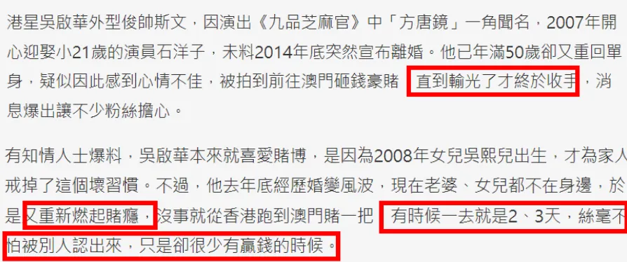 近来由35岁体育明星张继科被曝赌博负债引发的争议风波可谓愈演愈烈,他的前女友景甜受到波及,越来越多知情人出头爆料,讨论话题也进一步深入,随着网友开扒,更多明星名士涉赌过往被翻出,大批赌博照曝光,直接扳连10人以上。 根据各人扒出来的信息整理,引诱明星名士赌博早就成为了一个产业链,特殊是在2014年前后,很多明星名士的赌场照都是在该时期拍摄的。 像汪峰、何云伟、文章、徐静蕾、葛优、那英、宋丹丹等当地明星,都被拍到收支赌场。 另有男星潘粤明,他与女星董洁仳离期间,被公开责怪嗜赌成性,固然后续他乐成通过告状洗清了这一传言,但他坐在牌桌前的照片却做不了假。 2014年,法制日报还发布过一篇报道,提到一整年时间,一共有13位演艺界明星涉黄赌毒被抓,此中有11人涉赌。 2017年,与张继科同样是乒乓球运动员的孔令辉也卷入了涉赌争议,被新加坡赌场告上了法庭,要求其归还二百多万港币的贷款,他们在告状状中夸大,孔令辉在2015年2月签订了协议,先后借贷了100万新加坡币(约合人民币500万)举行赌博——很显着,这场赌博孔令辉方不是赢家,他终极归还了不到一半,拖了两年时间也没还清。 孔令辉输掉的也不但是款子,只管他后续回应表现本身并没有加入赌博,负债是受亲朋挚友牵连,但仍旧违背了干系规定和规律要求,当下就被停息了主锻练业务,而且还须要担当进一步观察和处理处罚。 一起围观下来,网友都以为仿佛统统都有迹可循,要知道“十赌九输”,这些被曝涉毒的明星就险些都是各人输钱,特殊是一些港台明星,他们赌得更加肆无顾忌,常常被媒体曝光在赌场大输特输。 港星林文龙瞒着有身的妻子郭可盈去澳门赌博,被曝光一晚上输掉了50多万港币。 2018年离世的女星蓝洁瑛,在已经停业的情况下,还去加入赌博,2小时就输了3万港币,输到兜里只剩几百块。 TVB男星吴启华还被曝有赌瘾,知情人称他本身就喜好赌博,仳离后更是变本加厉,常常一赌就是两三天,直到输光才停手。 影后李菁2018年在家中离世多日才被发现,享年69岁,引发圈内感叹,她前半生风光无穷,老年却因策划不善、着迷赌博悲惨拜别,曾经给予李菁款子资助的女星马海伦都不由得感慨一句:“长贫难顾”。 70岁离世的着名谐星猪哥亮亦是由于着迷赌博导致半生颠沛流浪,欠下了上亿赌债,后半生都难以归还,以至于病重在床另有人收支病房讨债,以致在他离世后,家人亲朋还要担心有人到猪哥亮灵堂之上要钱。 迄今为止,有关张继科赌博负债的争议风波,仍旧有人连续爆料,提到他已经升级到去柬埔寨赌博,似乎也间接表明确为什么近些年很少再见到明星名士赌博照被曝光了——产业链仍旧在,只是更匿伏了而已。 别的,另有一点不得不提,那就是我们针对赌博一事的打击力度。 女星安以轩的丈夫陈荣炼、港星周柏豪的爸爸周焯华(洗米华)都先后由于非法策划赌博等罪名被逮入狱,他们这些年和娱乐圈不绝有着千丝万缕的接洽。 末了也是盼望云云多的负面例子能给各人警觉,涉及黄赌毒,绝对不要给任何人找捏词,哪怕是喜好的明星和名士。 本文未经授权严禁转载违者必究! |