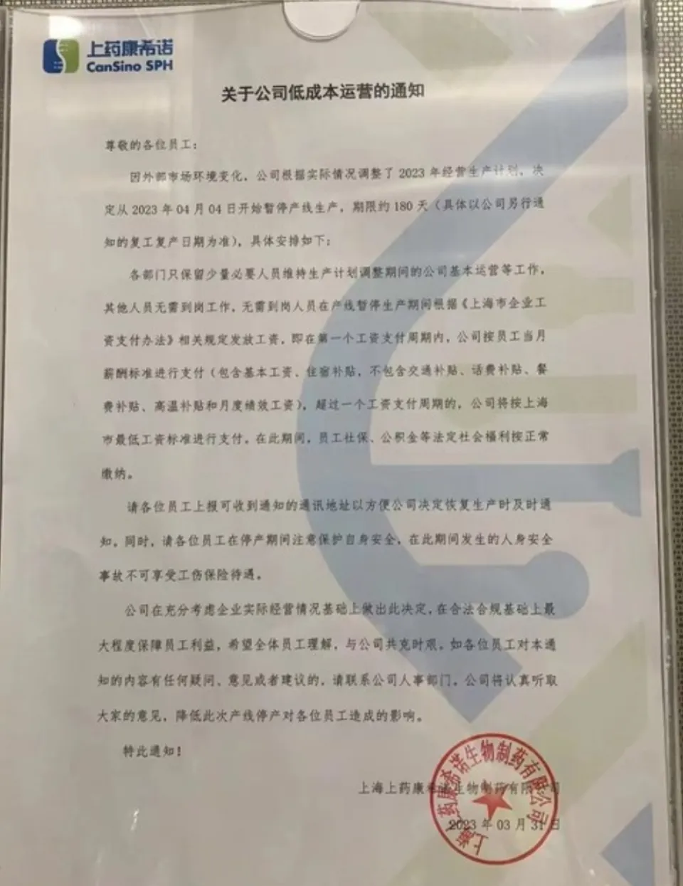 界面消息记者 | 李科文 界面消息编辑 | 谢欣 3月31日,康希诺的新冠疫苗生产基地上海上药康希诺生物制药有限公司(下简称:上药康希诺)被传出进入停产状态。 一份传播的关照体现,因外部市场情况变革,上药康希诺根据实际情况调解了2023年的生产筹划,决定从4月4日开始停息生产线生产,限期约180天。详细复工时间以公司关照日期为准。 关照还体现,现在上药康希诺仅生存少量职员维持运营,其他职员无须到岗,工资正常付出一个月,以后按最低标准付出。 界面消息记者4月1日就此事向康希诺生物首创人宇学峰、康希诺生物、上海医药、上药康希诺等多方举行求证,但对方或体现“不清晰”,或未予以回应。 上药康希诺是由上海医药、康希诺生物及上海生物医药财产股权投资基金于2021年共同投资设立的新冠疫苗生产基地。天眼查体现,康希诺持股49.8%,上海医药子公司上海三维生物技能有限公司持股48.9%,上海生物医药财产股权基金合资企业持股1.24%。 上药康希诺被用于生产康希诺生物的重组新型冠状病毒疫苗(5型腺病毒载体)克威莎。据康希诺官网,上药康希诺打造占地面积50亩,修建面积约5万平方米的“疫苗超等工厂”,运用BMS、EMS等数字化、智能化、自动化体系,可实现2亿剂新冠疫苗的年产能。 重组新型冠状病毒疫苗(5型腺病毒载体)克威莎是国内获批附条件上市的首个腺病毒载体新冠疫苗。该疫苗只需接种一剂,便可诱导机体产生体液免疫和细胞免疫应答,提供双重免疫掩护。临床数据资料体现:单剂接种克威莎14天后,重症掩护率为96.0%,总体掩护率为63.7%。 康希诺生物2022年年报体现,上药康希诺另有3.89亿元的在建工程账面余额。 上药康希诺疑似停产背后,是新冠疫苗红利期的竣事。 新冠疫苗的商业化红利仅维持在2021年,到了2022年,国内全部的新冠疫苗企业就已经开始面临巨大的业绩压力。根据年报,2022年康希诺实现业务收入为10.35亿元,比上年同期镌汰75.94%;实现归属于上市公司股东的净利润为-9.09亿元,比上年同期镌汰147.51%,由上年红利19.14亿元转为亏损;归属于上市公司股东的扣非后净利润为-10.33亿元,比上年同期镌汰157.49%。 除了国表里新冠疫苗市场情况发生变革,新冠疫苗产物贩卖收入及资源较客岁同期大幅降落外,康希诺面临存货跌价风险。2022年度,康希诺参考汗青领用情况和将来利用筹划将预计无法在保质期内被领用或贩卖掉的原质料、在产物和产成品全额计提跌价预备8.02亿元。康希诺体现,假如因市场情况发生变革,竞争加剧等缘故起因导致存货变现困难,仍面临肯定的存货减值压力和跌价风险。 |