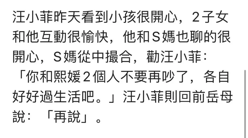 汪小菲与大S仳离后风波不停,因不满大S再婚,汪小菲克制付出给予大S米饭钱,两人一度闹上法庭。此前,法院宣判一审汪小菲败诉,不外对此,汪小菲晒出了付出给两个孩子的米饭钱付出明细称从未亏待他们分毫,并夸大自己还会继续上诉。 而大S则称,讯断就是对他最好的回应。 今后,两人便暂时克制语言上的相互攻击,而对于汪小菲晒出的账单,大S则不予剖析。 4月2日有仔细网友发现,汪小菲的IP地点表现为中国台湾,推测汪小菲已经抵台。果然,台媒随后接洽S妈扣问汪小菲回台一事,S妈透露昨日(4月1日)汪小菲就到了台北,S妈带着一双儿女前往S Hotel与他见面,大S没有前往,汪小菲与小孩相处了一个下战书。 据S妈称,汪小菲与孩子们相处得很愉快,与她也聊得很开心没有暴怒发性情,S妈还借此机遇劝和,“你和熙媛两个人不要再吵了,各自好好生存吧。”汪小菲则回了前岳母两个字:“再说。” 看来,S妈的美意是被汪小菲婉拒了。而对于两人的官司将怎样收场,S妈说:“我不知道。”但歌颂汪小菲这次见面与她谈天时语气平和,还相约这几天再见面用饭,S妈指:“等他约我。” 台媒扣问S妈,为何汪小菲与大S仳离后闹得很丢脸,却还是乐意见他,S妈很漂亮的说:“这是他和熙媛的事,不是我和他的事,所我们还是可以见面的。” 据台媒称,汪小菲这趟归去,除了看小孩之外,还要处置惩罚S Hotel的公司与工作。 看来汪小菲应该是会在中国台湾待上一段时间了,盼望他这次归去,可以大概好好与大S沟通,哪怕不见面,也可以大概看在孩子们的份上以和为贵。 退一步天南地北比谁都好,汪小菲与大S的仳离风波至今还没有竣事,无非是汪小菲不满大S与具俊晔再婚,着实,两人既然已经仳离,就应该放手让对方幸福。 具俊晔由于汪小菲的关系,也一度被污蔑与大S婚内出轨等等,他此前也发表了声明澄清朗净。 但具俊晔婚后只管知道大S与汪小菲之间的抵牾,却从未公开与汪小菲争锋相对,哪怕汪小菲曾经发文羞耻过他,他也没有对其口出恶言,如许的胸襟还是挺宽广的。 如今,具俊晔仍然会在公开场合发表对大S爱的表明,小S也表现,大S在汪小菲晒账单后心情不太好,但幸亏有姐夫的陪伴。 如今汪小菲终于回台,不知道大S会否与他在仳离后见上第一面呢? 盼望这次两人的恩恩怨怨可以大概一笔勾销,盼望两个孩子可以大概康健快乐的长大。 |