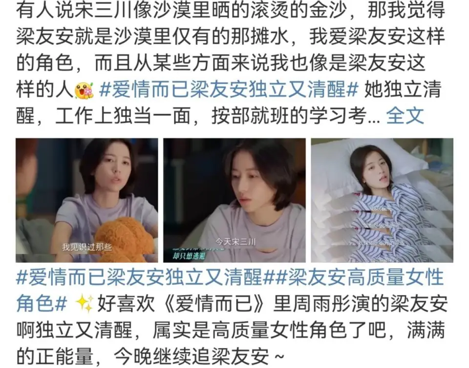 固然传统玛丽苏言情剧至今还存在,“霸道总裁爱上我”“车祸失忆”等烂梗仍然层出不穷,但不得不说观众对于剧的审美也发生了变革,取而代之的很多新奇题材剧更受到关注,比如反腐刑侦剧、实际农村剧等。 要说现在最火的男女主关系除了青梅竹马、高兴冤家这两种之外,“姐弟恋”也成为爱情剧的重要趋势,近几年更是一度迎来了姐弟恋题材的高光时候。 现现在只要男女主颜值过得去且相处细节不油腻,姐弟恋的剧根本都能爆火,比如宋茜宋威龙的《下一站是幸福》,秦岚王鹤棣的《理智派生存》等,固然也有效力过猛的像蒋雯丽明道的《转角之恋》。 由周雨彤和吴磊共同主演的《爱情而已》在央视八套正式播出,而且一跃成为新宠剧集,两位男女主角都是流量兼力派头演员,以是这部剧在开播之前就备受关注。自从首播之后也是好评不停,不但在各个平台得到了超高的点击率,及时热度冲上冠军宝座,剧中各种话题多次登上微博热搜,还一举成为当前热度最高的网剧之一,可见观众对这部剧的喜欢程度。 《爱情而已》之以是可以大概取得如许的好结果,既有男女主自己的魅力,也有剧情上的创新。 01.剧情丰富,有生存气味一部当代剧最告急的就是贴合实际,而《爱情而已》整部剧都充满了生存气味,能让很多人从中找到自己生存的缩影。 比如女主梁友安(周雨彤扮演)在转为职业司理人之前曾是公司的总裁特助,非常实际的打工人一枚,像她碰到的升职加薪老板给画大饼、忙前忙后末了不讨好、日复一日高强度工作等情况都黑白常真实的,很多观众看到女主的履历都会产生共鸣。 剧中有一幕是女主梁友安放工之后突然接到老板的电话,从最开始的不想接到厥后被生存所迫不得不接,纵然在这个过程中不停用电视的声音来麻痹自己,但终极还是得回归到实际,这个情节还原了不少职场打工人的酸楚和无奈,固然周雨彤也把职场女性的危急感和焦急演绎得非常贴切。 这部剧的爱情线也满满生存气味,男女主相识并不是什么狗血的桥段,二人就是相识于一场马拉松运动,男主在角逐现场不乐意戴可爱发箍,厥后由于女主的奉劝才委曲继承,在渐渐相处过程中产生爱情,这种细水长流的爱情并不是所谓的“工业糖精”,毕竟真实的爱情并没有传说中的大张旗鼓,一样平常都是平庸偶然才会有妨害的。 《爱情而已》还把镜头对准了职场、家庭等多个方面,并不是单纯的爱情偶像剧反而是有真正的实际意义,观看剧中主角是怎样平衡奇迹、爱情和友谊的能引发不少人的思考,完全就是真实的生存写照。 剧中男主宋三川(吴磊扮演)和父亲生存的谁人小型商业街非常引人注目,它把深圳人生存中最淳厚的一面显现出来,像热闹的街道、来往的人群、邻里的交谈等等,只能说细节感满满,就连门上的招牌和墙壁都特地做旧,劈面而来的烟火气。 不少打出高分的观众都歌颂这部剧:“都市生存气味让平凡人一下子就有了代入感”“有生存的烟火气”“一些生存细节处理惩罚得特别真实”。 02.人设丰满,姐弟恋太好嗑《爱情而已》是一部以“姐弟恋”为主线的都市感情剧,弟弟男主的人设是充满芳华活力的运动员,而姐姐女主的人设是职场社畜的职业司理人。 原来看似并不应该产生火花的两个人由于不测相识,末了选择突破世俗的眼光在一起,既满足了观众对优美爱情的想象,同时男女主爱情和奇迹之间的一些小妨害又反映了当今社会的真实。 剧中男主宋三川由于原生家庭有一些执拗,而女主有很强的奇迹心以致于到了太过强求的田地,二人都有自己心中不为人知的机密,但相爱之后就成为了相互人生中的那道光,携手办理困难,相互救赎。 男女主角的每一步办法都不是为了推进剧情,而是在人物性格的条件之前发展,非常有逻辑性和条理性的设定,以爱情为中央但更多的是主角们的发展,这种情节看起来还是比力正能量的。 03.演员演技好,真实不造作吴磊和周雨彤的演技都是毋庸置疑的,纵然二人是初次相助也默契十足,一开始本以为他俩不能有什么CP感,但很多观众看过之后都表现“越看越上头”。 正如网友发自心田的批评:“悦目! 都市生存,职场,中年夫君与都市独立女性的落差,体育竞技的暴虐。 三观惬意,剧情流畅,演技妆造也在线。吴磊和周雨彤的选角真的很神!” 吴磊作为95后小生的代表同时也算是圈内的“老戏骨”,年事轻轻就顺遂完成个人转型不说,演技也已经到了出神入化的田地,根本上每一部作品他都能成为全剧演技最好的。 这次扮演的弟弟宋三川对他来说根本没有寻衅,而吴磊依附着超强的明白本领和专业力气对脚色举行了更形象化的明白,演出非常有张力让人不得不歌颂。 值得一提的是,吴磊在剧中的身材极有看头,由于是运动员的设定以是胸肌和腹肌都非常饱满,听说他为了上镜能更真实和悦目提前很久就锻炼,以是才创造了现在这种“穿衣显瘦,脱衣有肉”的视觉盛宴。 周雨彤曾多次扮演职场女性这一人物设定,之前在短剧《我在他乡挺好的》中扮演女主角乔夕辰把成年人的不容易出现得极尽描摹,尤其是包罗多条理的哭戏、直系家庭的无奈等感情的处理惩罚非常到位,因此她也一战封神得到了业内的认可。 这次同样是发挥稳固带给观众很大的惊喜,是“姐姐”但不油腻也不愚笨,台词功底也非常棒,精准捉住了脚色的特性。 让人惊喜的是,剧中扮演